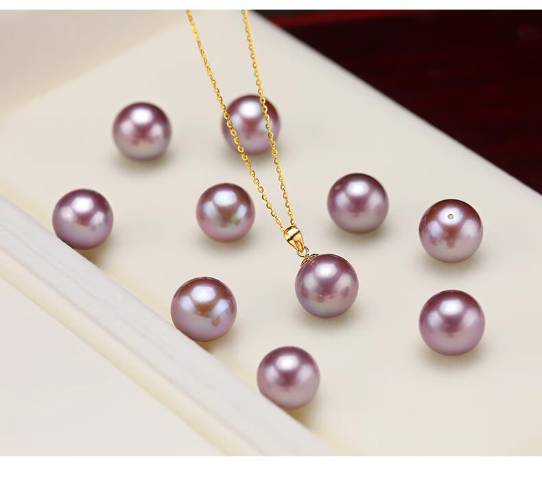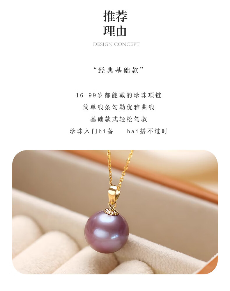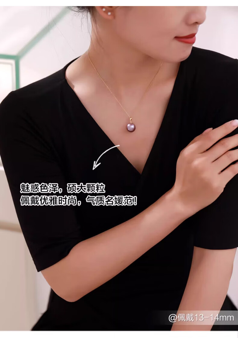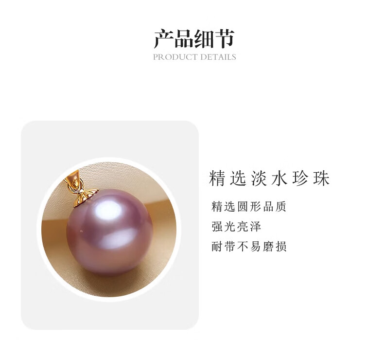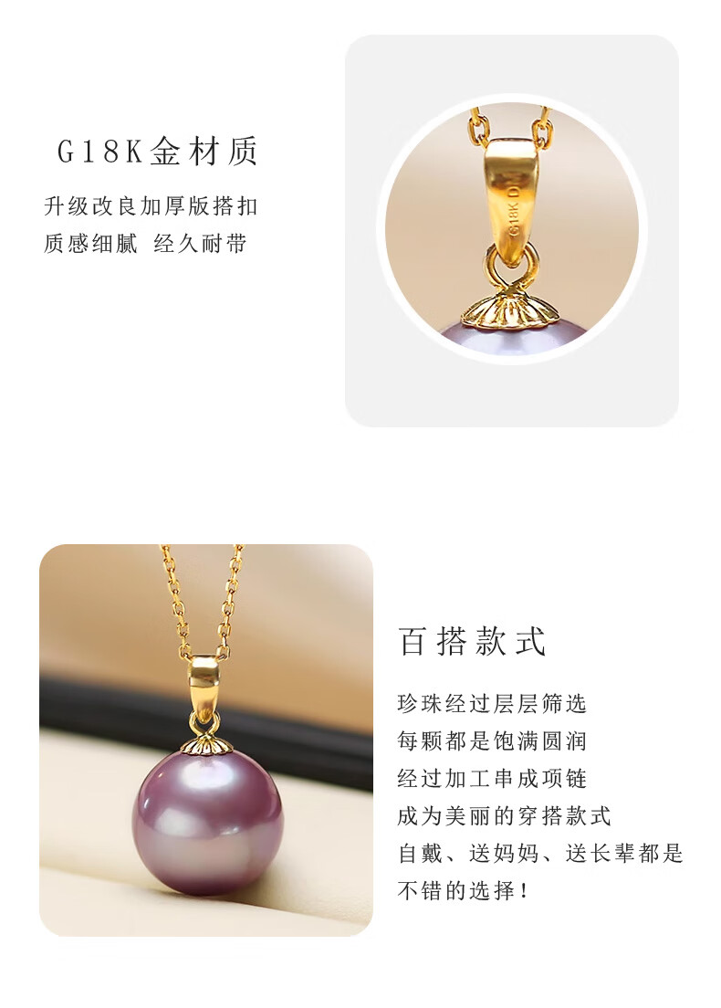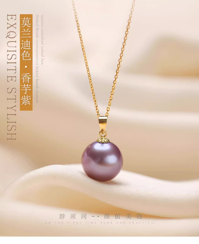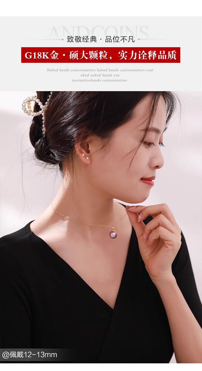 Zhenyue Jewelry Morandi Purple 12-13mm Freshwater Pearl Necklace 18K Gold Pendant Perfect Round Bright Light for Mom 18K Gold Holder 10-11mm