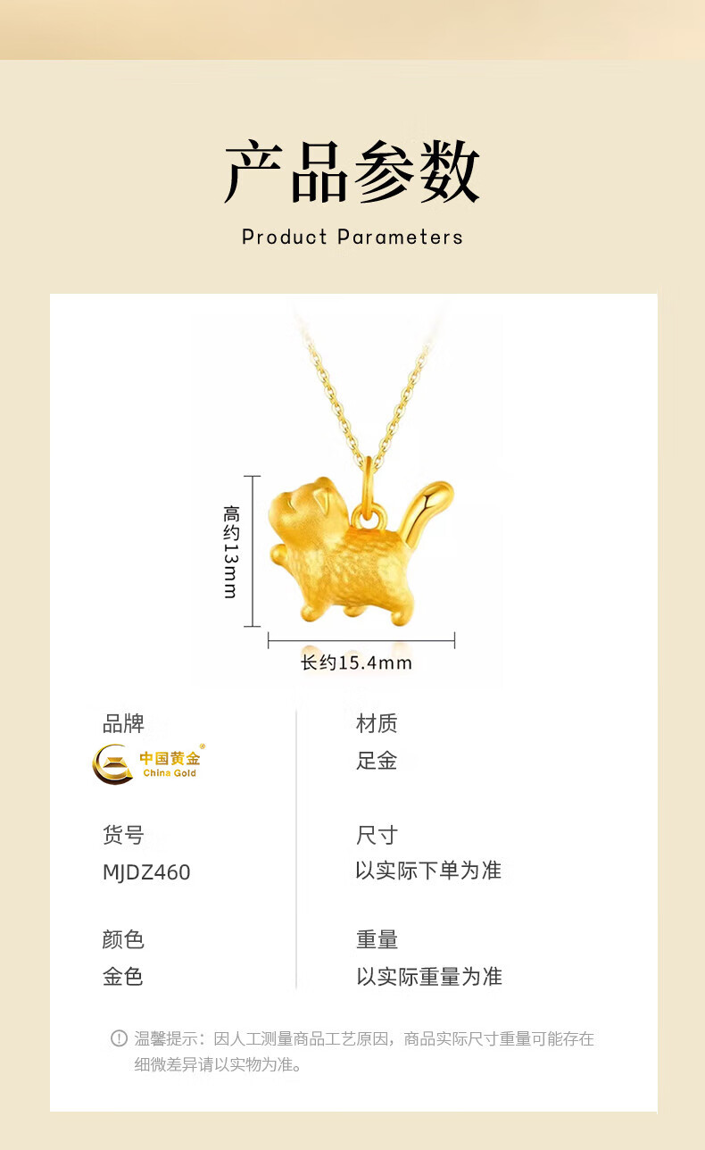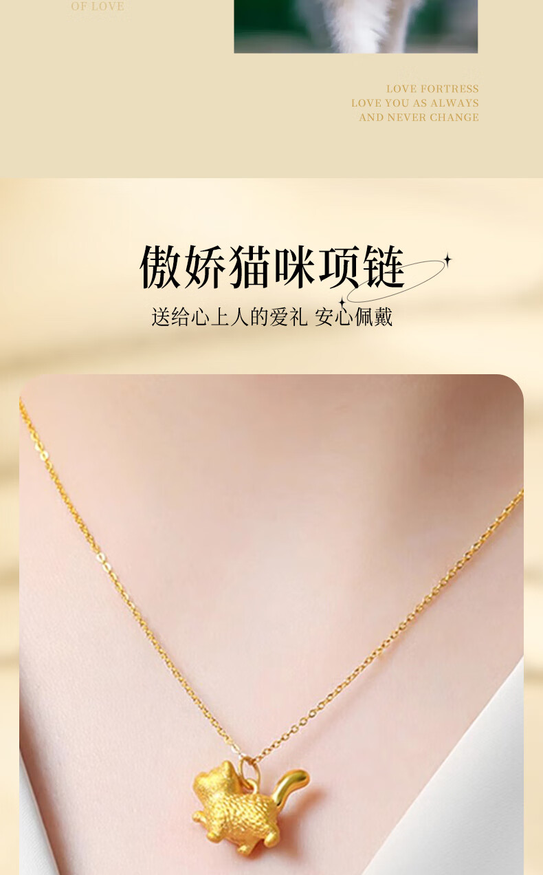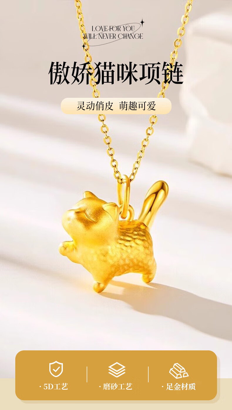 CHINA GOLD Kitten Gold Necklace Women's Pure Gold Pendant Girl's Birthday Gift for Girlfriend and Wife Pendant + Pure Gold Chain Total Weight 2.1g Pendant Gold Weight Approximately 0.5g