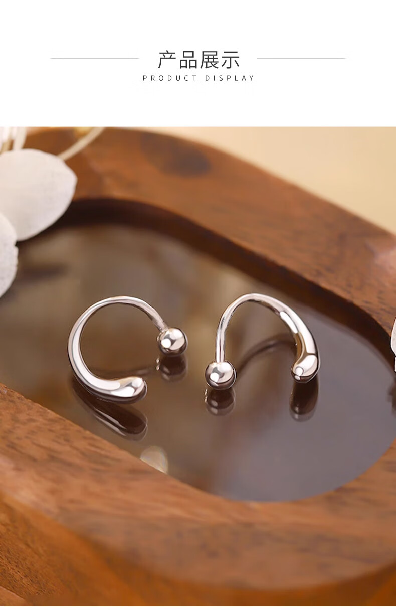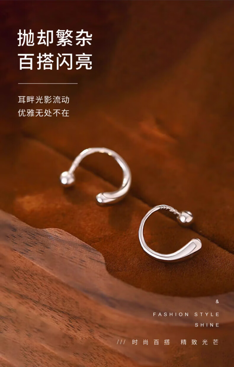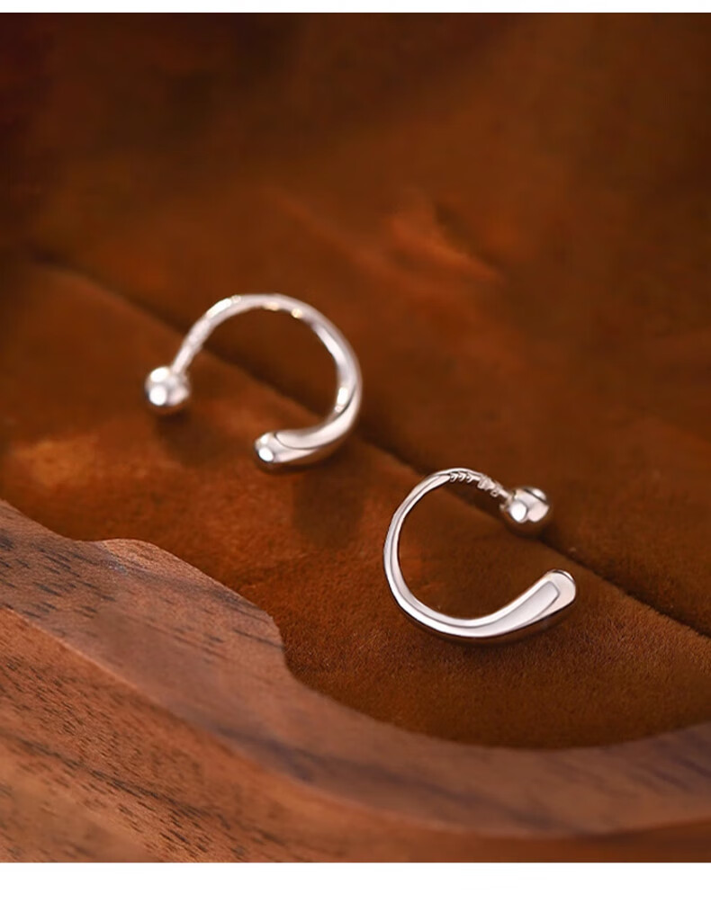 Chinese Gold Geometric Earrings Pure Silver Earrings for Men and Women New Ear Bone High Valentine's Day Birthday Gift Year of the Horse Zodiac Year Gift Geometric Semi-circle Earrings - Pure Silver Brand Gift Box
