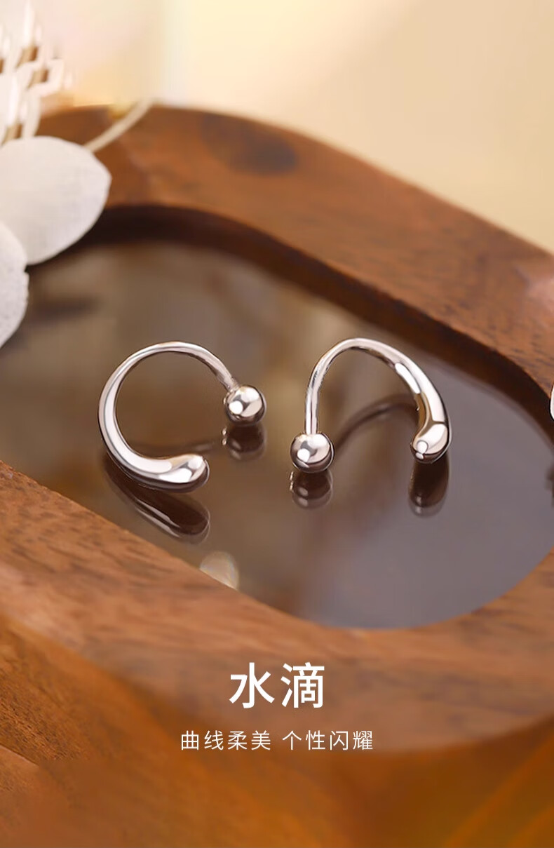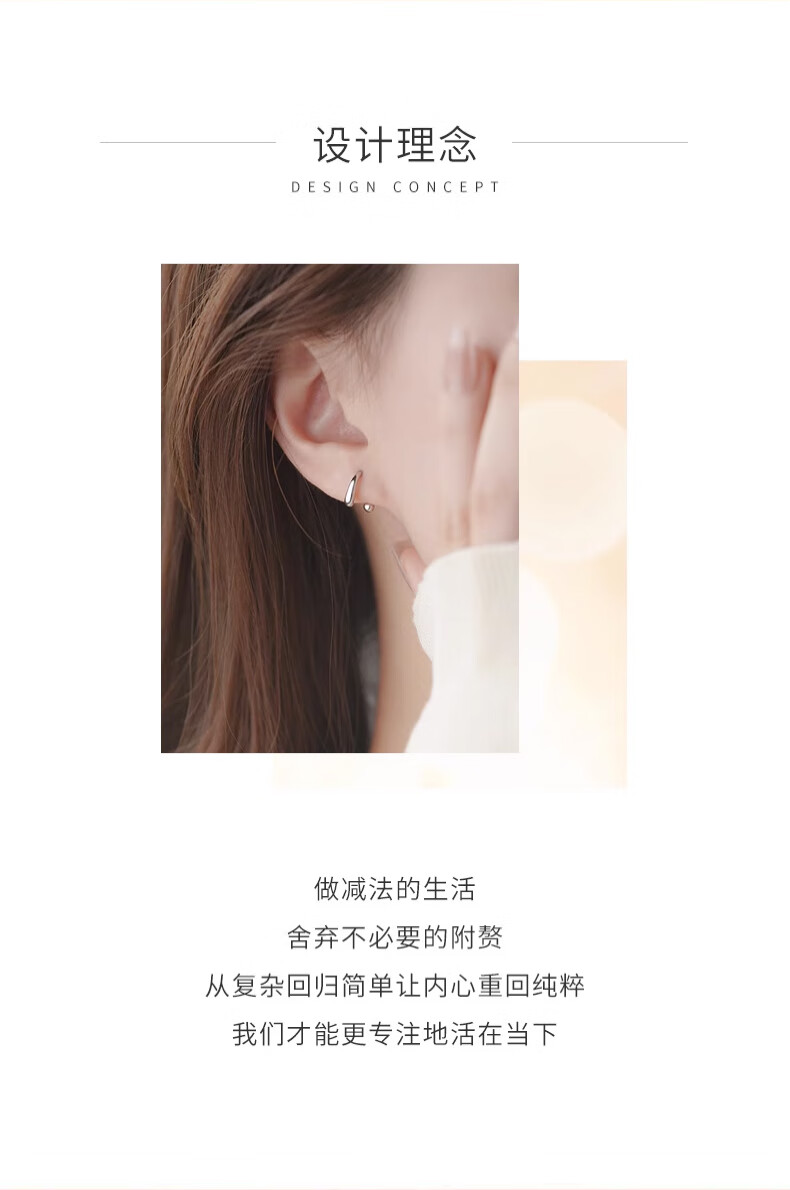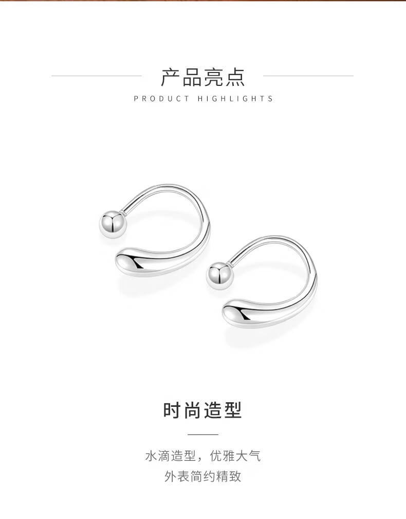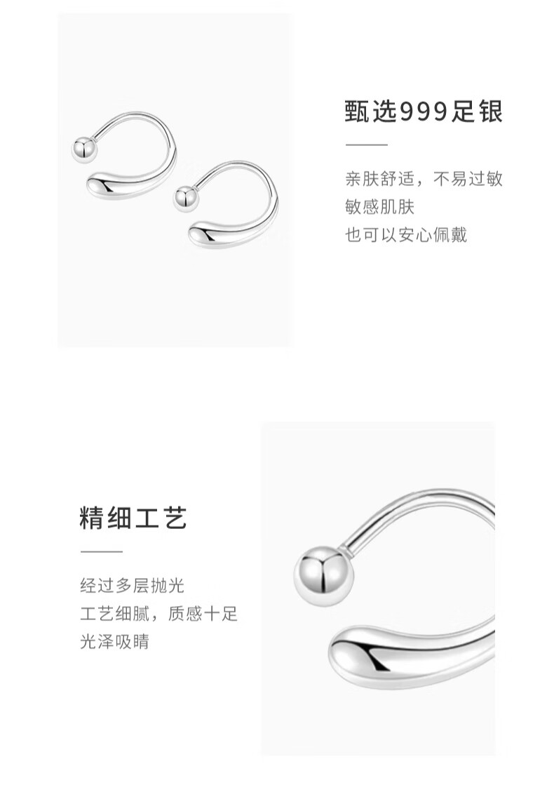 Chinese Gold Geometric Earrings Pure Silver Earrings for Men and Women New Ear Bone High Valentine's Day Birthday Gift Year of the Horse Zodiac Year Gift Geometric Semi-circle Earrings - Pure Silver Brand Gift Box