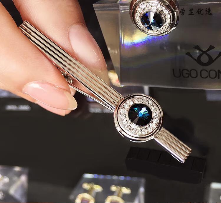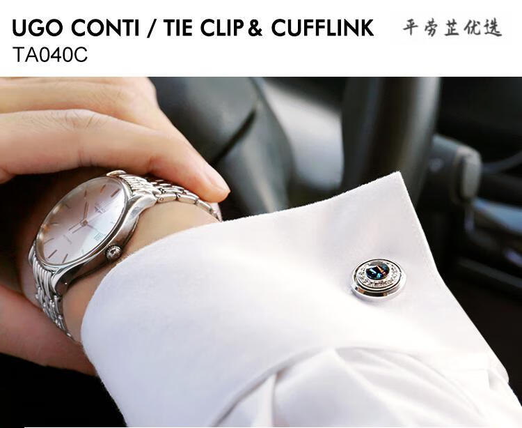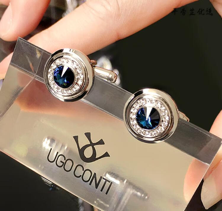 UGO CONTI Italian fashion crystal cufflinks men's French light luxury customized suit shirt cuff buttons simple silver cufflinks (ready in stock gift box)