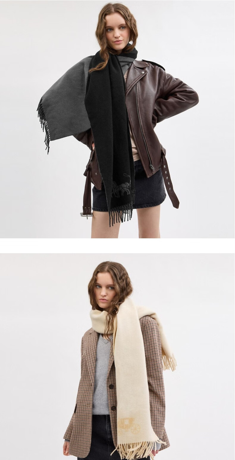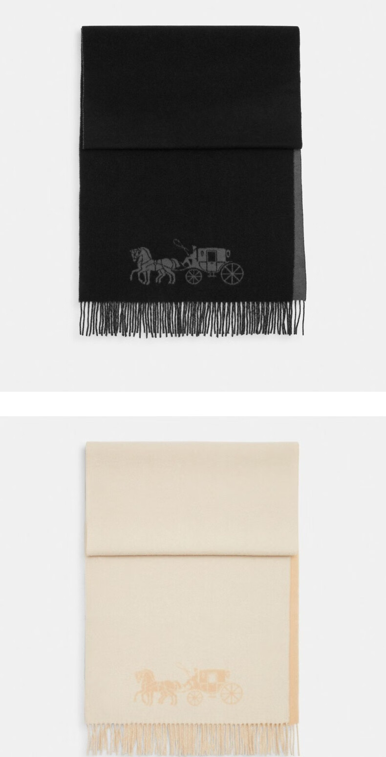 COACH Valentine's Day Outlet Men's and Women's Carriage Pattern Reversible Large Size Long Scarf Gift Black