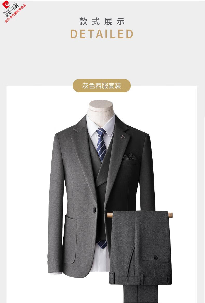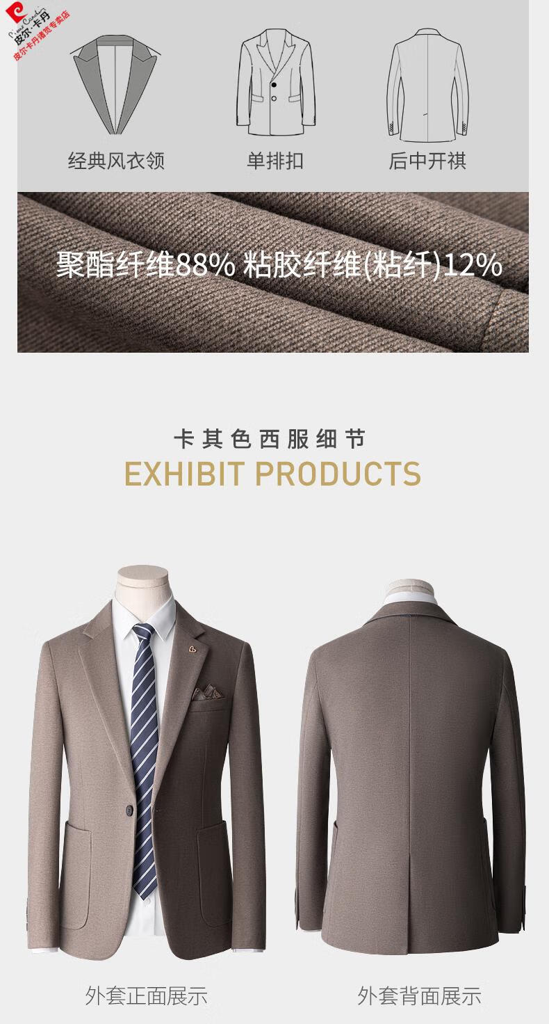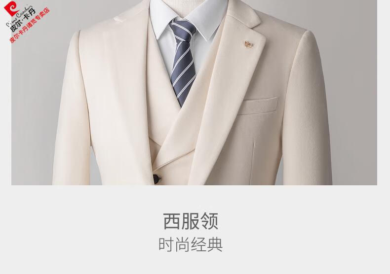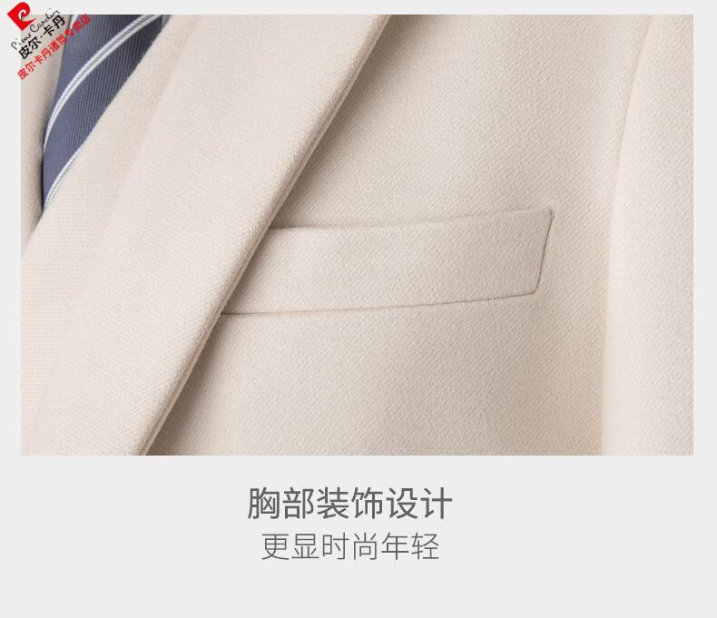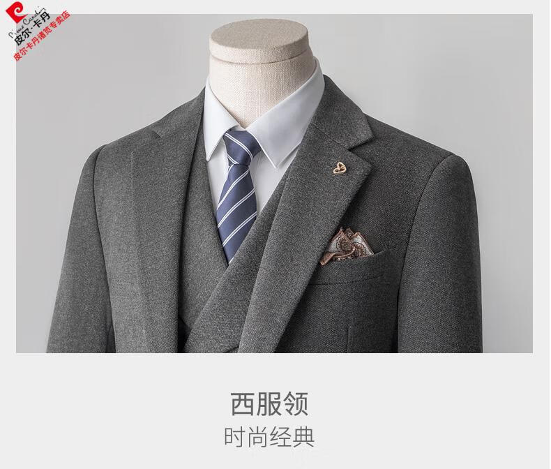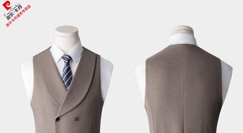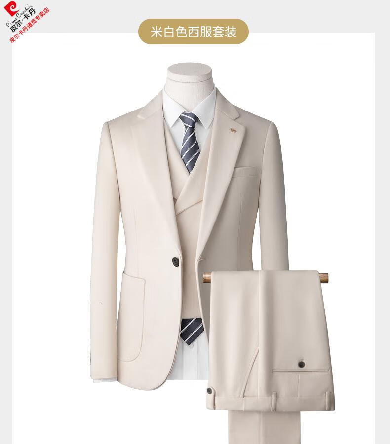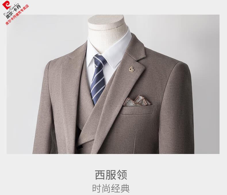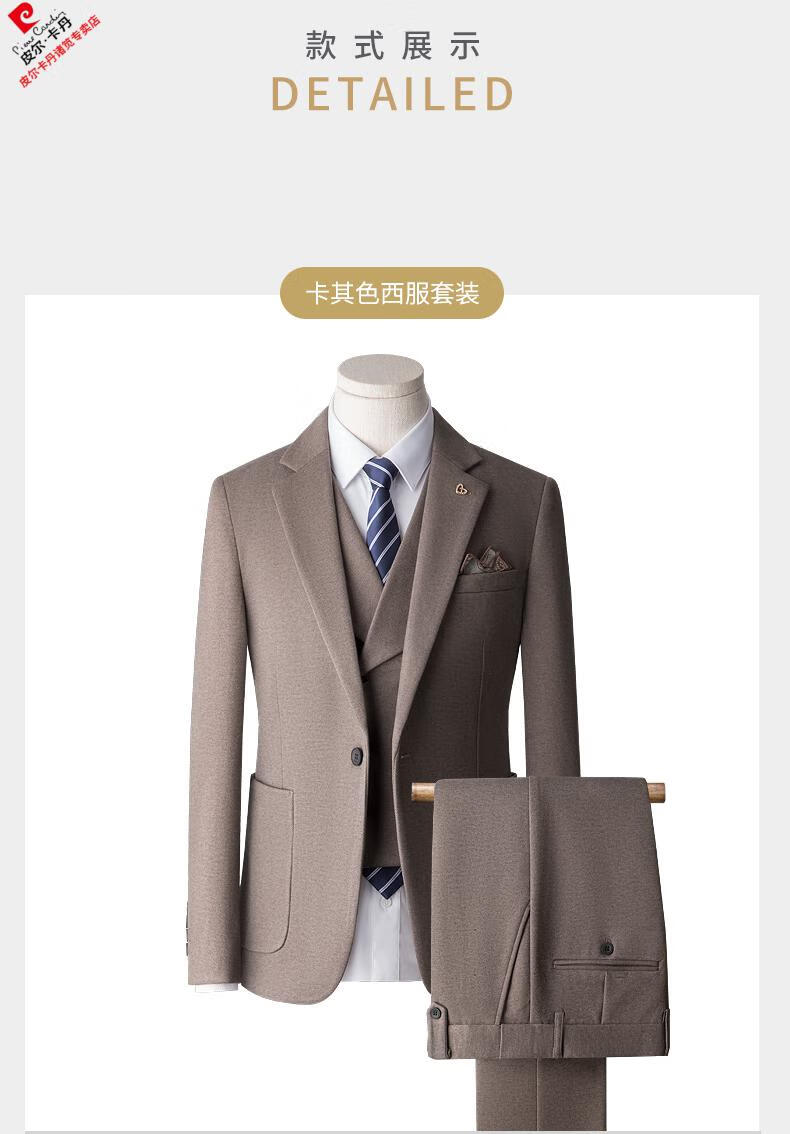 Pierre Cardin high-end suit suit men's business casual formal dress groom wedding dress thickened slim small suit jacket knitted khaki (suit + trousers) shirt tie 3XL