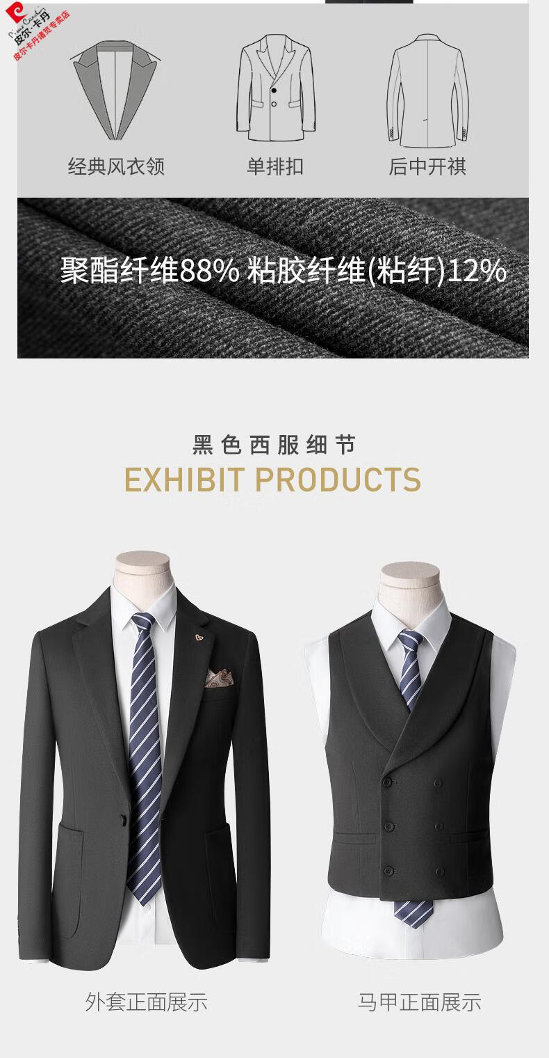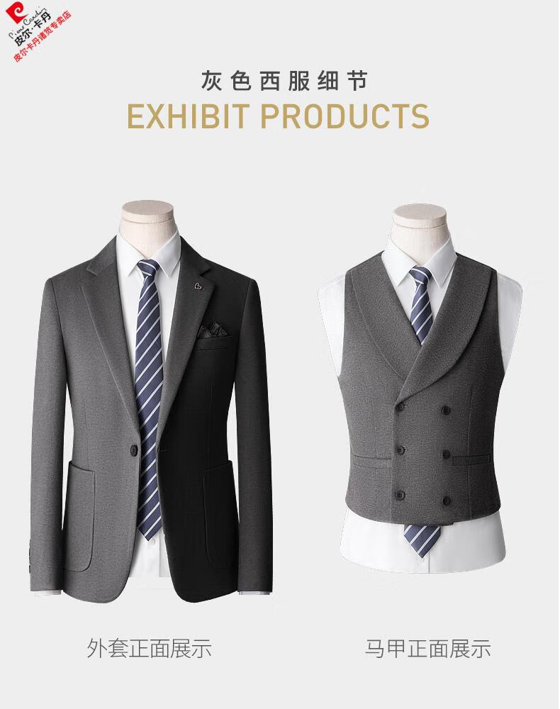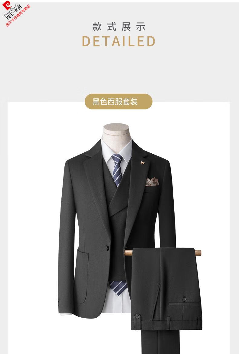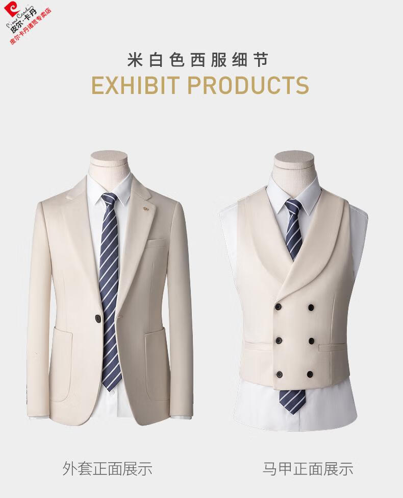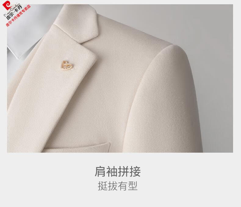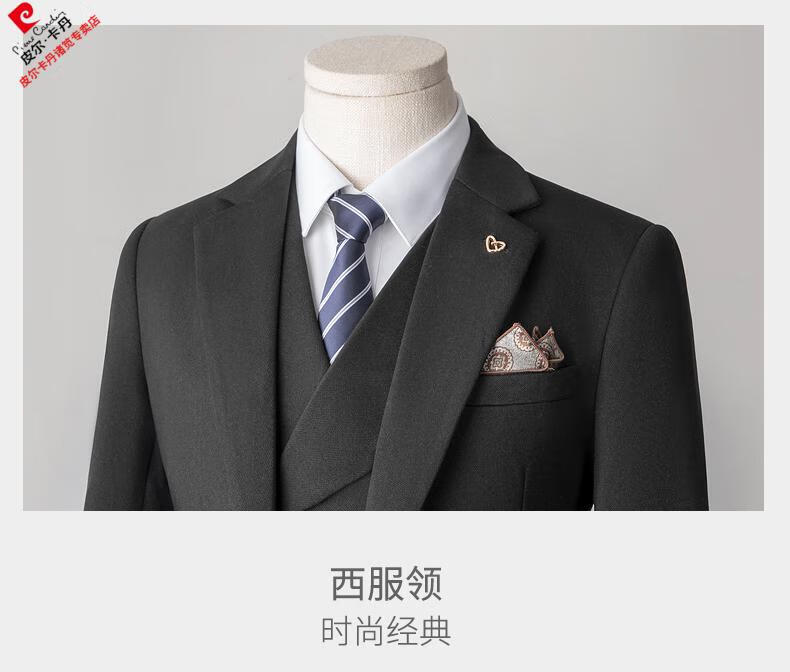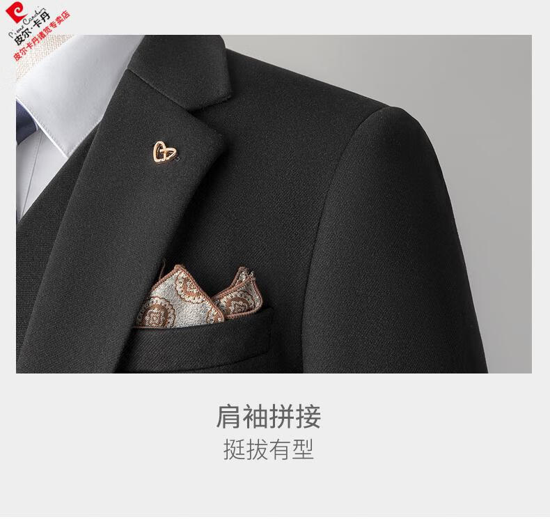 Pierre Cardin high-end suit suit men's business casual formal dress groom wedding dress thickened slim small suit jacket knitted khaki (suit + trousers) shirt tie 3XL