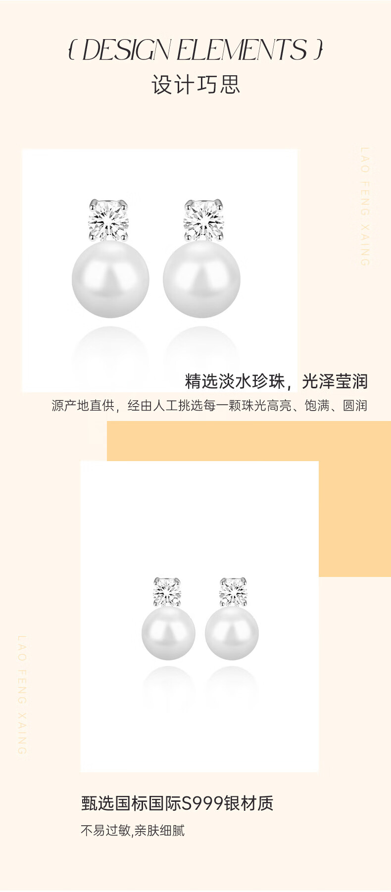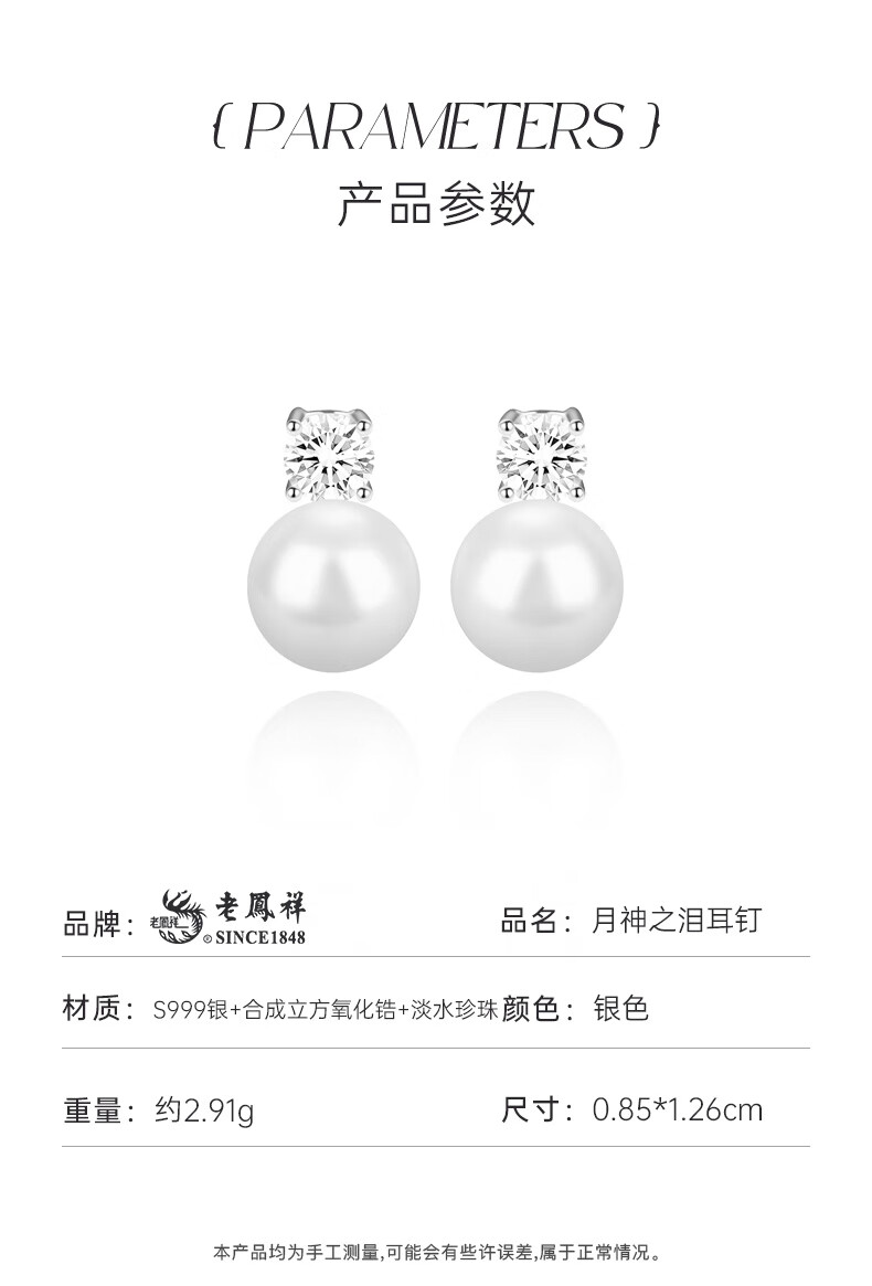 Lao Fengxiang's sterling silver earrings for women Freshwater Pearl Tears of the Moon Earrings Wedding Anniversary Birthday Gift for Girlfriend Tears of the Moon Earrings*Brand Original Gift Box