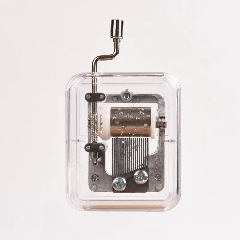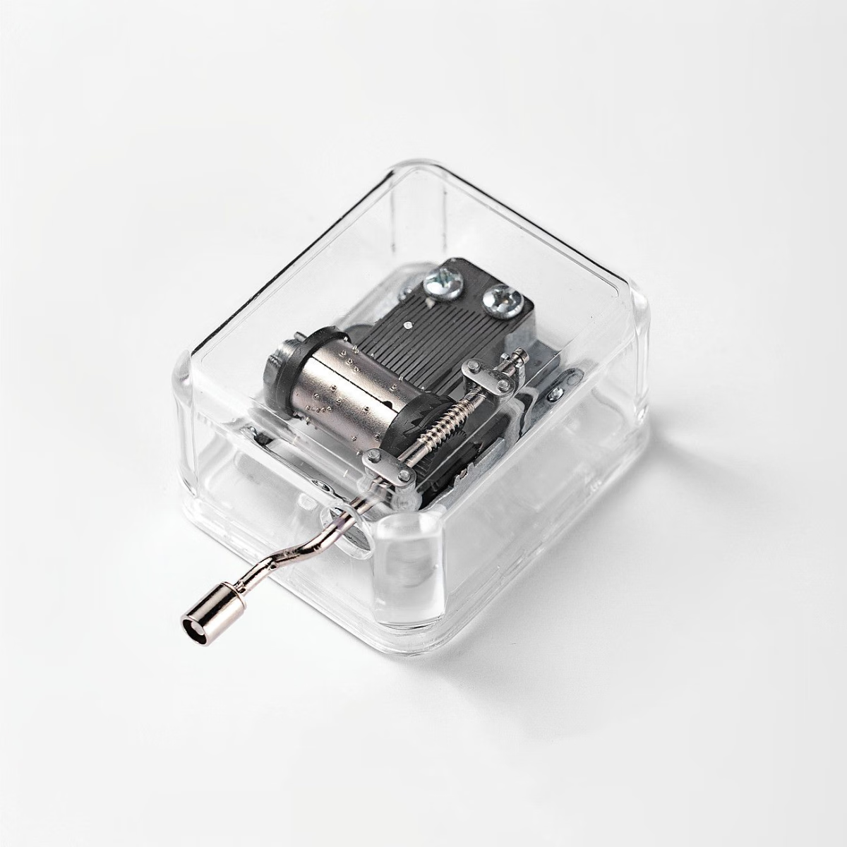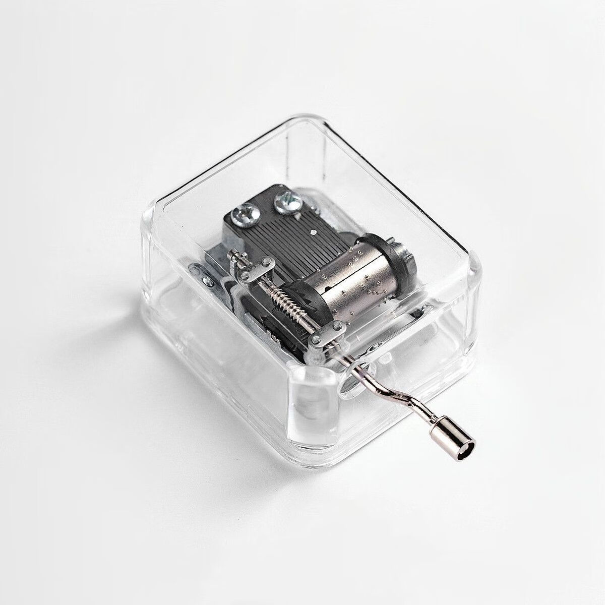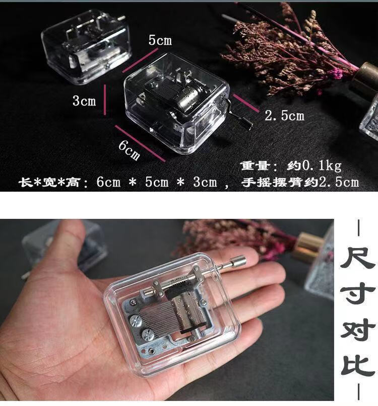 Transparent hand-cranked mini music box, Sky City Music Box, creative birthday gift for boys and girls, musical instrument toy, hand-cranked - silver - happy birthday