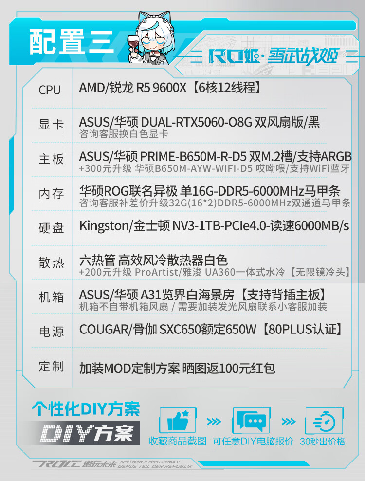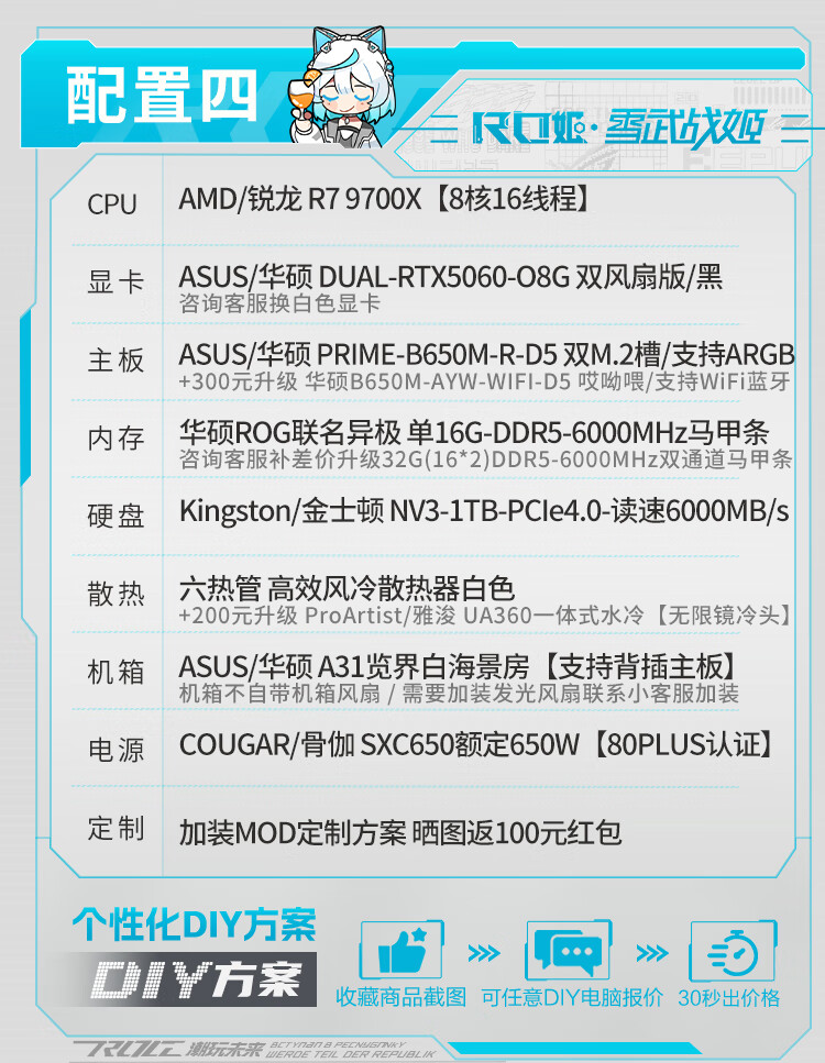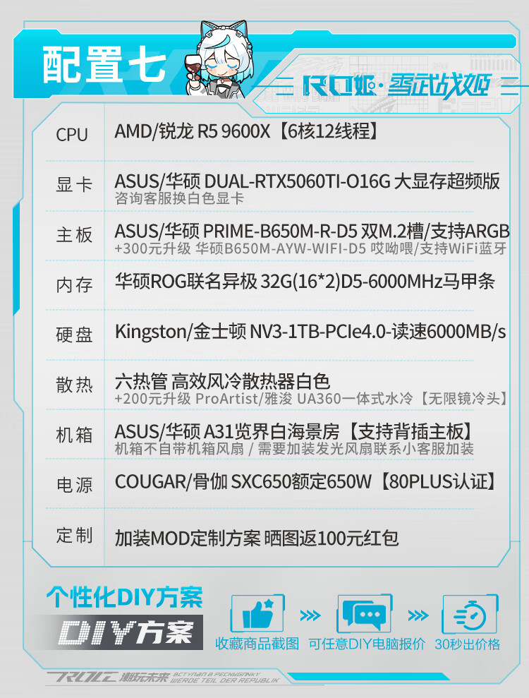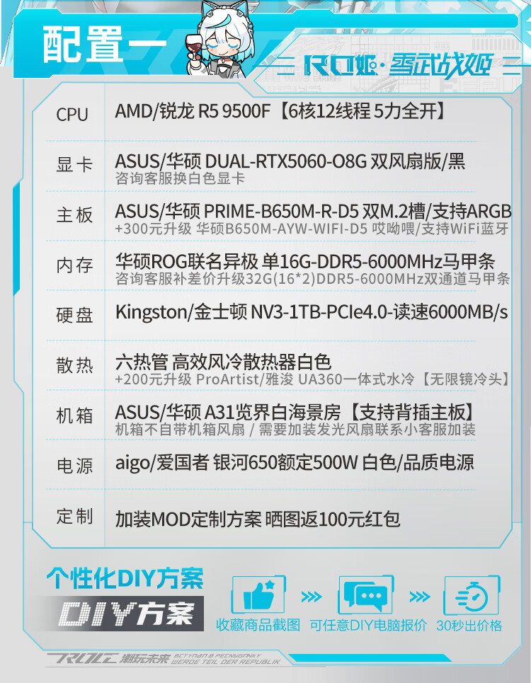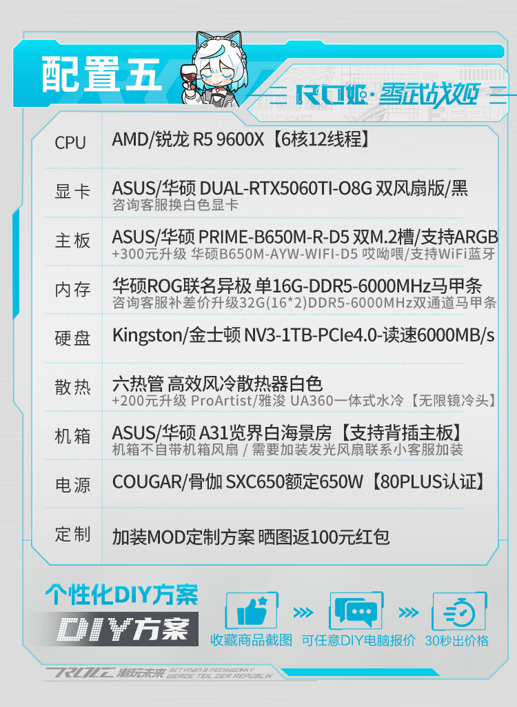 ASUS (ASUS) ASUS rog family bucket AMD Ryzen R5 9600X/RTX5060TI-16G game console 9700X+RTX5060 ASUS complete DIY assembly computer 9500F+RTX5060丨Configuration 1