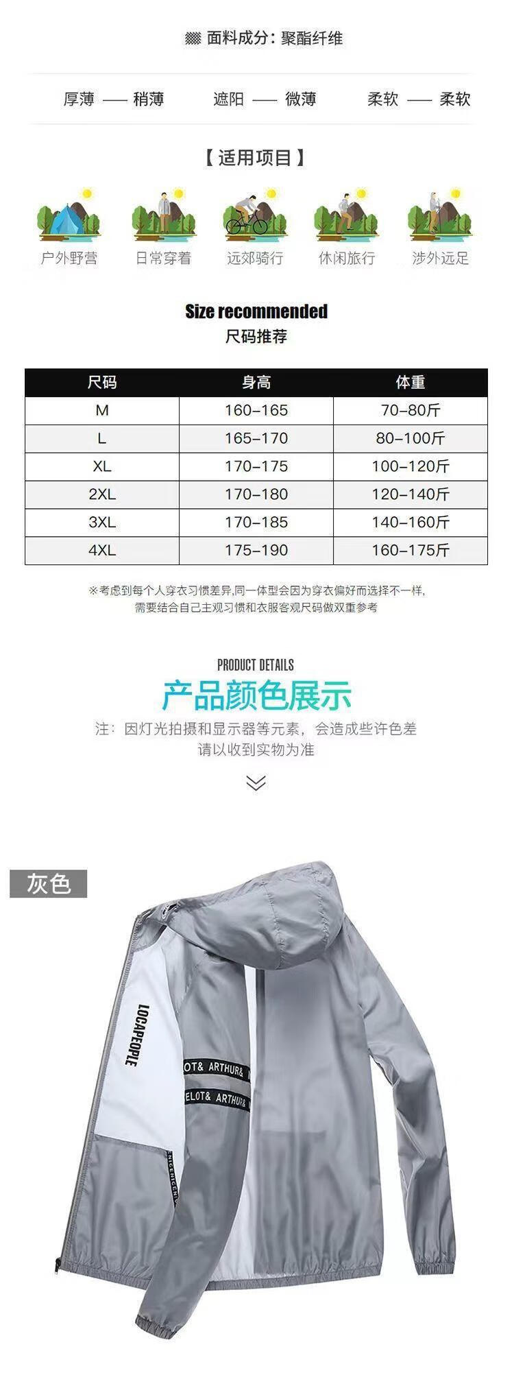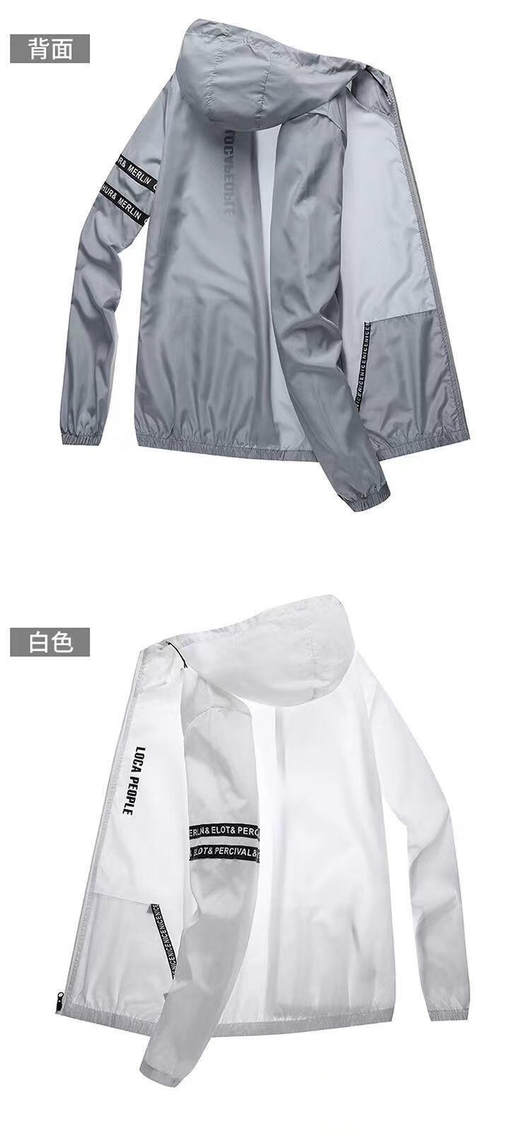 Summer Ice Silk Sun Protection Clothes New Trendy Men's Thin Hooded Windbreaker Loose Sports Jacket Fishing Suit Breathable and Thin Keniu-ribbon Gray 2XL