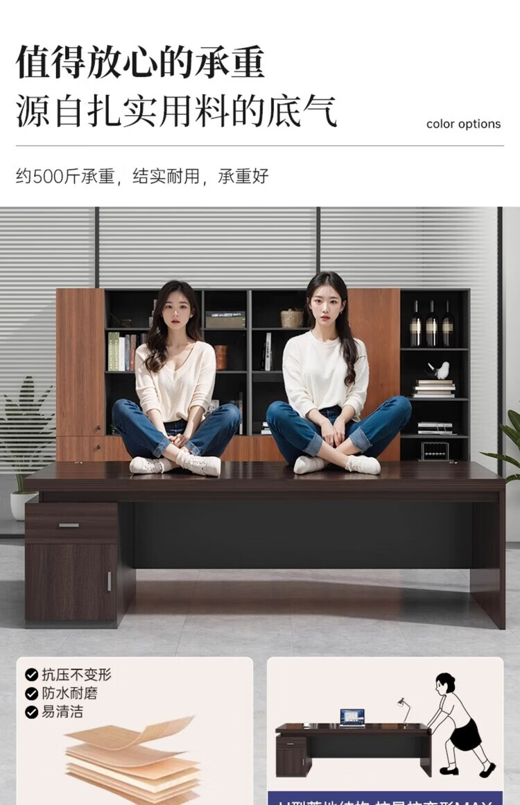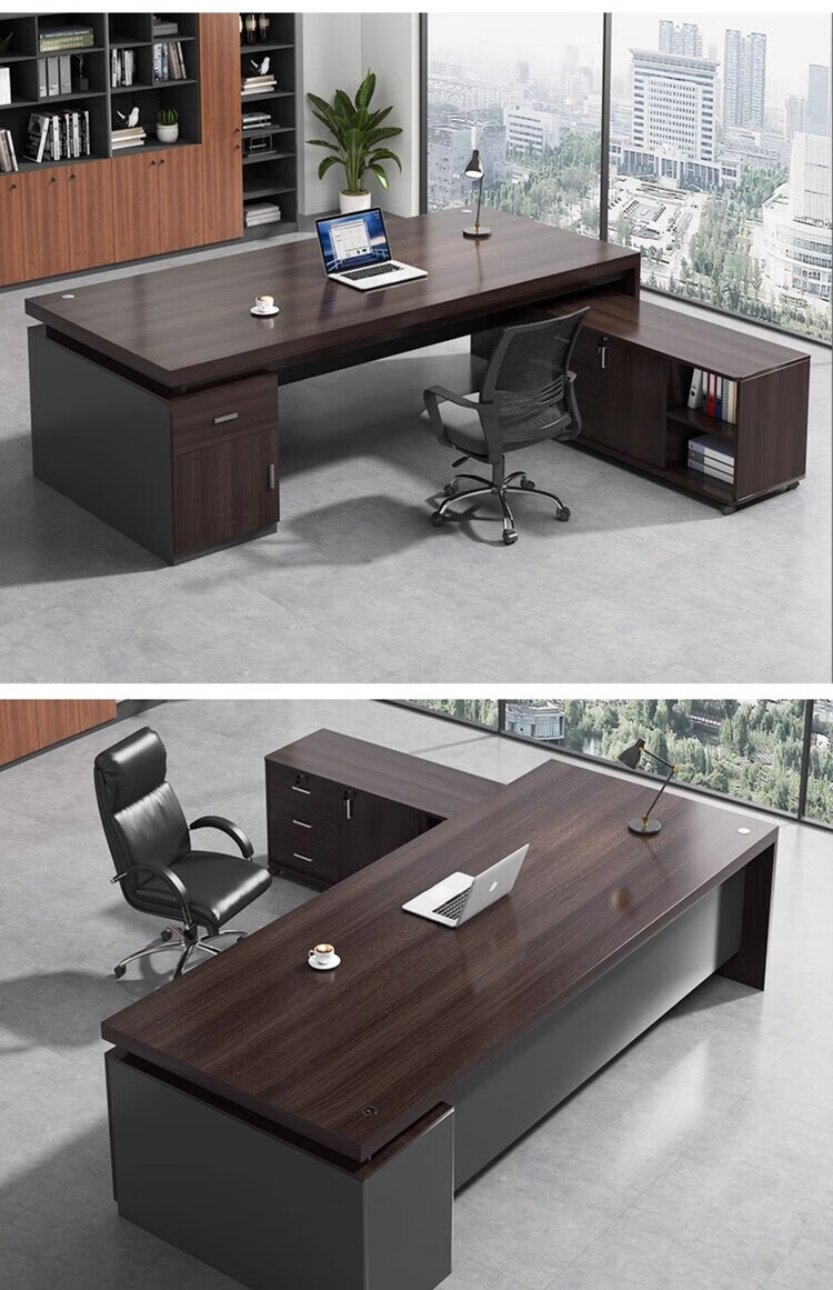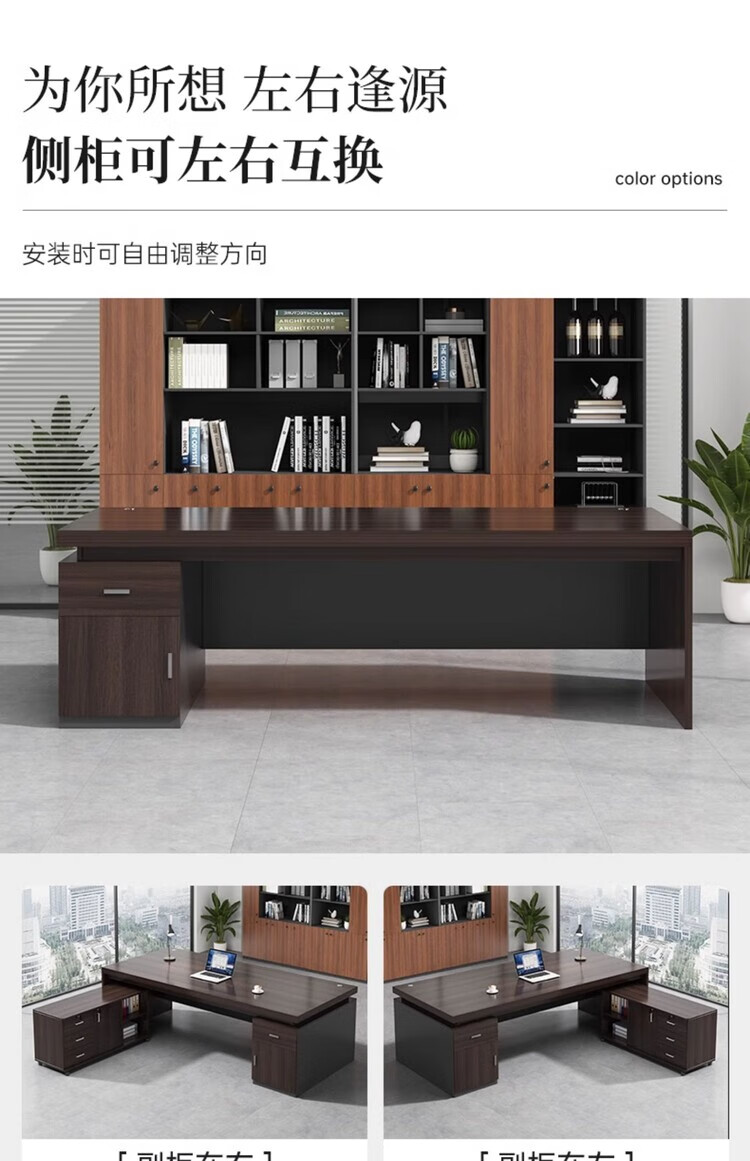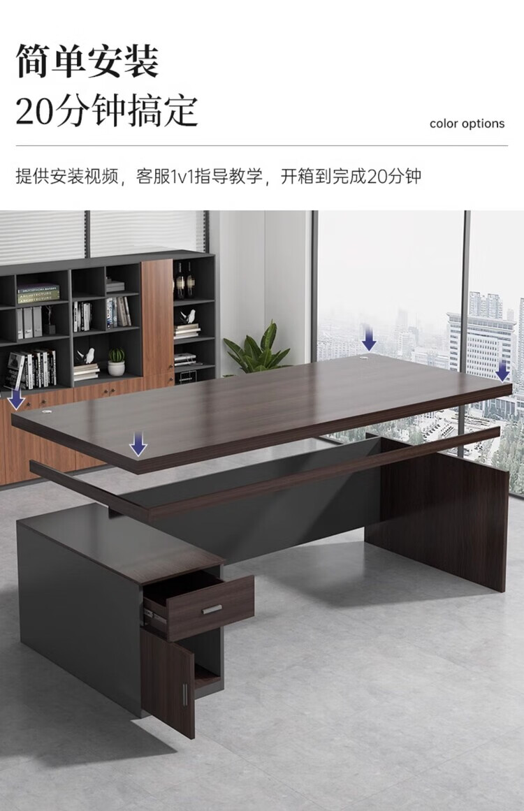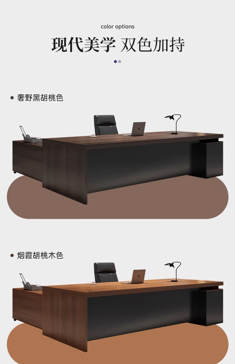 Muga desk boss table single desktop computer desk and chair combination staff desk light luxury home table 32MM desktop 160*80 luxury black walnut color assembly (free installation tools)