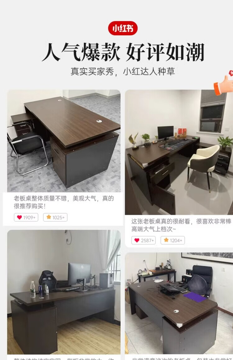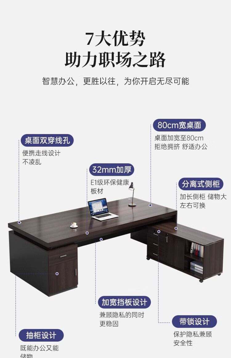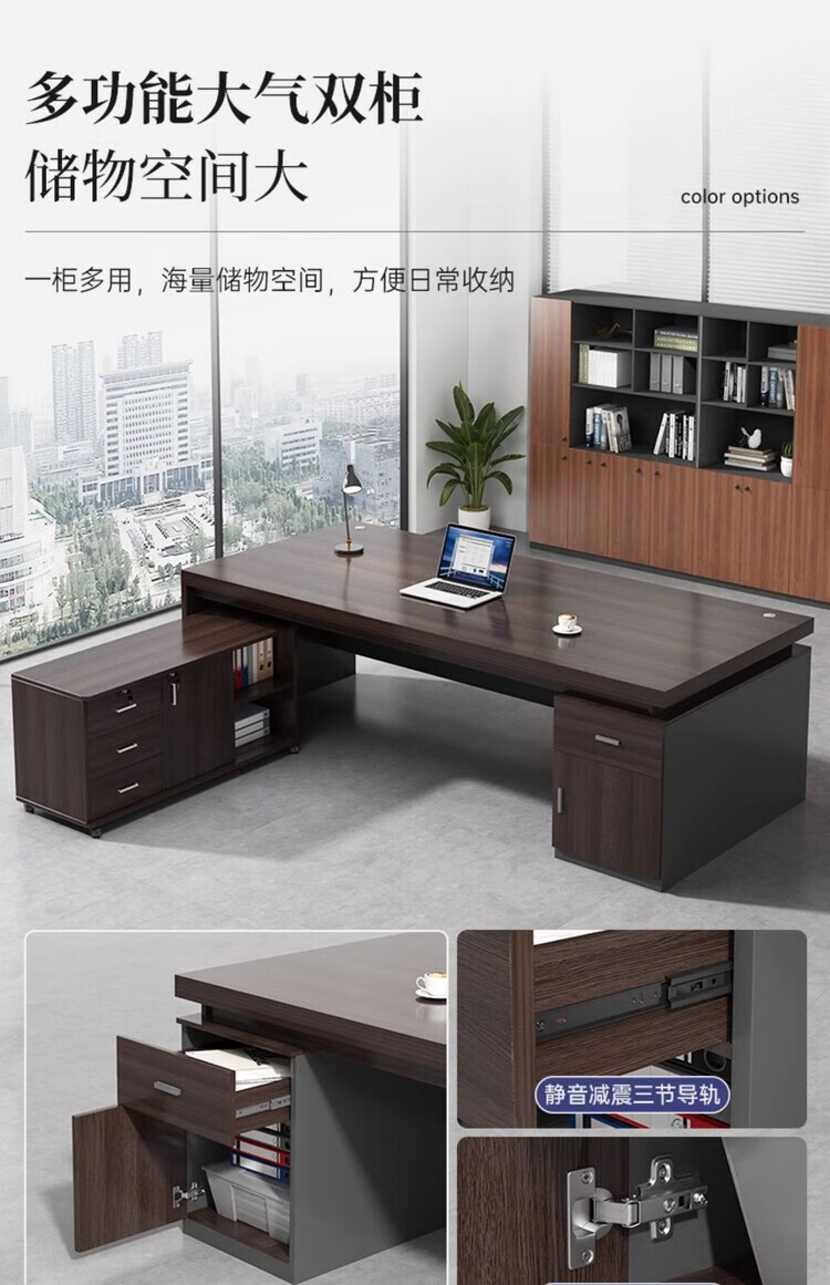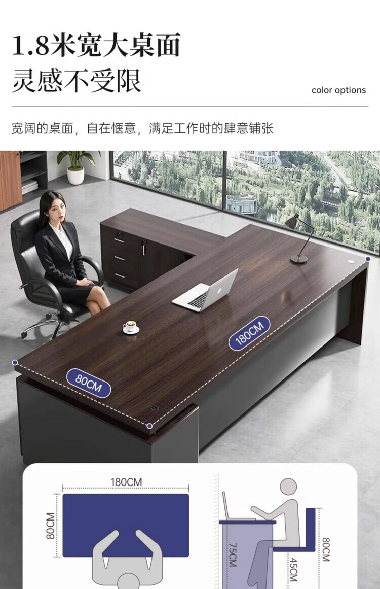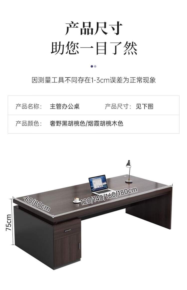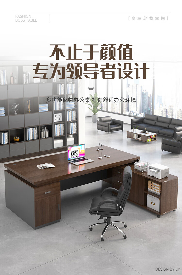 Muga desk boss table single desktop computer desk and chair combination staff desk light luxury home table 32MM desktop 160*80 luxury black walnut color assembly (free installation tools)