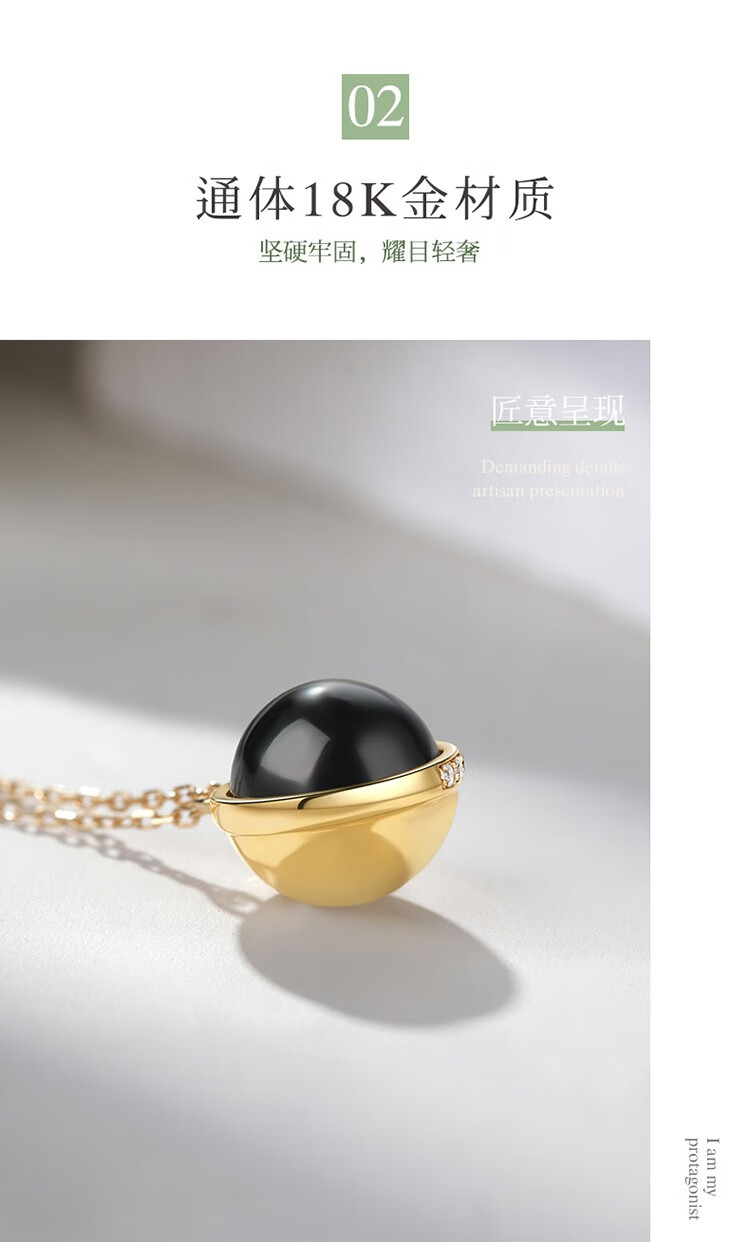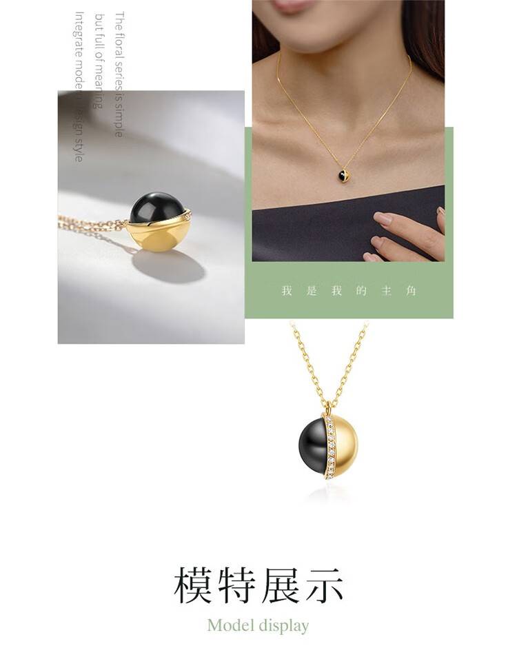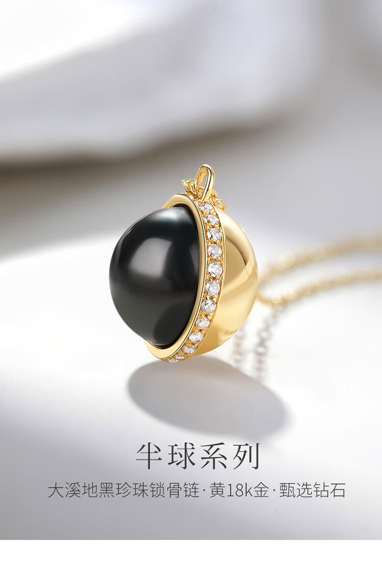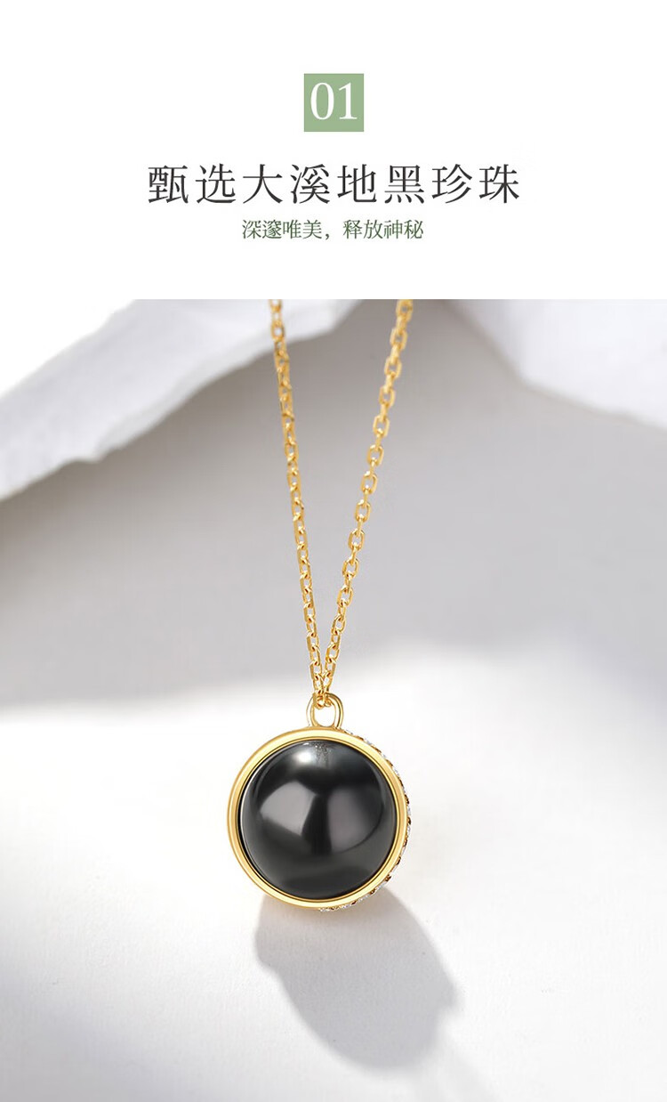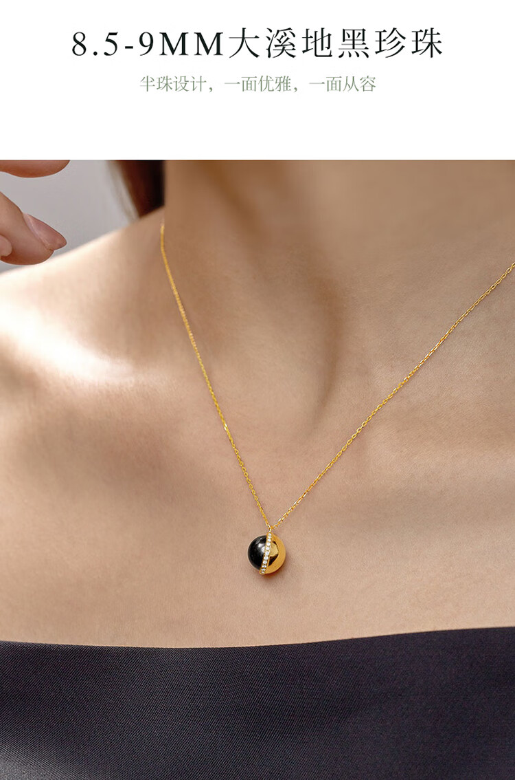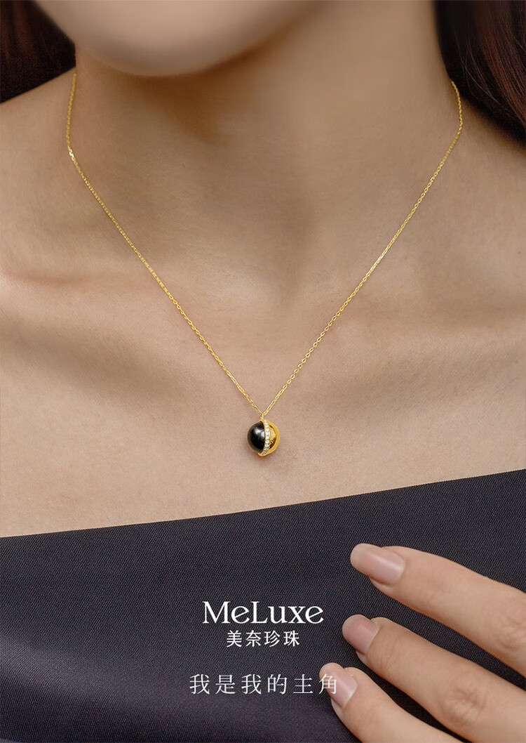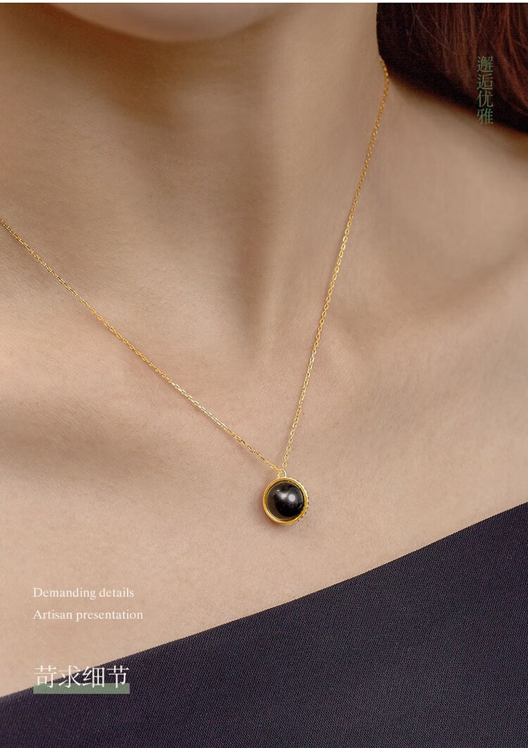 Meluxe 18K gold seawater pearl necklace pendant Tahitian black pearl clavicle chain birthday gift for wife 8.5-9mm (with 18K gold chain)