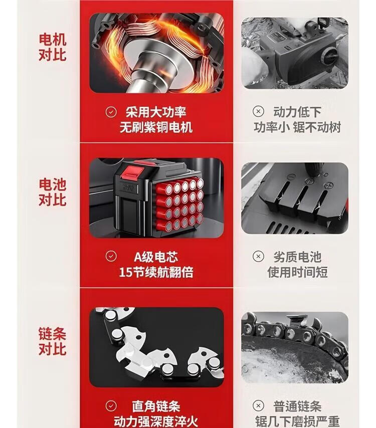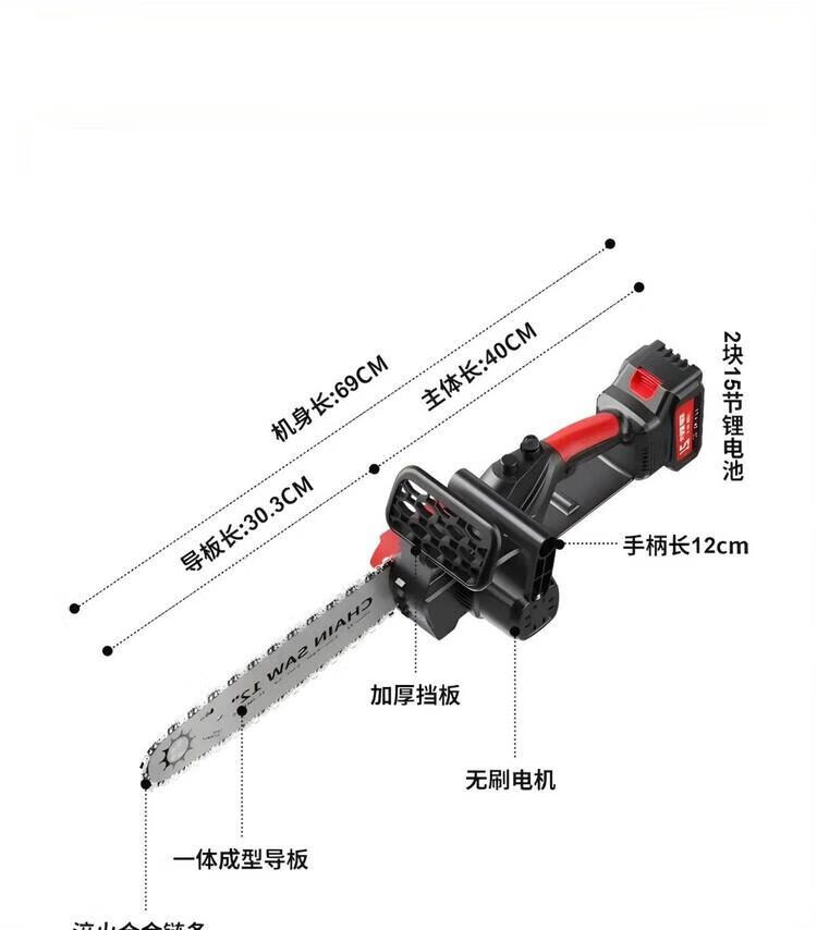 Dongcheng imported electric chainsaw brushless lithium electric chainsaw rechargeable electric chainsaw handheld electric chain saw rechargeable tree pruning electric saw 16-inch brushless 20 cells 2 batteries 3 chains