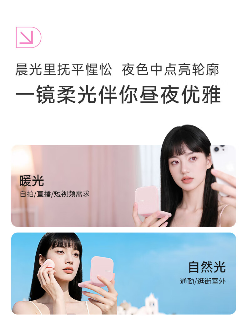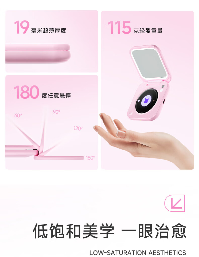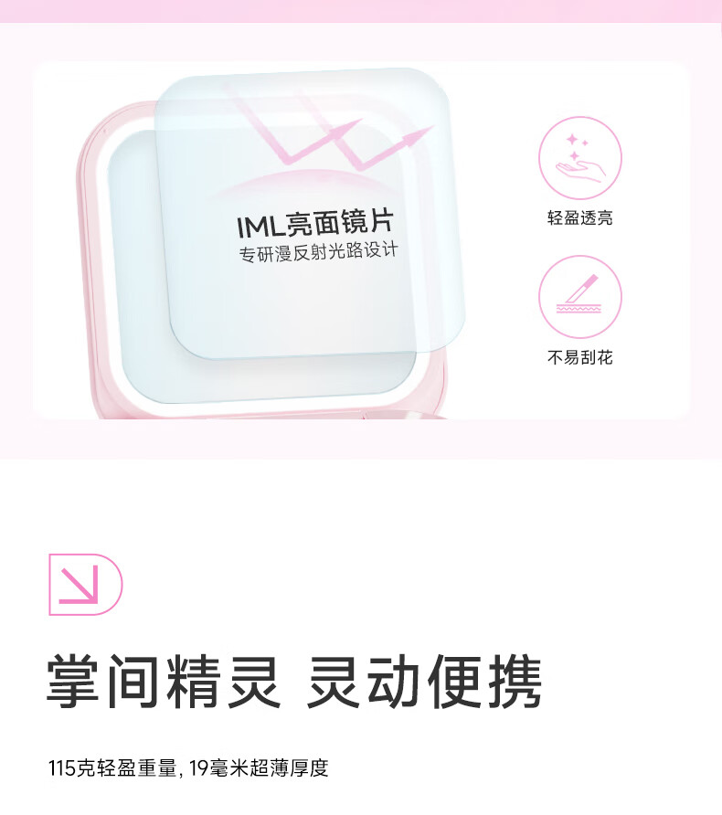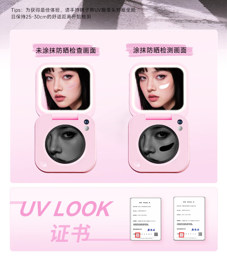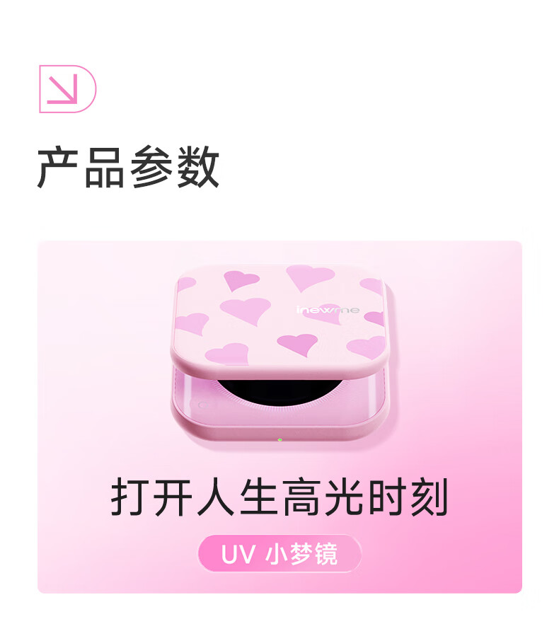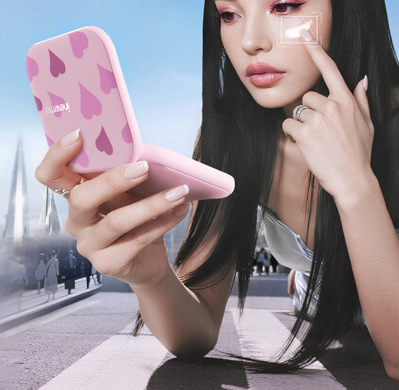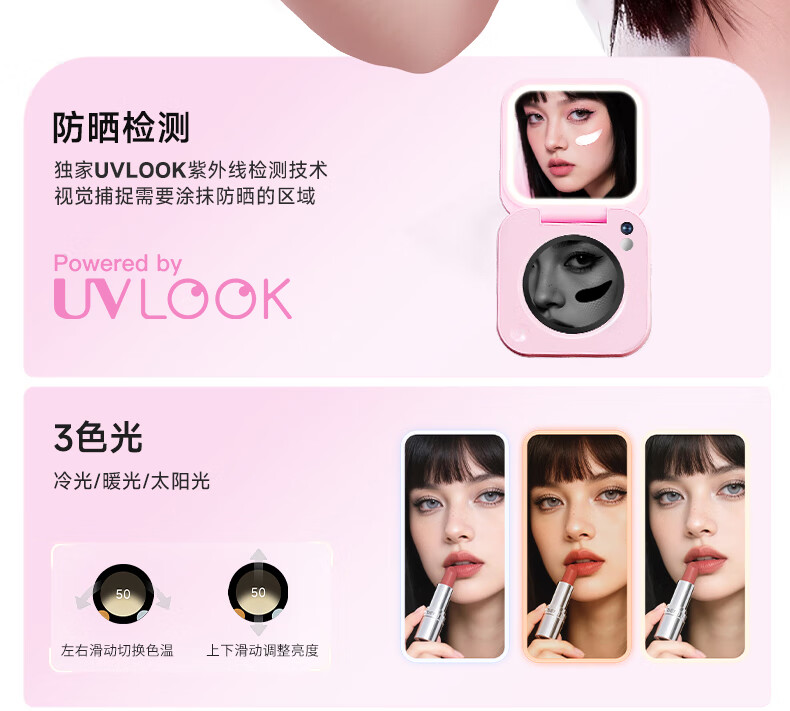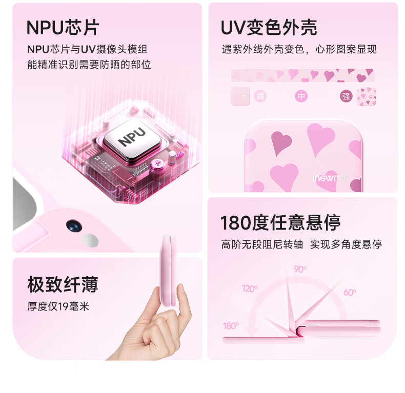 Ai Ningmei inewme small dream mirror smart UV sun protection detection led makeup mirror with light portable beauty mirror birthday gift girls give girlfriends New Year's Eve gift festival practical cherry powder