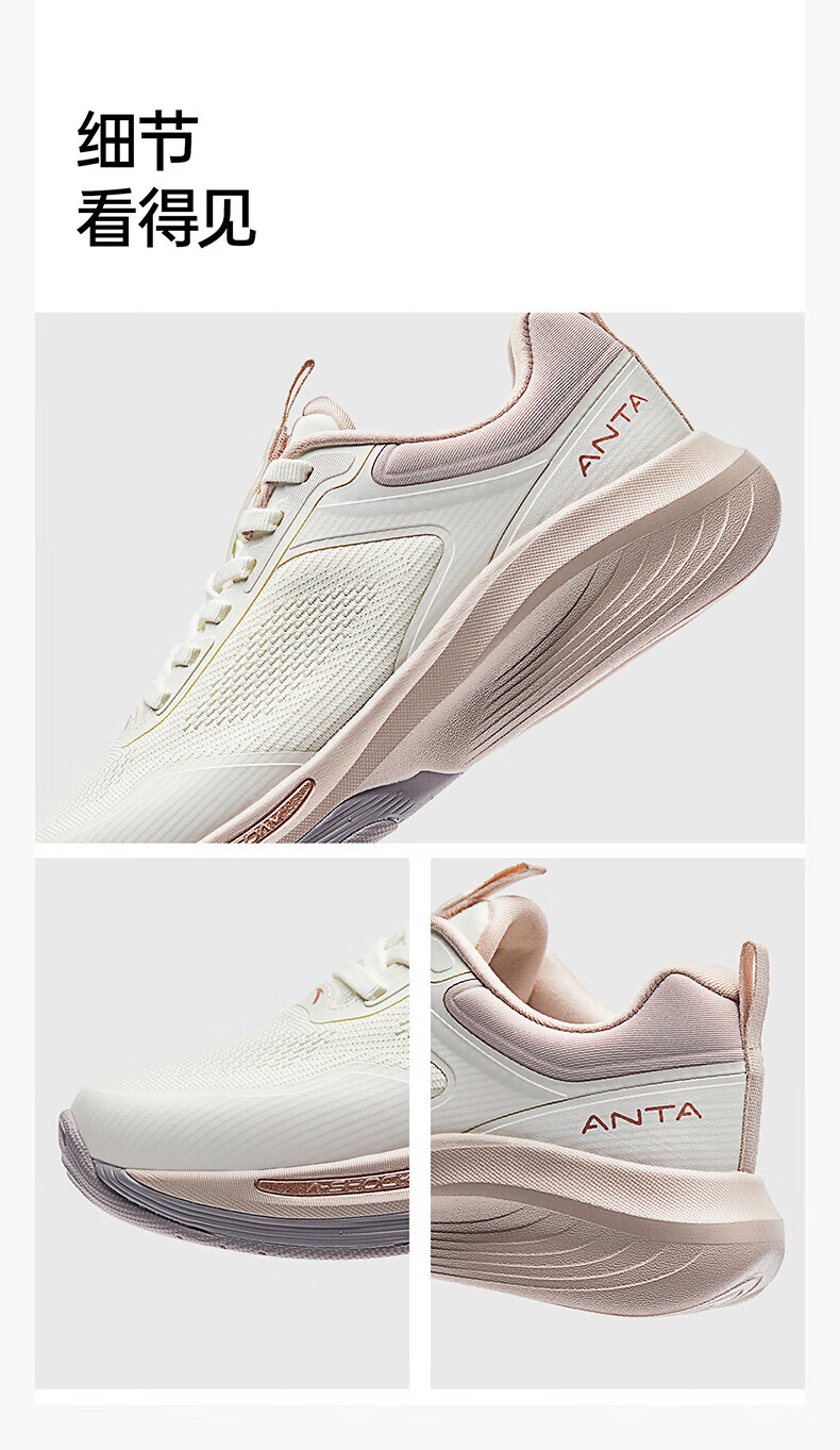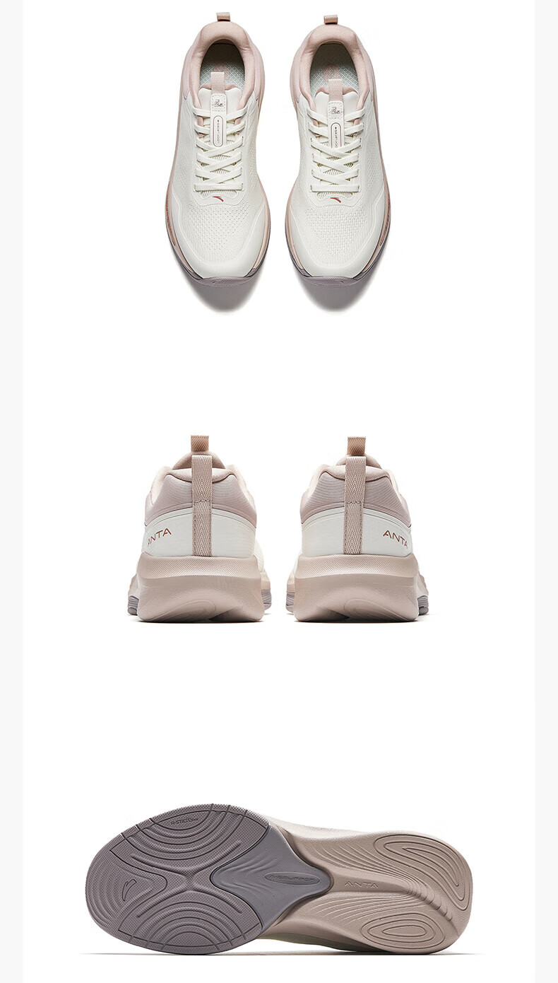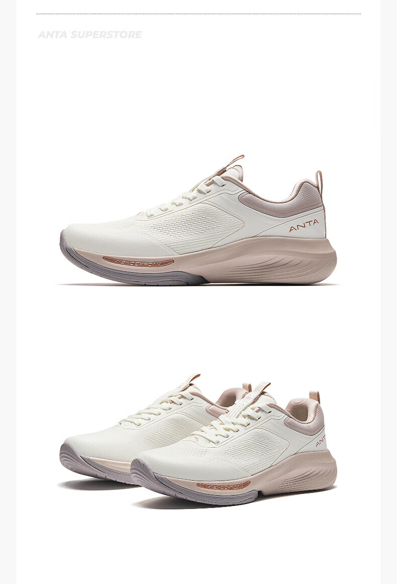 Super Anta Spiritual Arc丨Sports Shoes for Women Anta Spring Breathable Cushioning Lightweight Training Running Shoes for Women 122517791U Leather Version Ivory White/Lotus Root Gray-2 36/(Female Size 5.5)