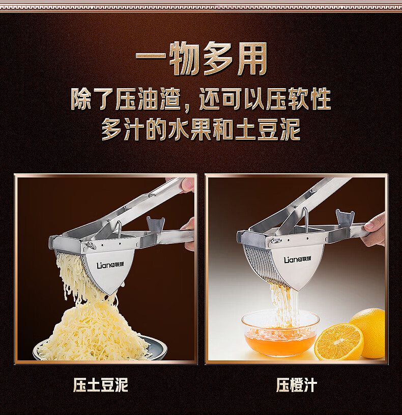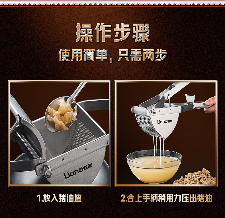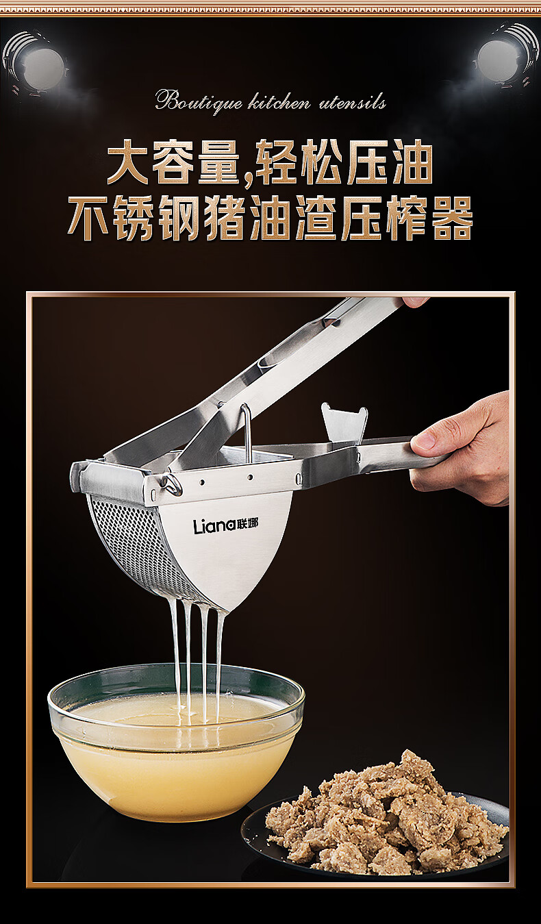 Lianna stainless steel oil press lard residue manual press household small hand-pressed oil press oil squeezing artifact stainless steel lard residue press