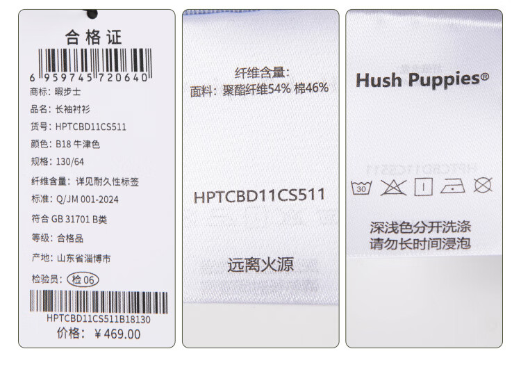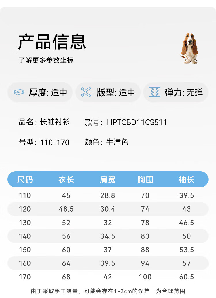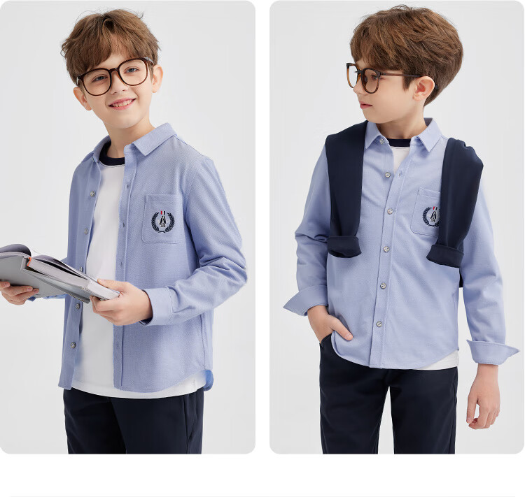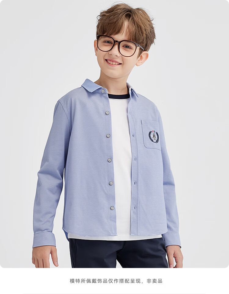 Hush Puppies College Style Children's Clothing Children's Boys' Spring Fashion Elegant Style Children's Shirt Oxford Color 170