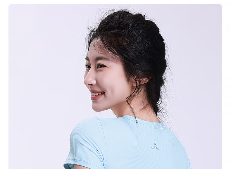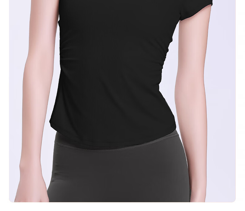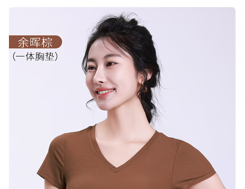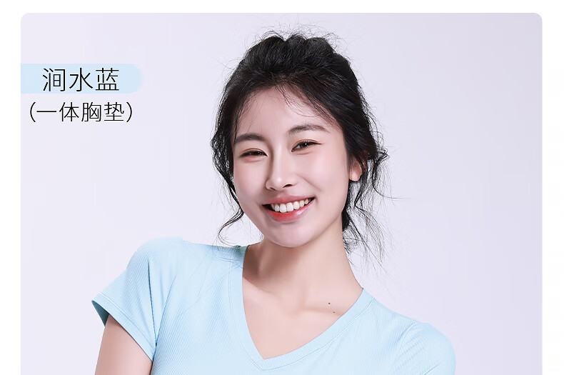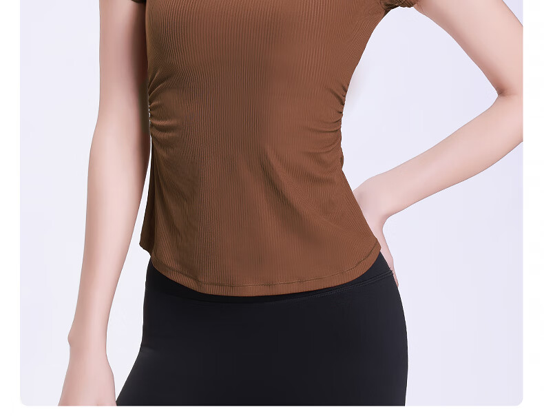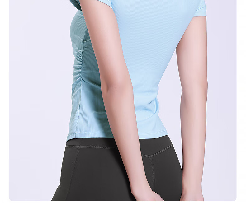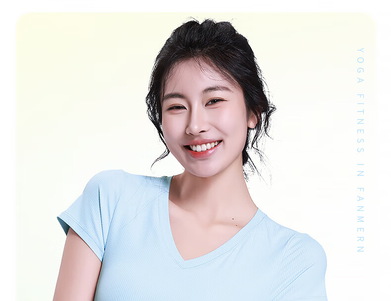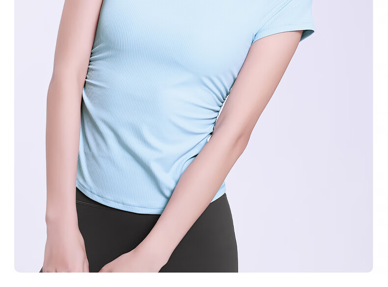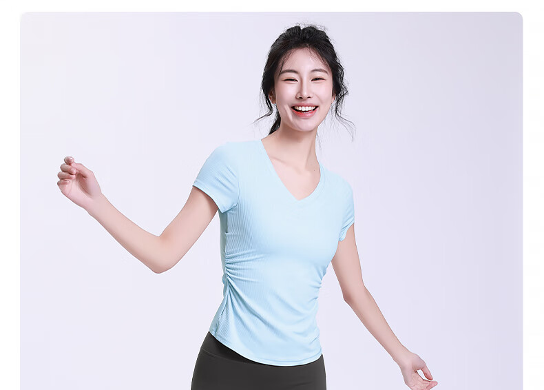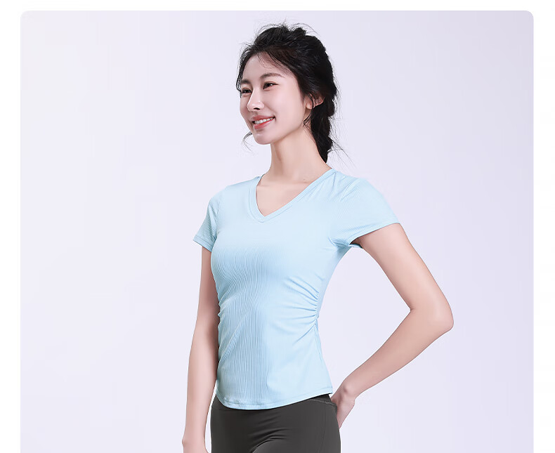 Fanmeiren yoga top with chest pad, one-piece cup, short-sleeved new T-shirt V-neck sports fitness Pilates training suit, Samui powder/one-piece chest pad XL XL