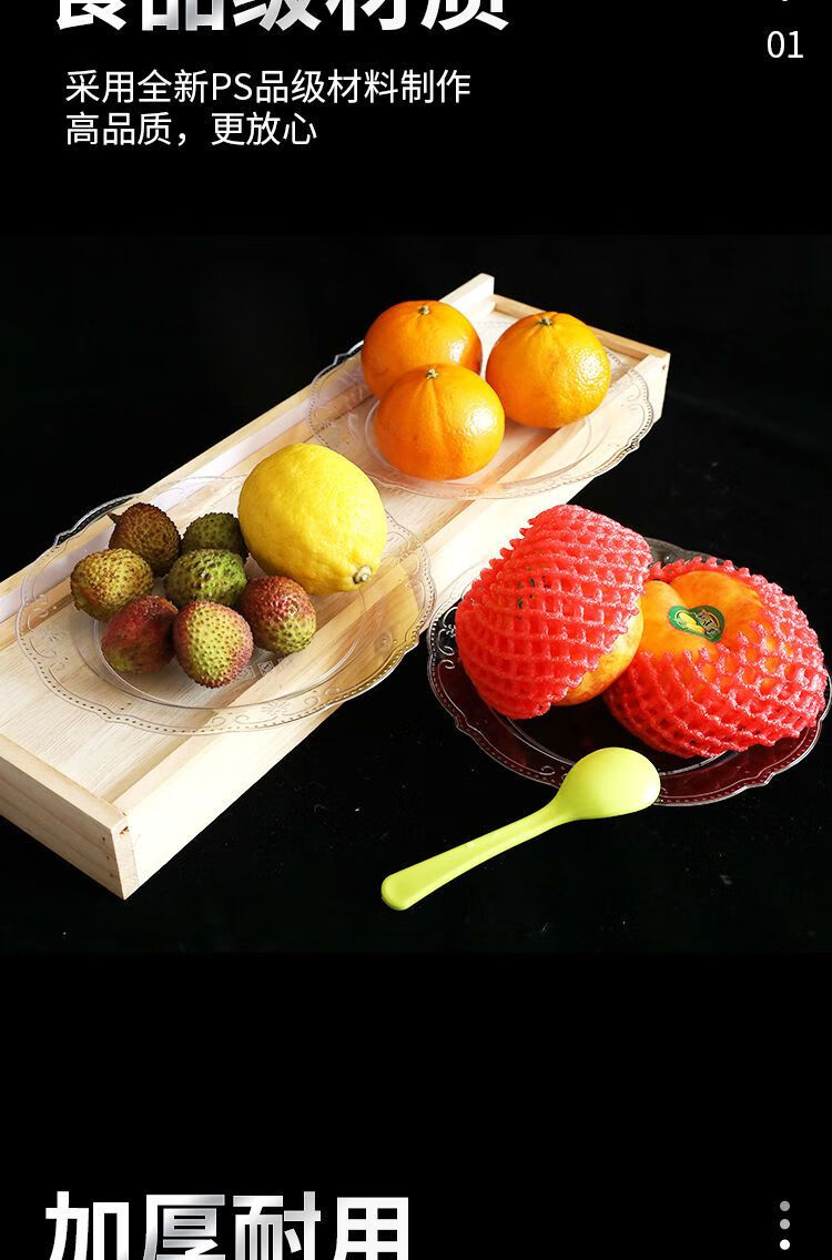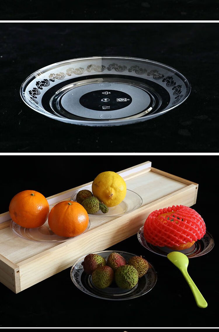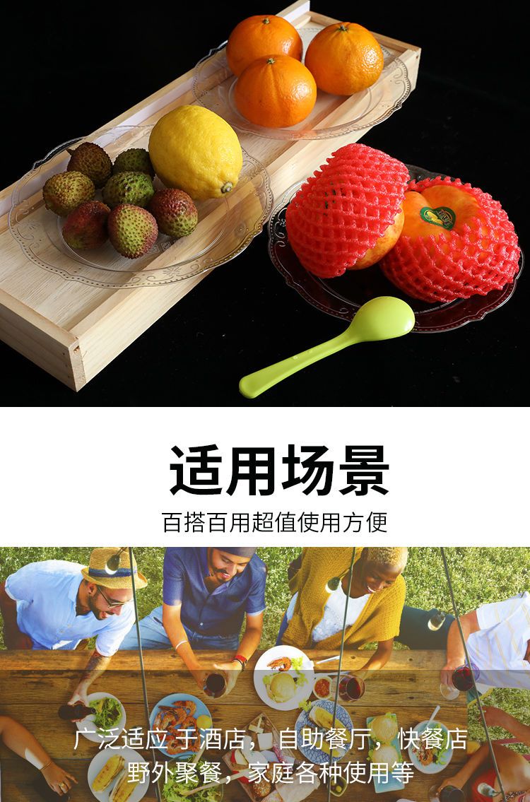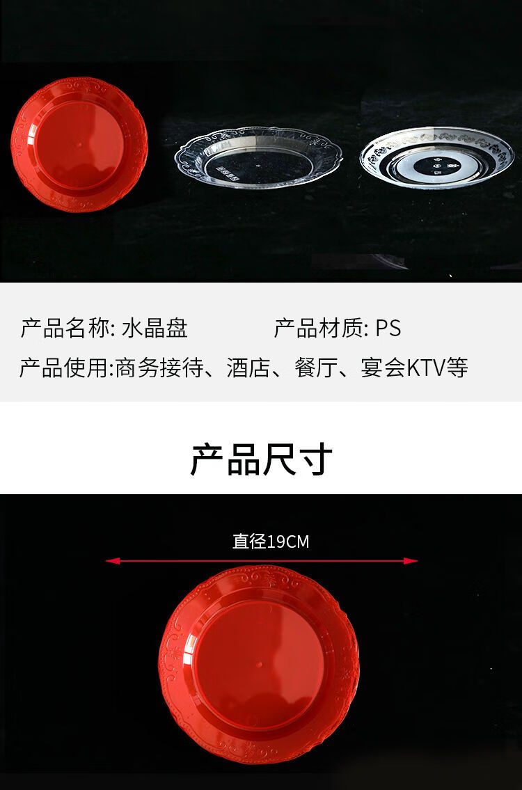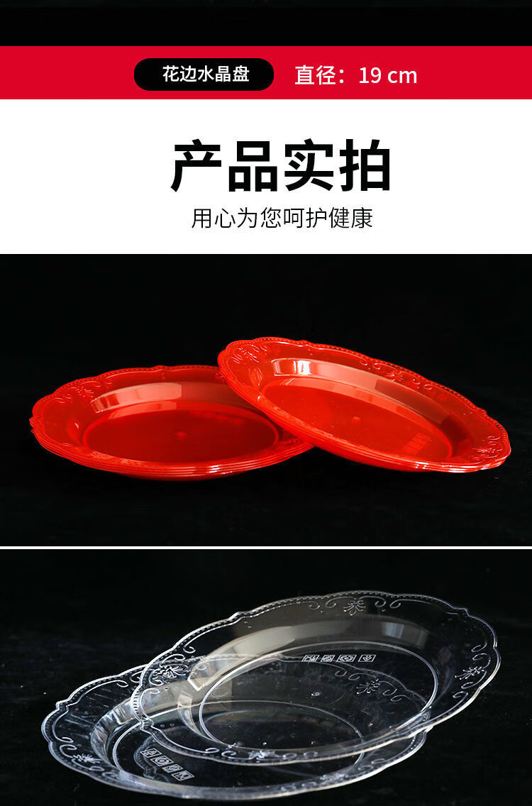 Kang Enjia disposable plate thickened and hardened crystal bone plate household plate cutlery plate hard banquet cake plate 19CM crystal rich plate (transparent) thickened and hardened 50 pieces