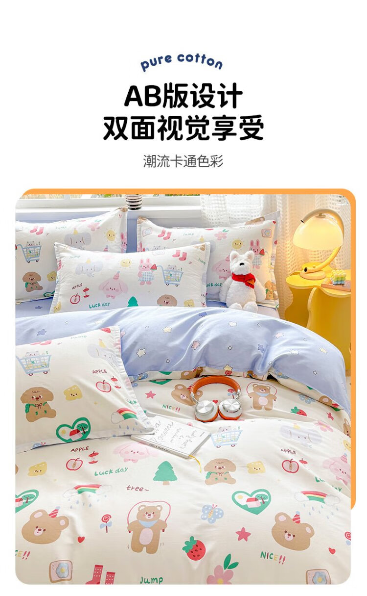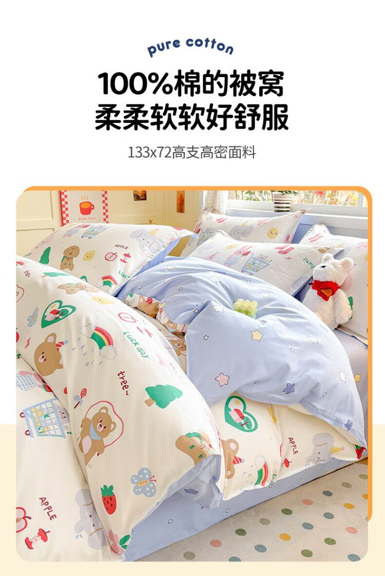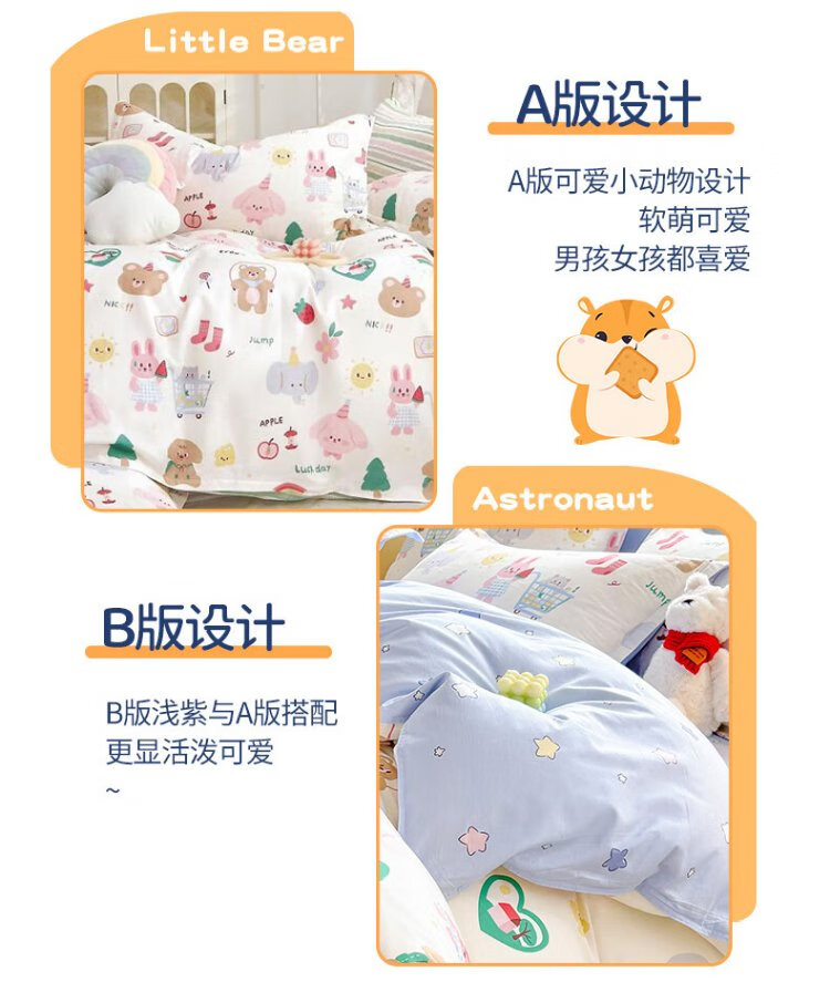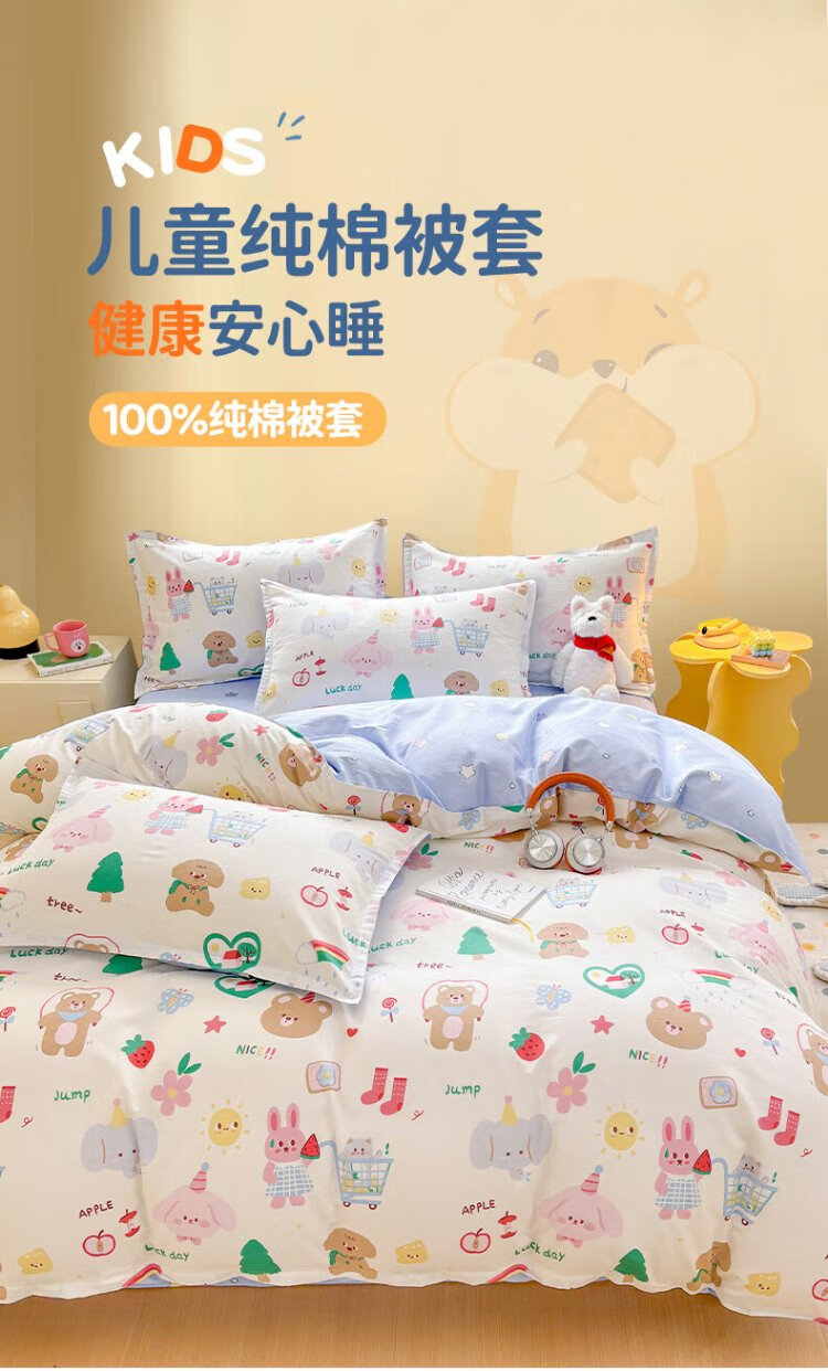Yunjin Class A pure cotton children's quilt cover single piece cotton quilt cover kindergarten 120x150x200 student bedding Snowflake Puppy Bear quilt cover single piece 120*150cm
