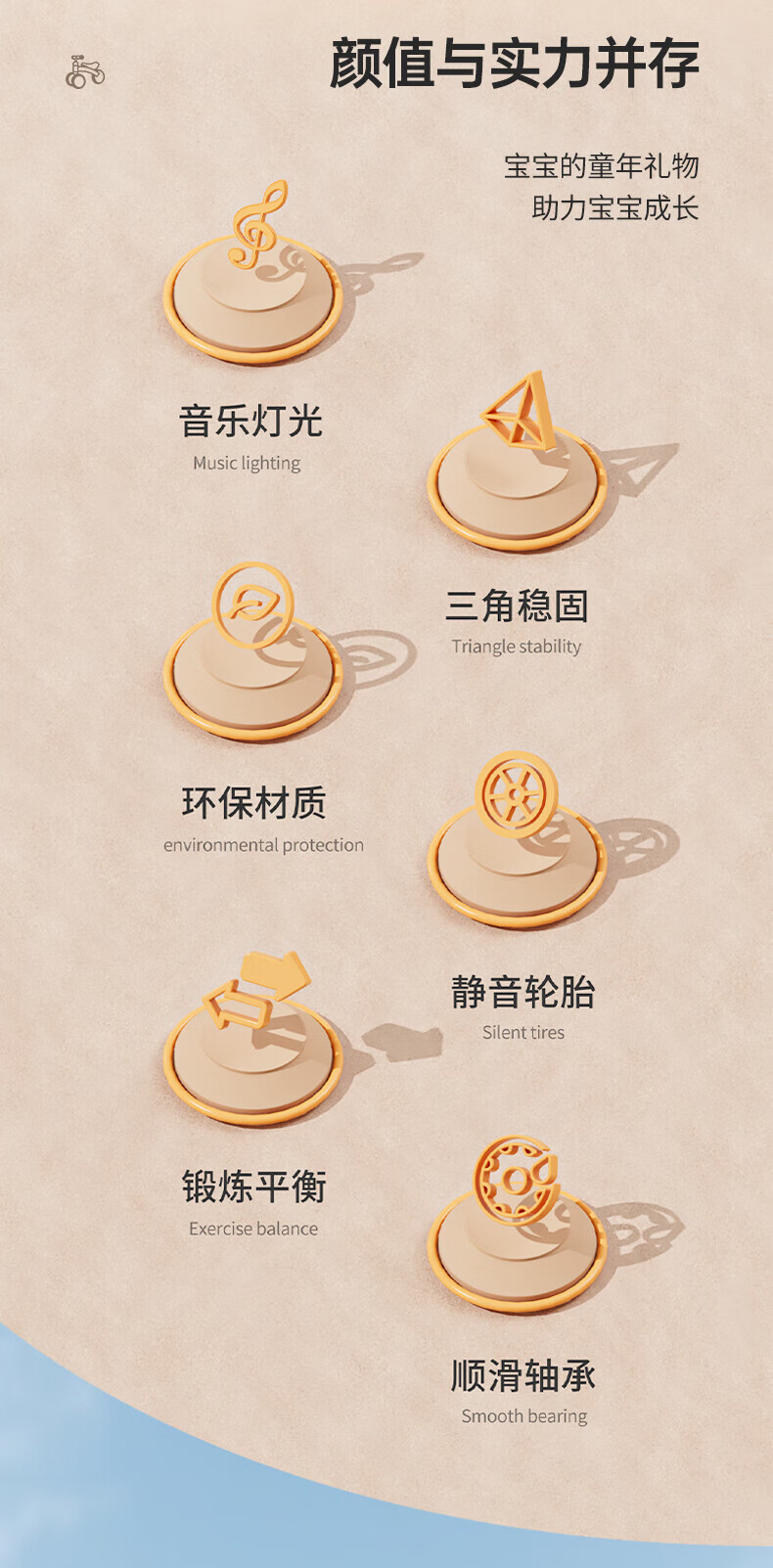 Beiqi children's tricycle bicycle 1-3-6 years old bicycle baby balance car 2-year-old child yo-yo scooter Mocha gray light music + anti-rollover multi-functional anti-rollover baby birthday gift