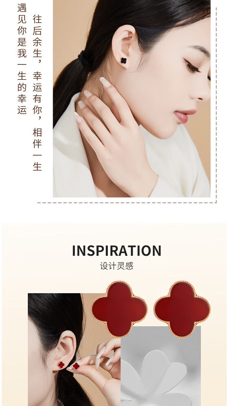 Givenchy light luxury four-leaf clover earrings for women agate necklace earrings earrings jewelry birthday gift for girlfriend black onyx four-leaf clover earrings