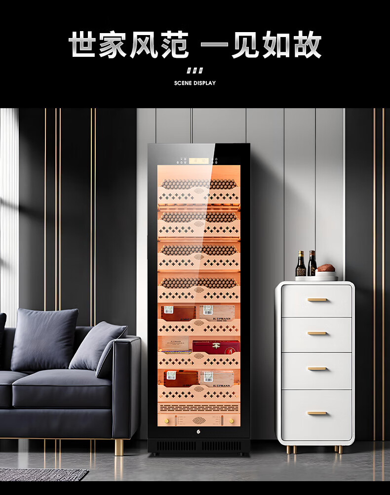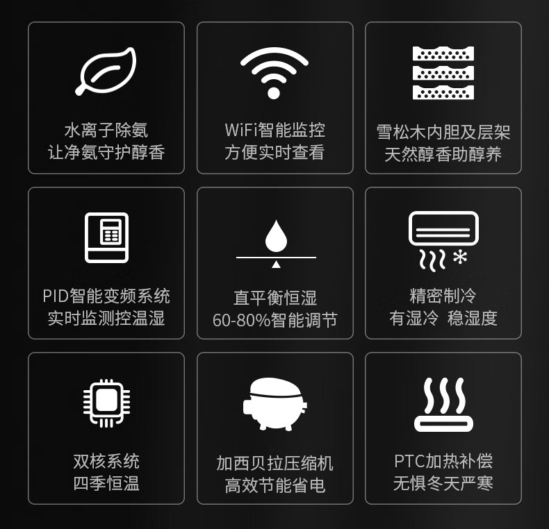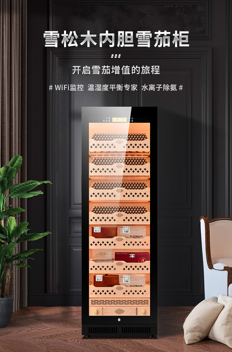 CIGARLOONG CL-188C1 cigar cabinet, precise constant temperature and humidity, water ion ammonia removal, cedar wood liner, WiFi smart control, home compressor, air-cooled, frost-free, mellow and nourishing smart cigar humidifier, rosewood grain cedar wood liner, WiFi+purified ammonia+fingerprint lock