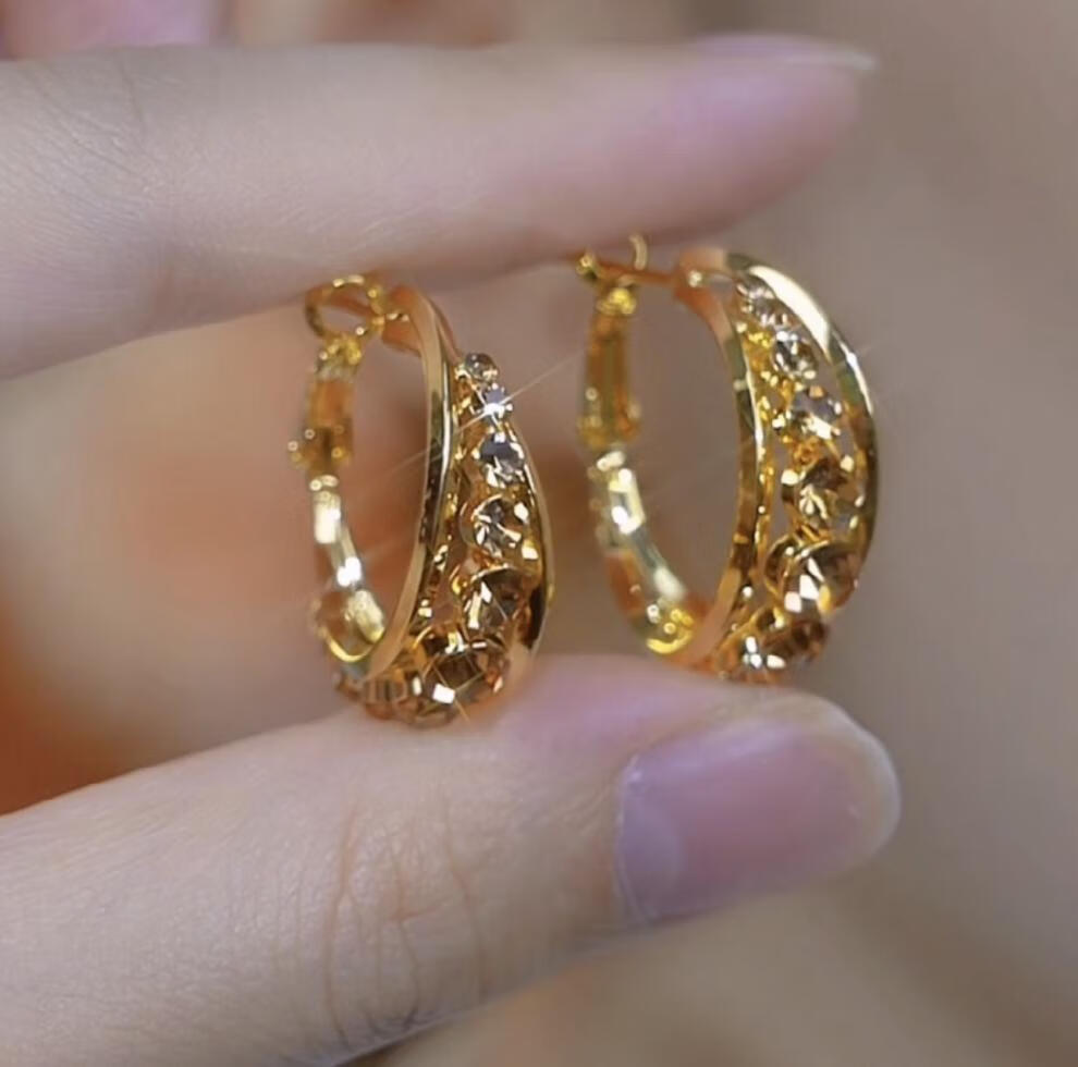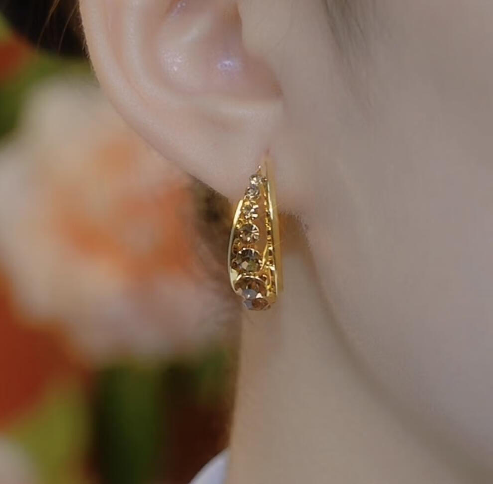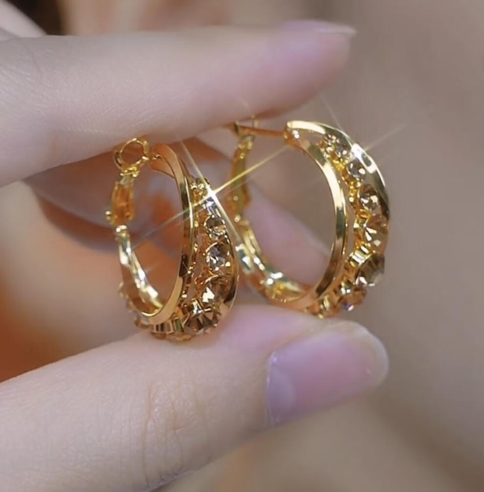 SNQP round face and big face are suitable for earrings, gold-encrusted diamond earrings, women's new light luxury niche 925 silver needle earrings