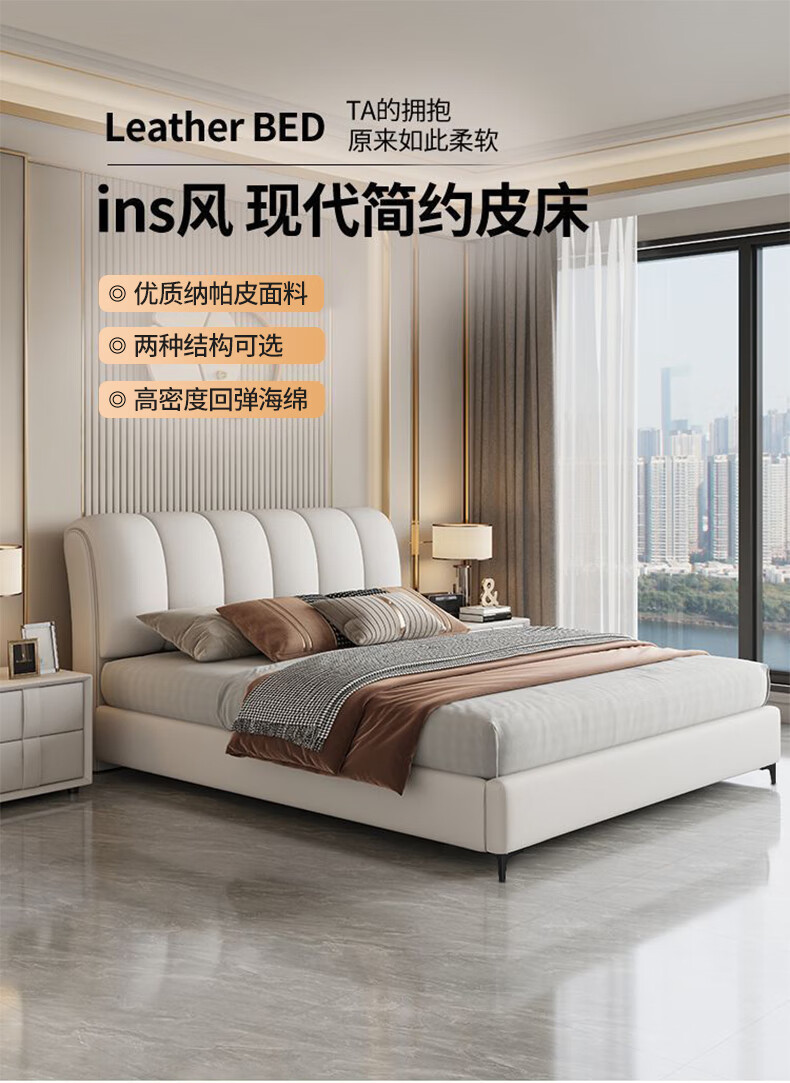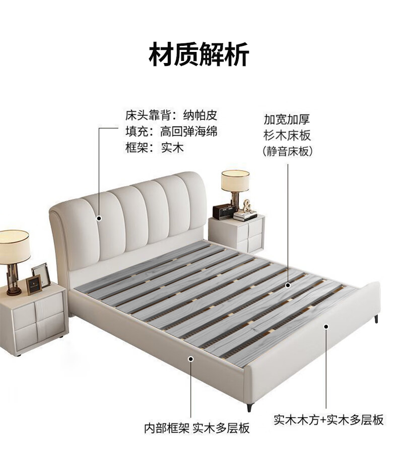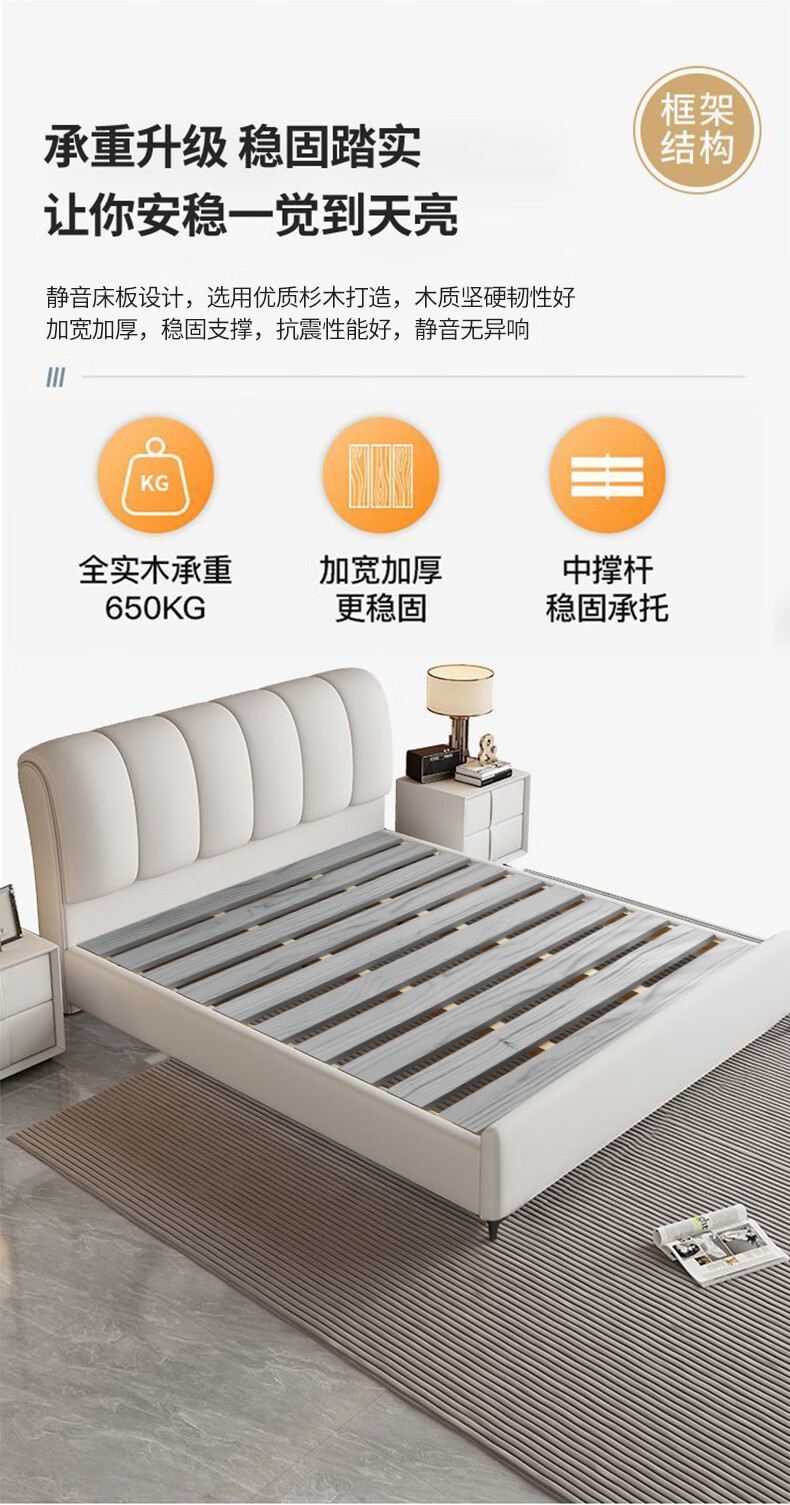 Domestic product subsidy New modern and simple 1.8m double bed master bedroom 1.5m Italian style leather bed Luxury leather bed Delivery to home 1.5*2.0m frame structure-conventional silent bed board
