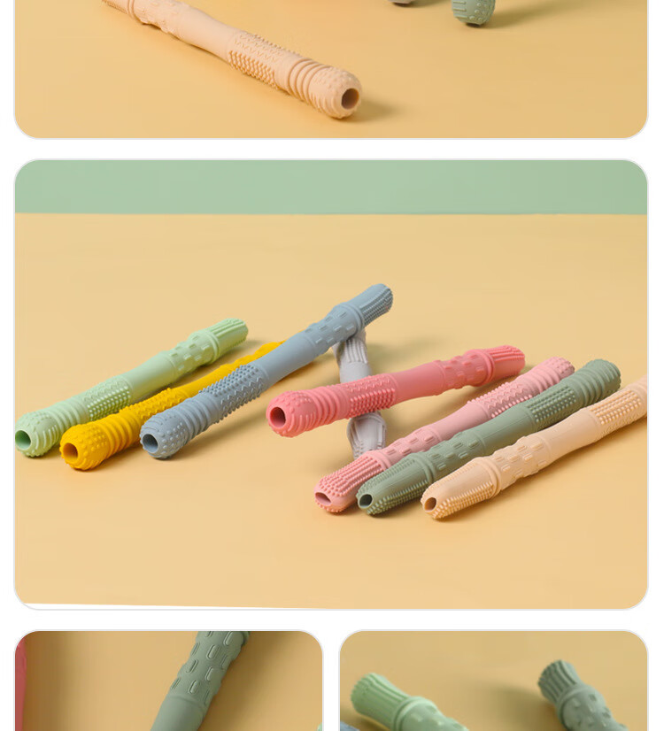 Guanxiangniao Teething Stick Baby Teething Stick Hollow Straw Teether Chewable Child Massage Gum Food Grade Soft Bite Matcha Green*/1pc Silicone Hollow Teether Tube