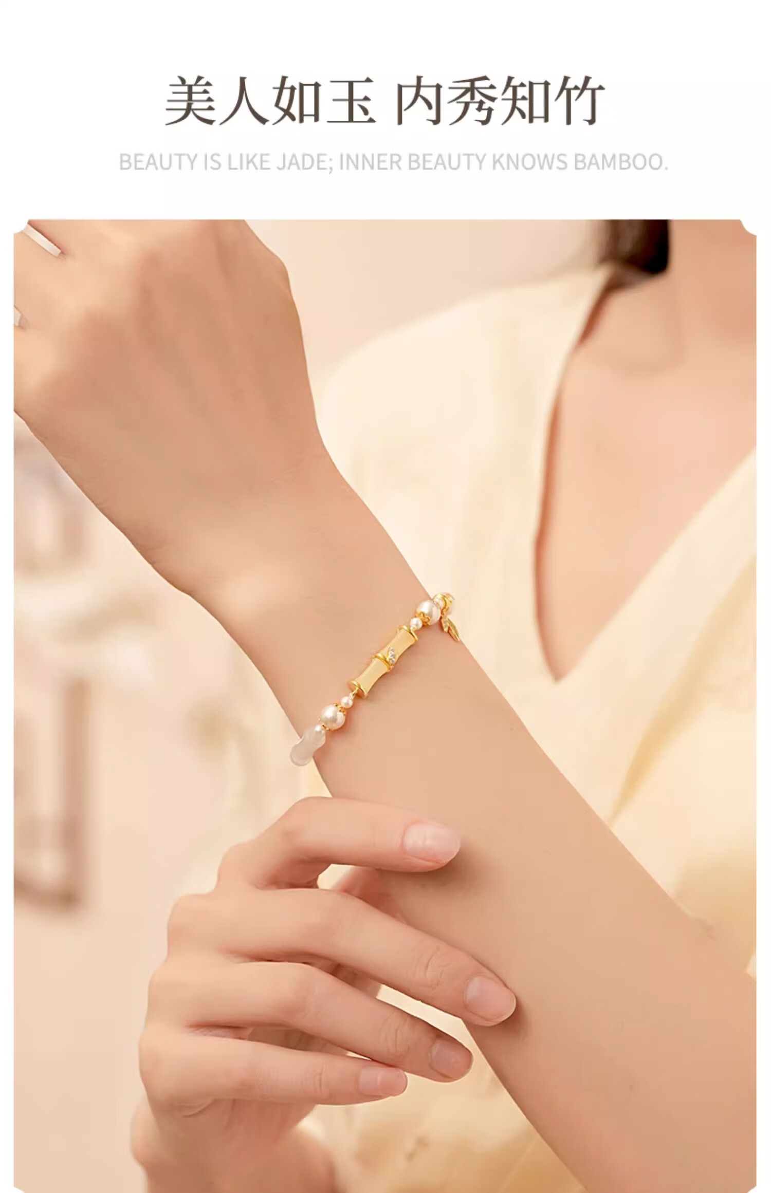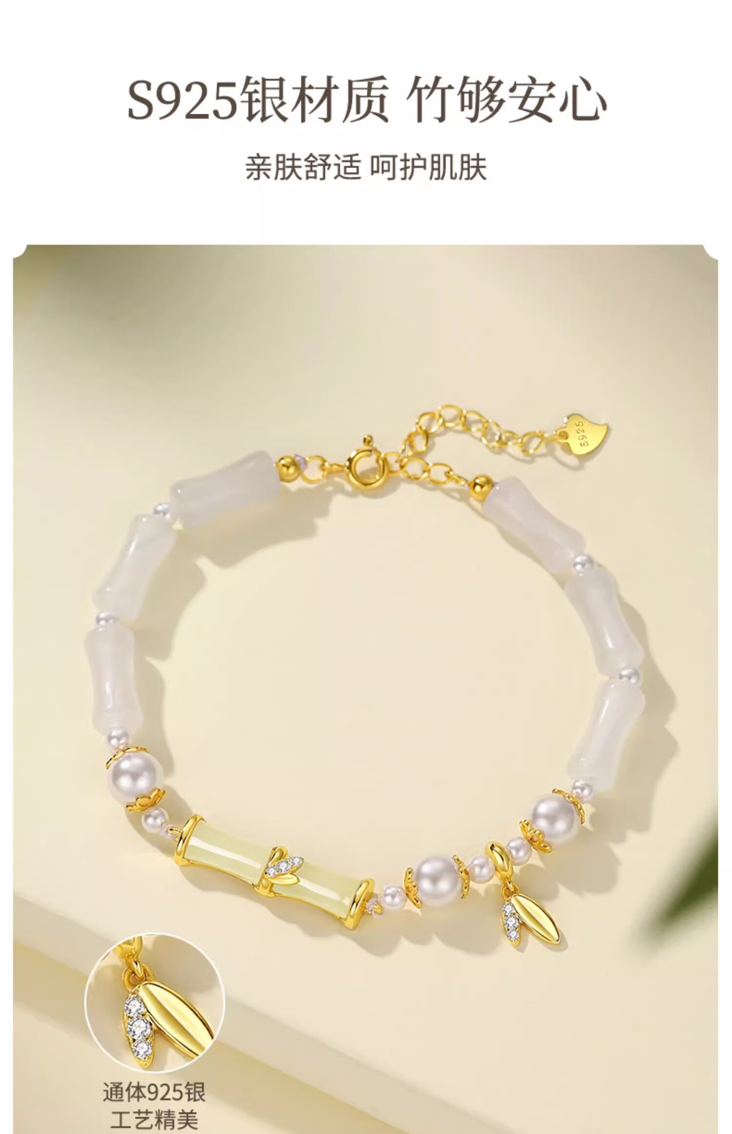 MZMZ You You Zhu Guo Platinum Necklace Women's PT950 Platinum Necklace Hetian Jade Bracelet Girlfriend Wife Chinese Valentine's Day Gift Light Luxury Style - You You Zhu Guo Bracelet