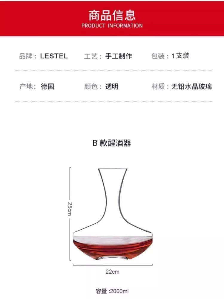 LESTEL brand direct sales German imported handmade red wine decanter wine divider European high-end red wine cup household handmade decanter 2000ml