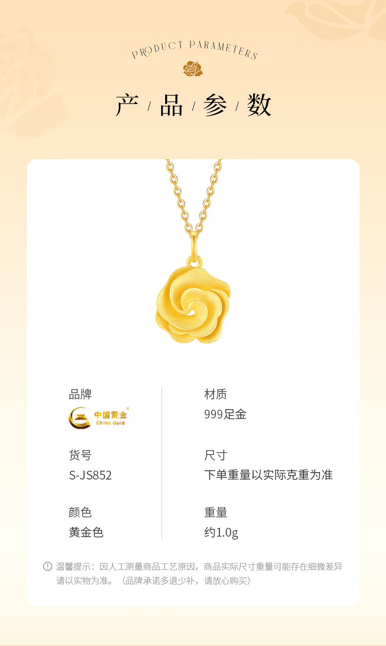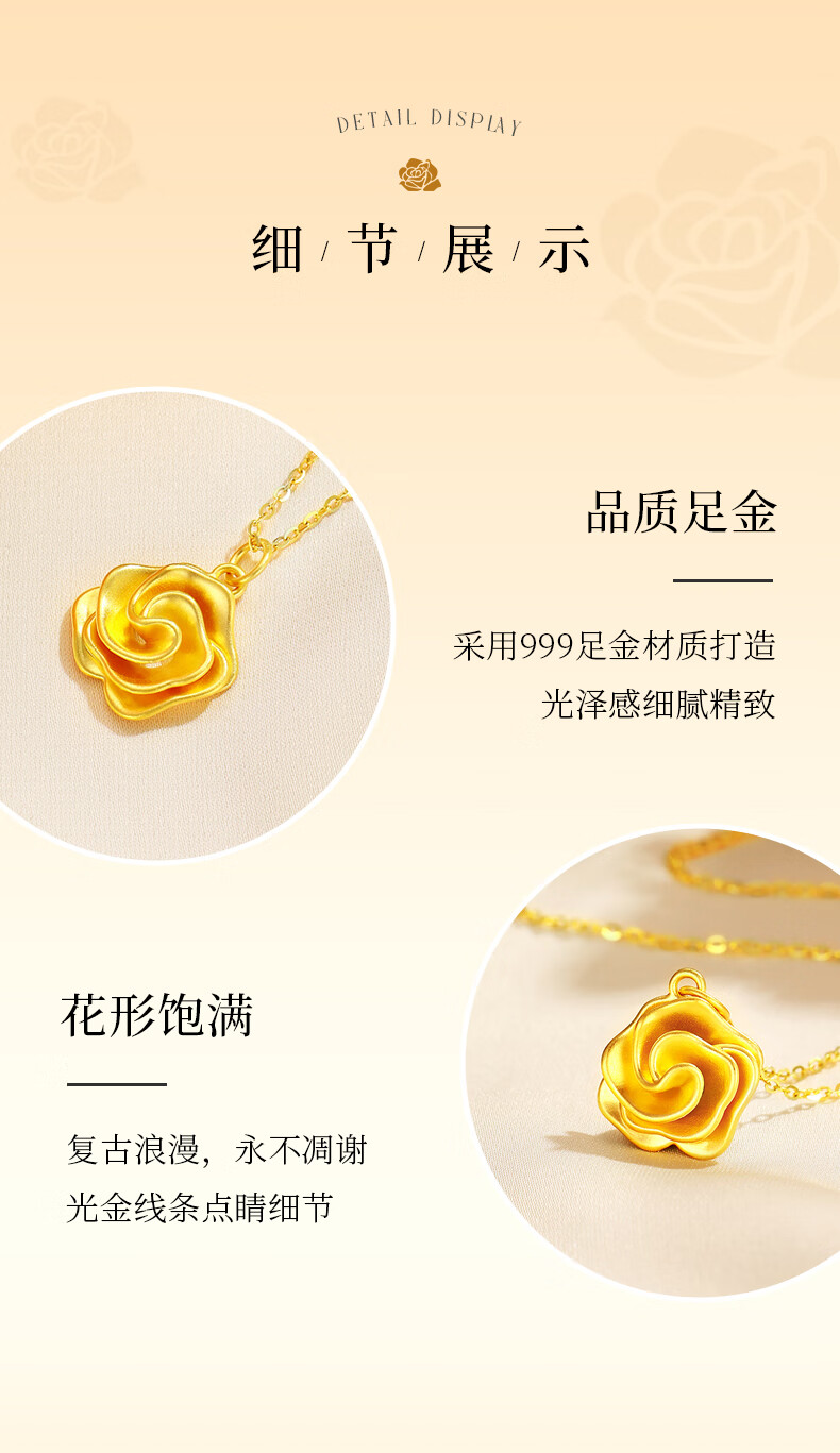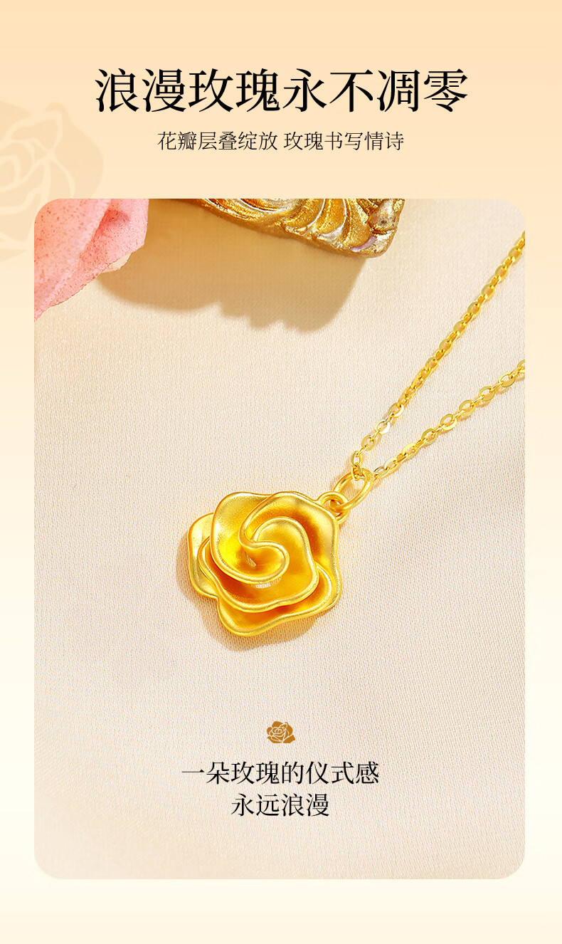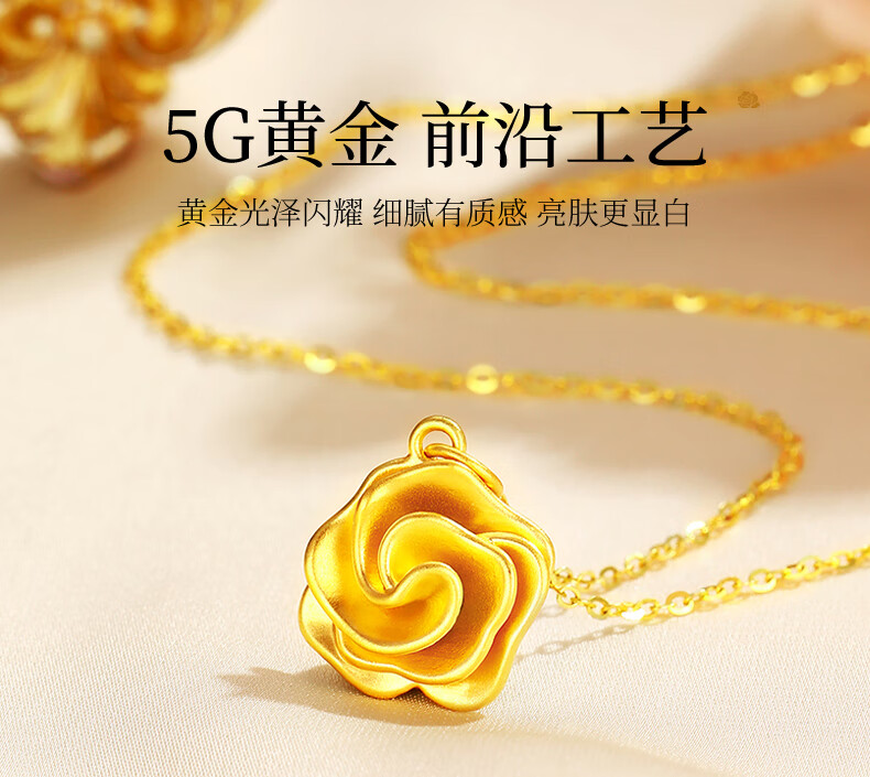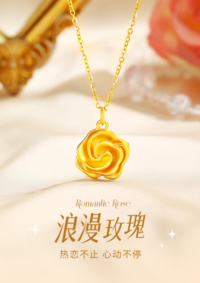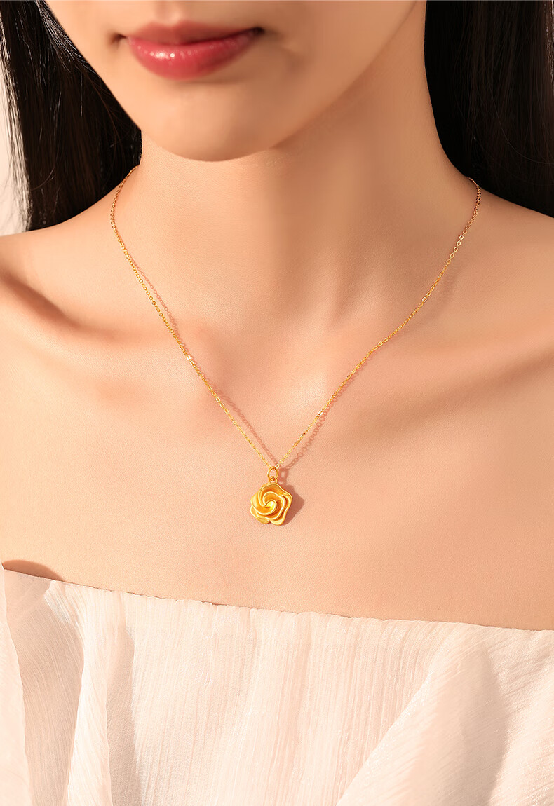 CHINA GOLD Gold Necklace Women's 999 Pure Gold Rose Pendant Christmas Eve Birthday Gift for Girlfriend and Wife Rose Pendant About 0.7g* Free Silver Chain + Brand Gift Box