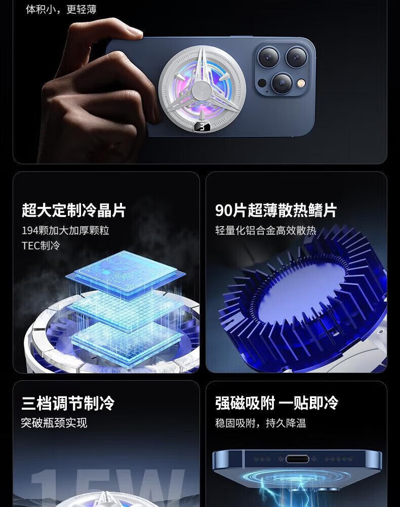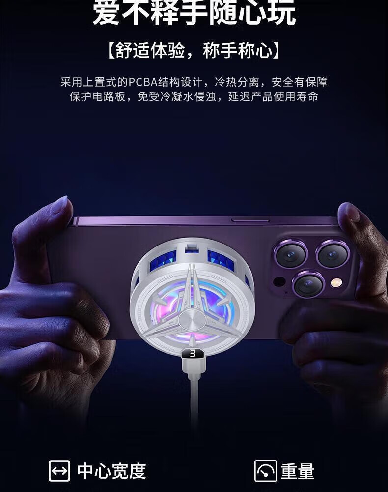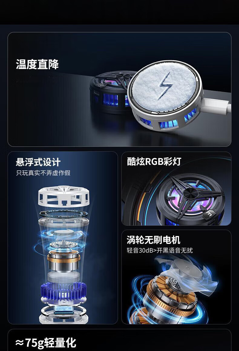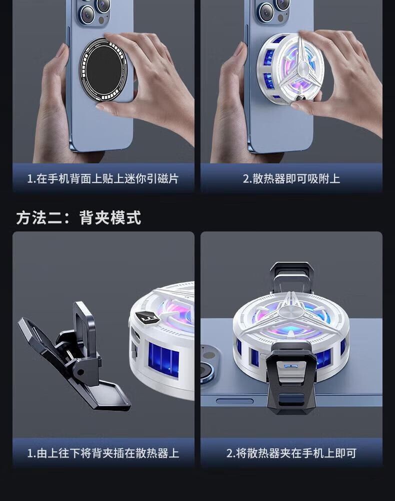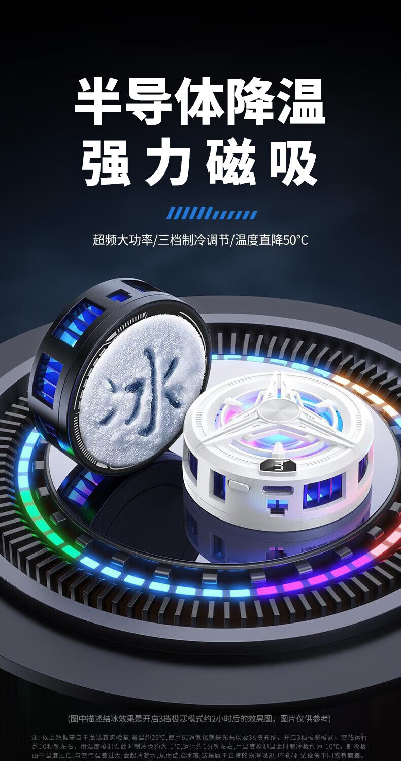 Keyman Super Fast Cooling Mobile Phone Radiator Magnetic Bass Cooling Game Tablet Suitable for Black Shark/iqoo/OnePlus Apple Semiconductor Refrigeration Digital Display Back Clip Honor of Kings E-Sports League Level Starlight White丨Powerful Magnetic Suction Dual-Core Semiconductor Refrigeration