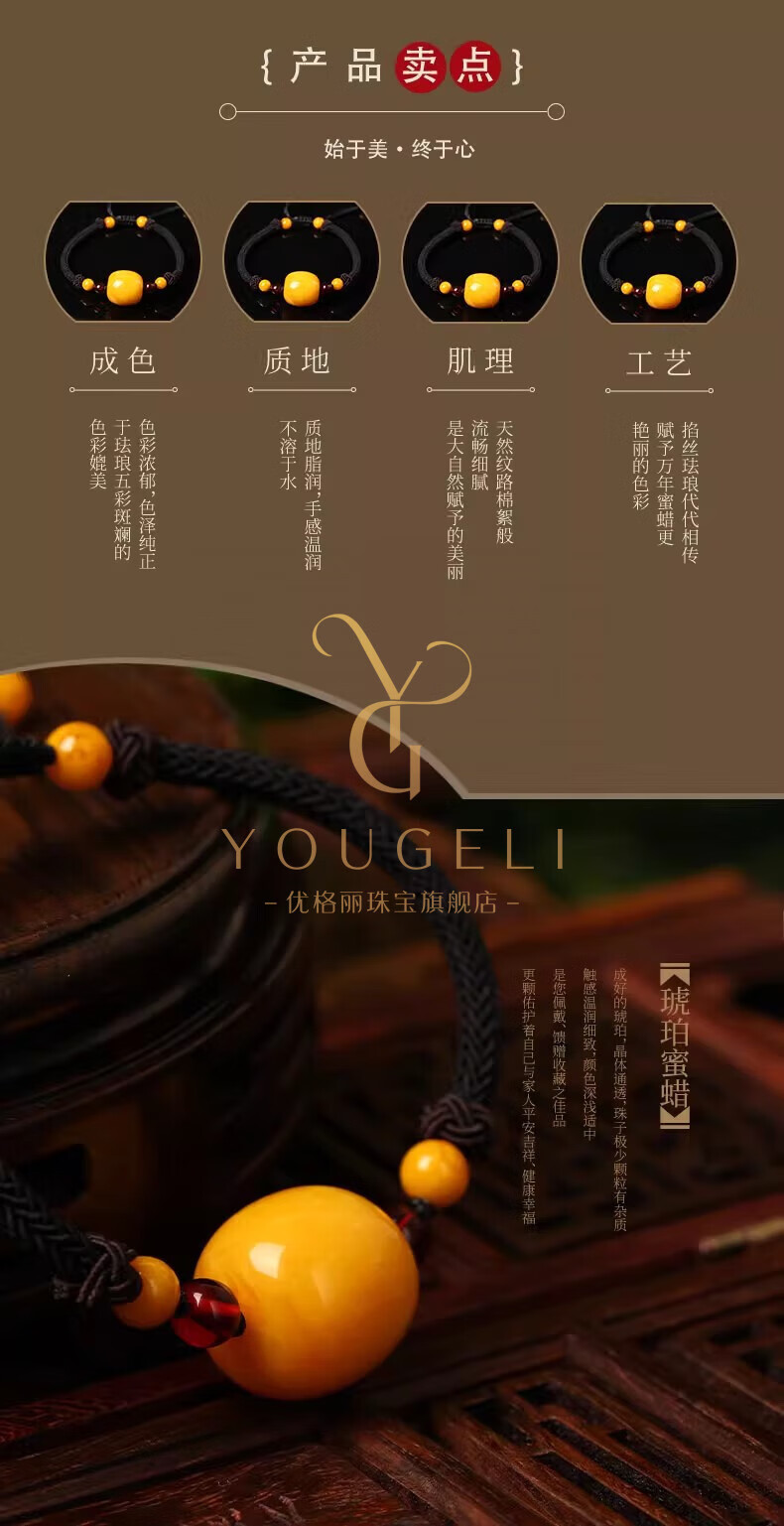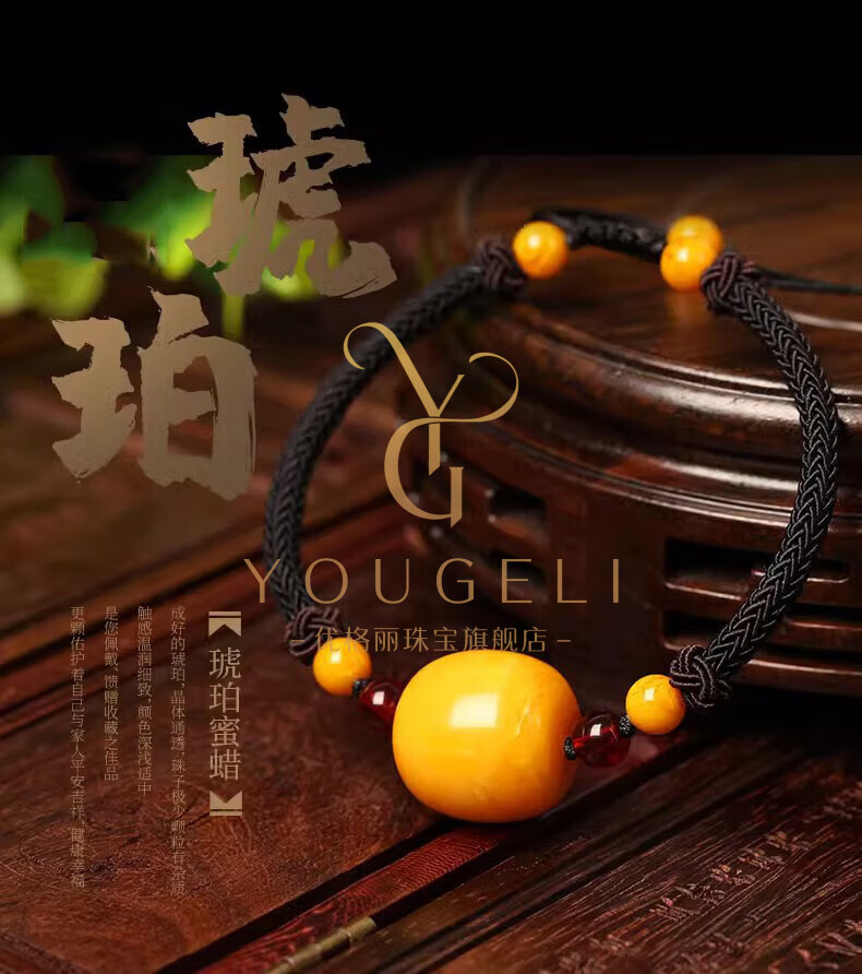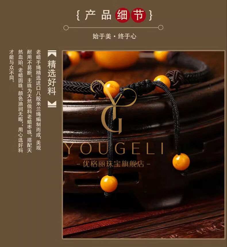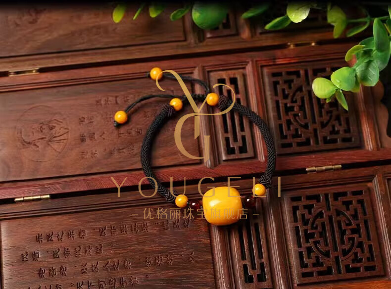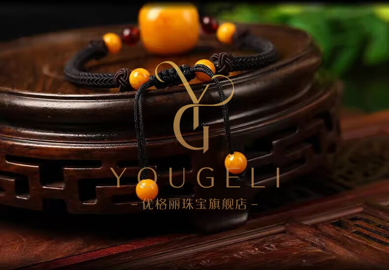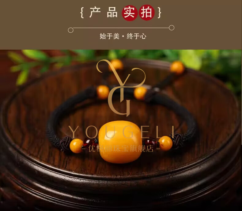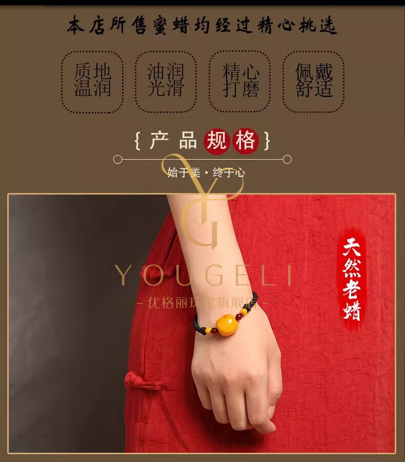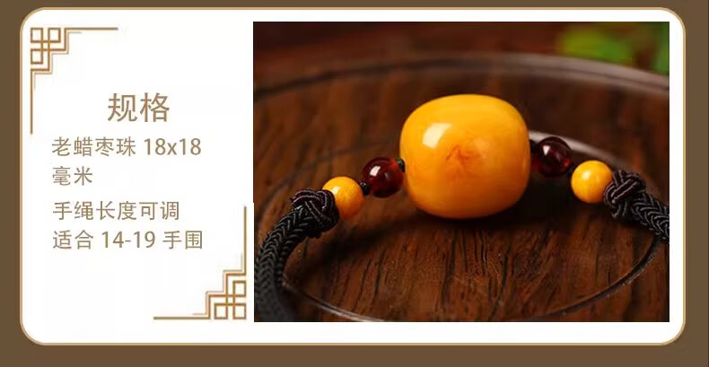 Yogurt Natural Chicken Fat Yellow Old Wax Beeswax Bracelet Braided Rope Men's and Women's Amber Raw Stone Bracelet Couple's Hand Accessories Old Wax Bracelet (18*18mm)