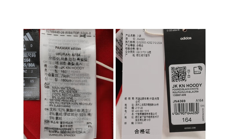 Adidas Taobao boys' hooded sports casual pullover long-sleeved sweatshirt red JN4369 JN4369 164