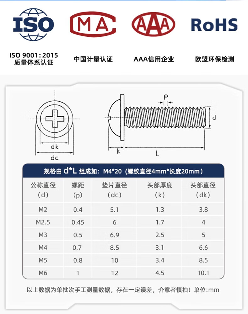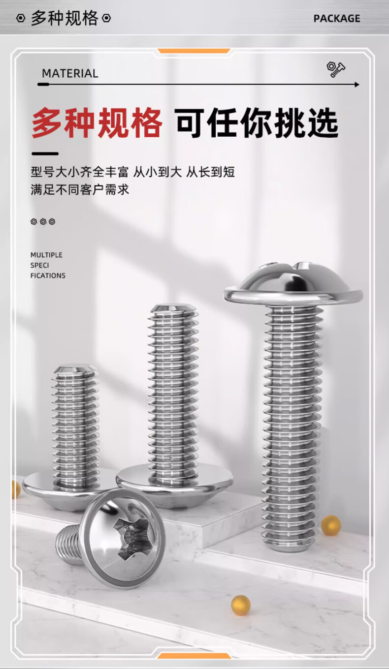 Fengji 304 stainless steel cross round head with pad machine screw pan head with intermediary screw bolt M2M2.5M3M4M5M6mm M5*70-10 pcs