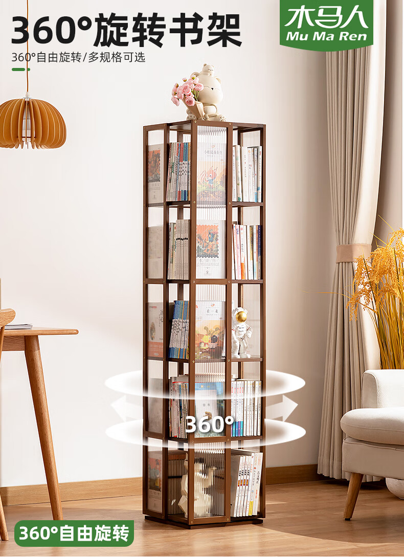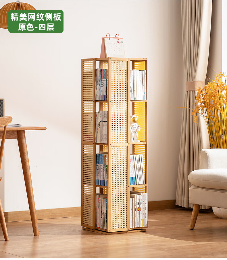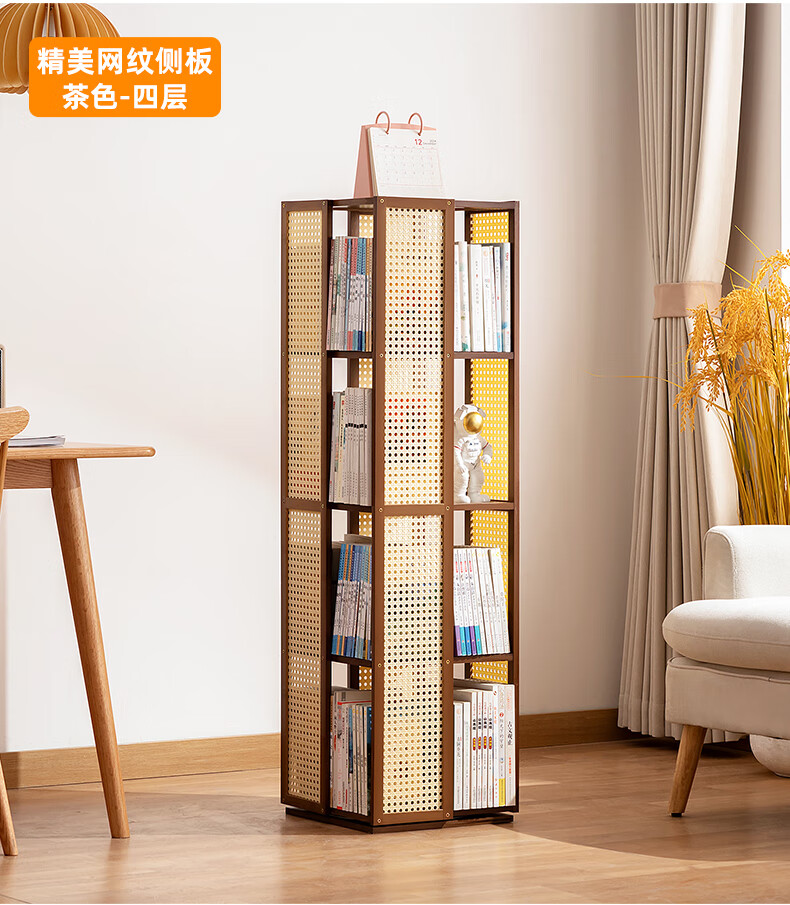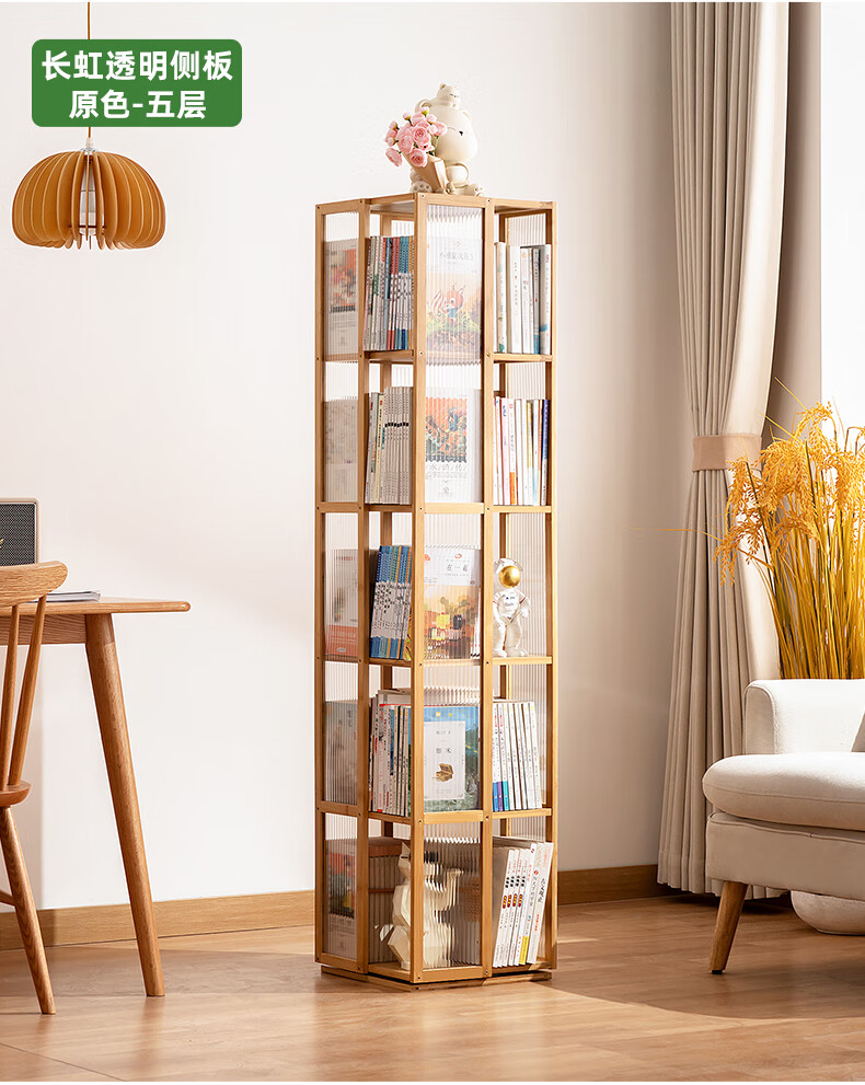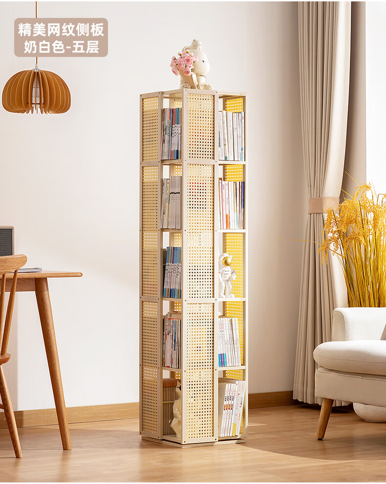 Trojan household multi-layer rotating bookshelf floor-standing modern storage rack simple storage storage rack display rack study picture book rack 360 rotation Changhong side panel-primary color five layers