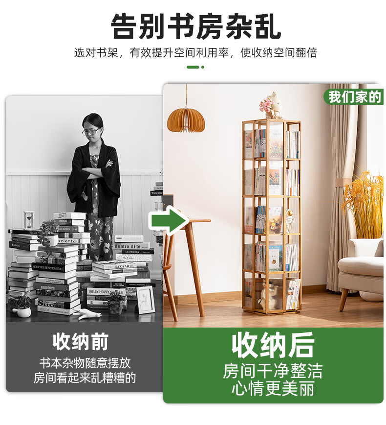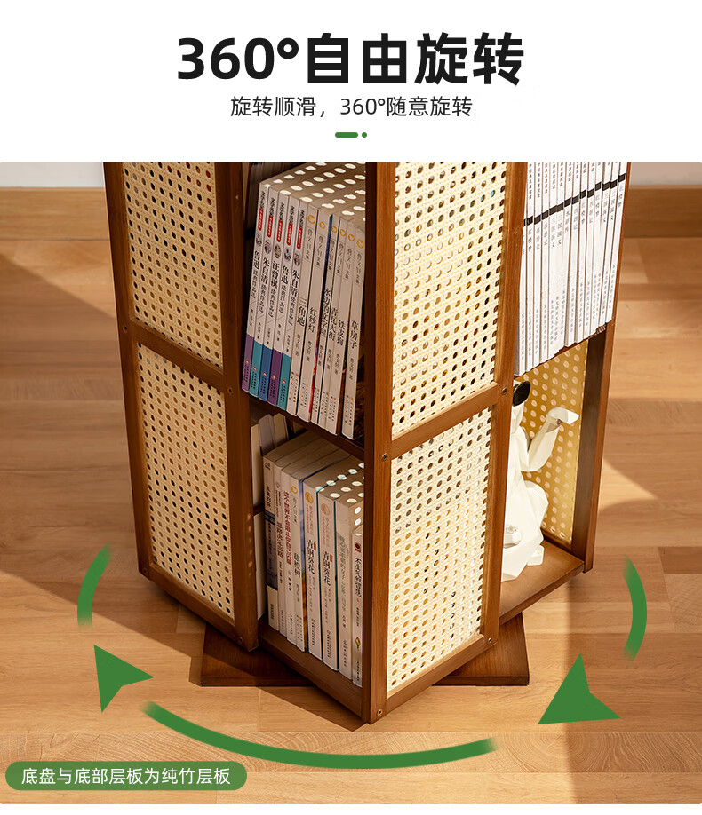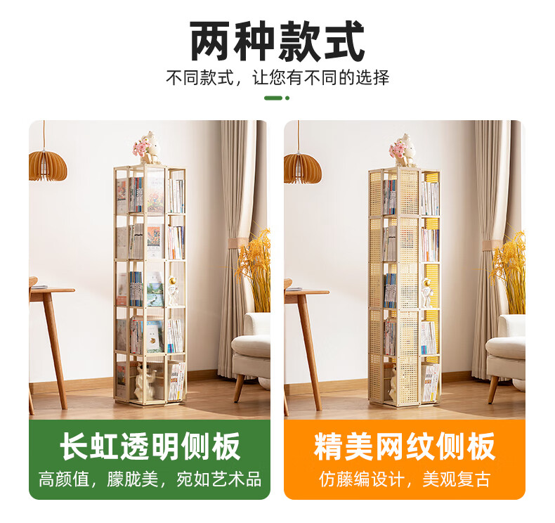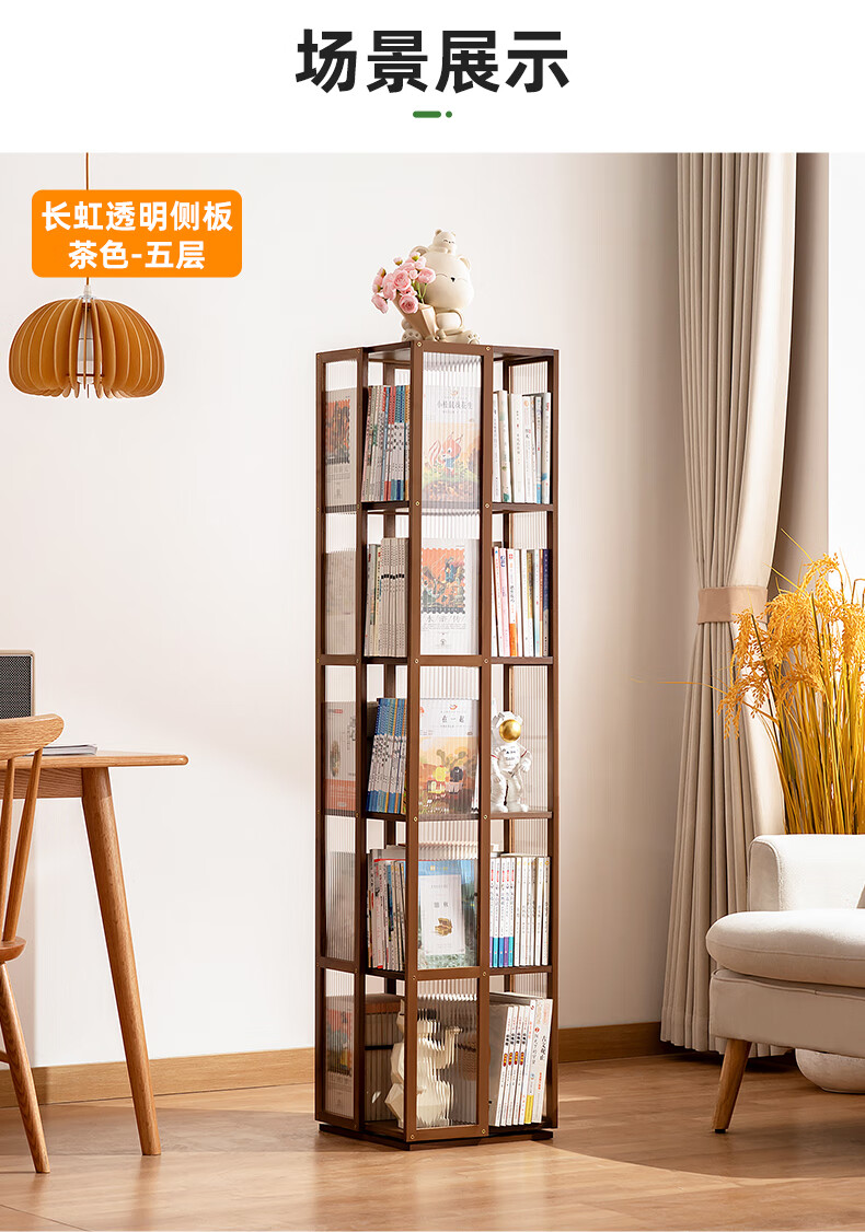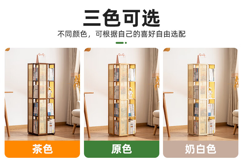 Trojan household multi-layer rotating bookshelf floor-standing modern storage rack simple storage storage rack display rack study picture book rack 360 rotation Changhong side panel-primary color five layers