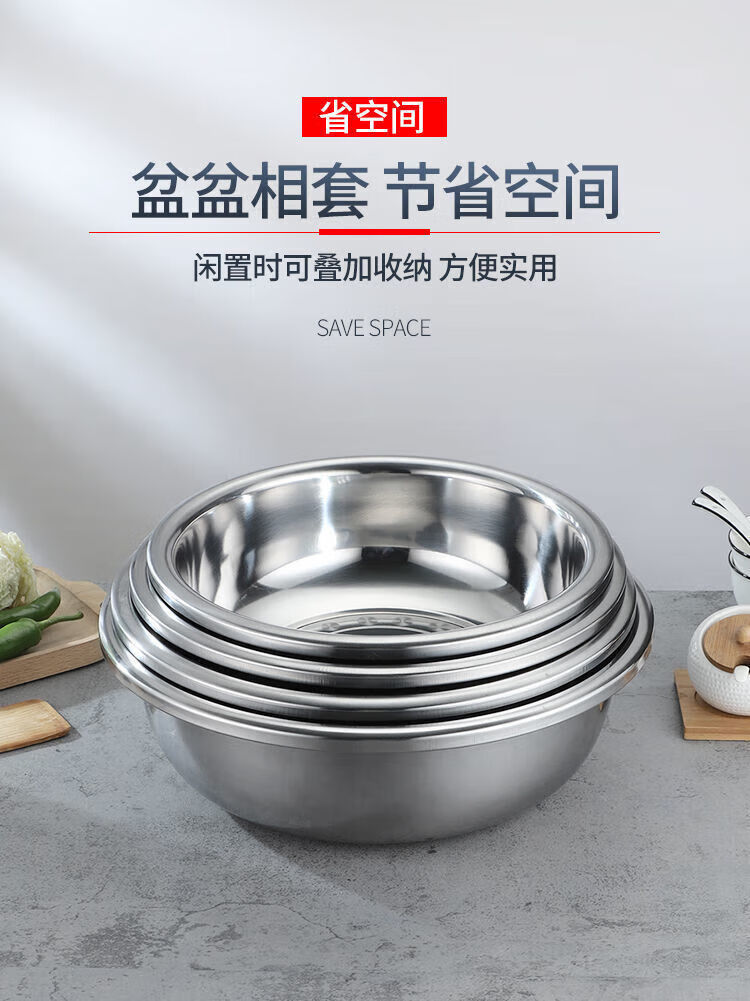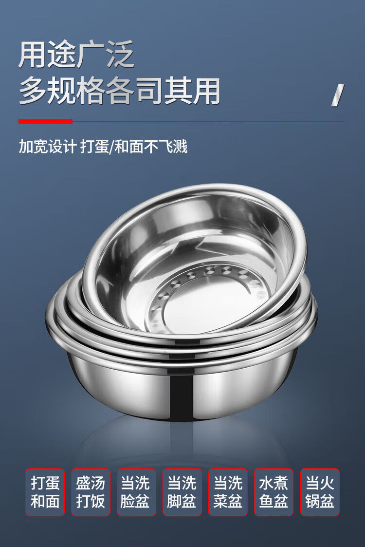 Thick stainless steel basin, home kitchen, commercial vegetable sink and face wash basin, smaller size, one 16cm stainless steel bowl
