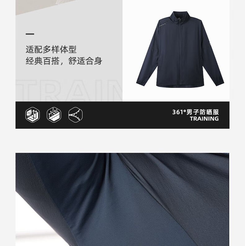 361 U release sun protection clothing for men 2025 spring waterproof and anti-UV thin running and fishing sports jacket dark ink blue S