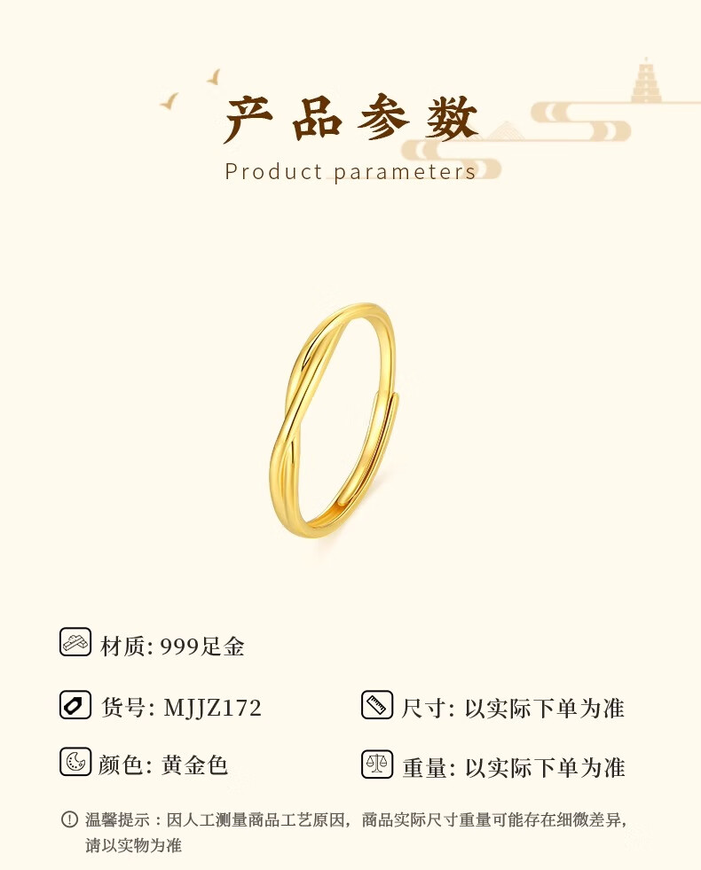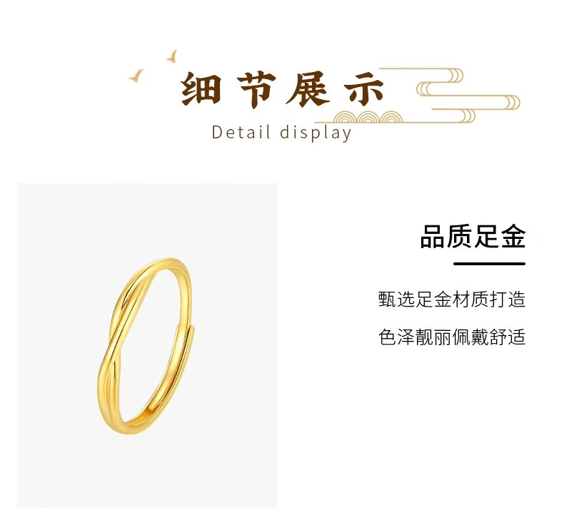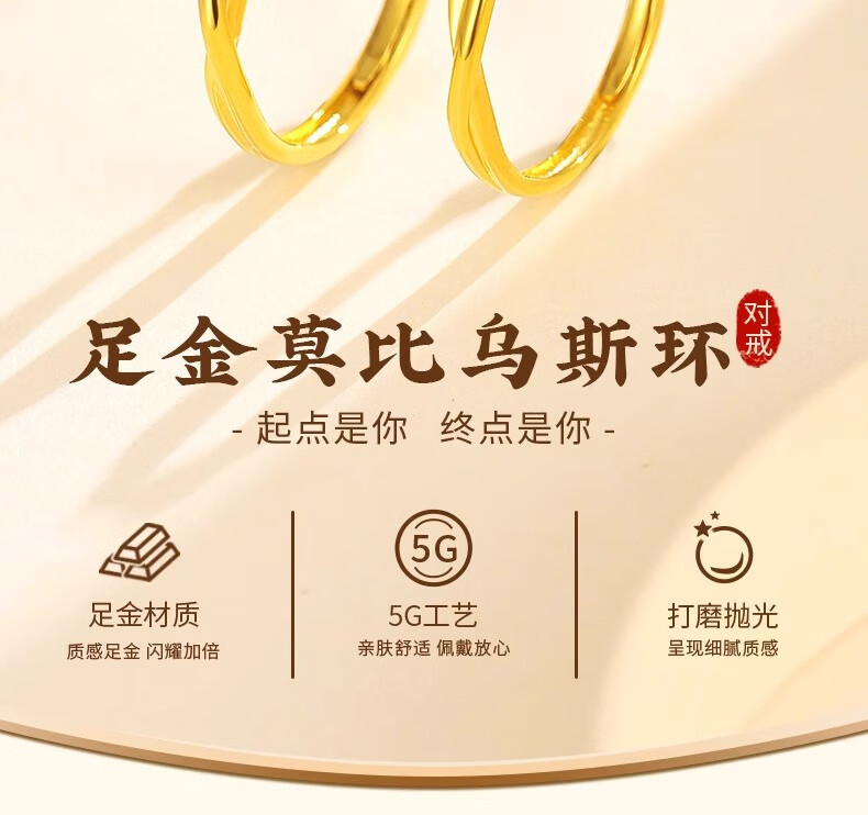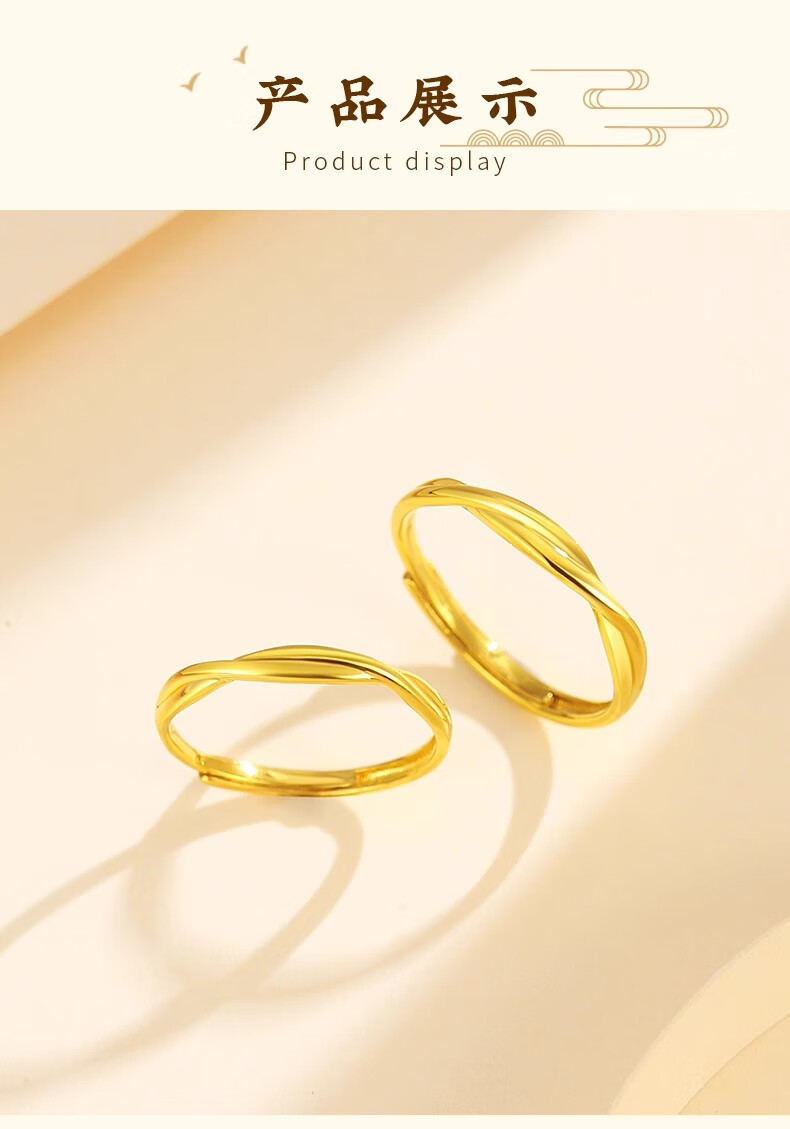 CHINA GOLD Mobius Gold Ring Women's 999 Pure Gold Ring Birthday Gift for Girlfriend and Wife (Gold Weight About 2.2g) Pure Gold Ring-Male