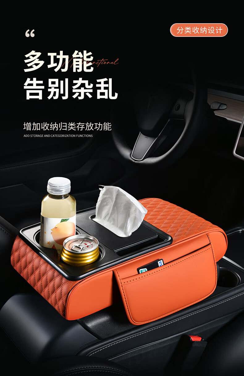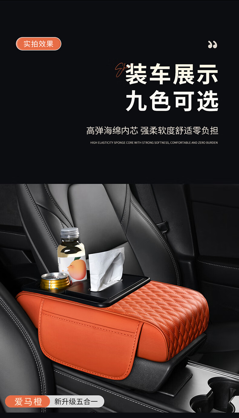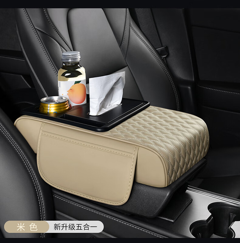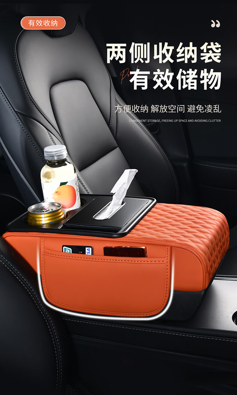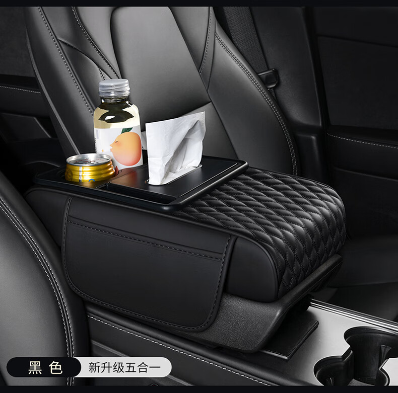 Wuji Audi Q5L/A6L/A4L/Q3/Q7 car tissue box multi-functional five-in-one armrest box booster pad Audi armrest box pad/five-in-one black