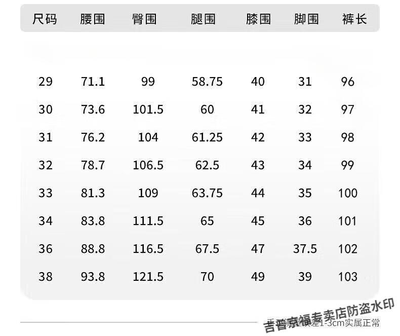 Outseam (cm) 99 cm 101.5 cm 104 cm 106.5 cm 109 cm
