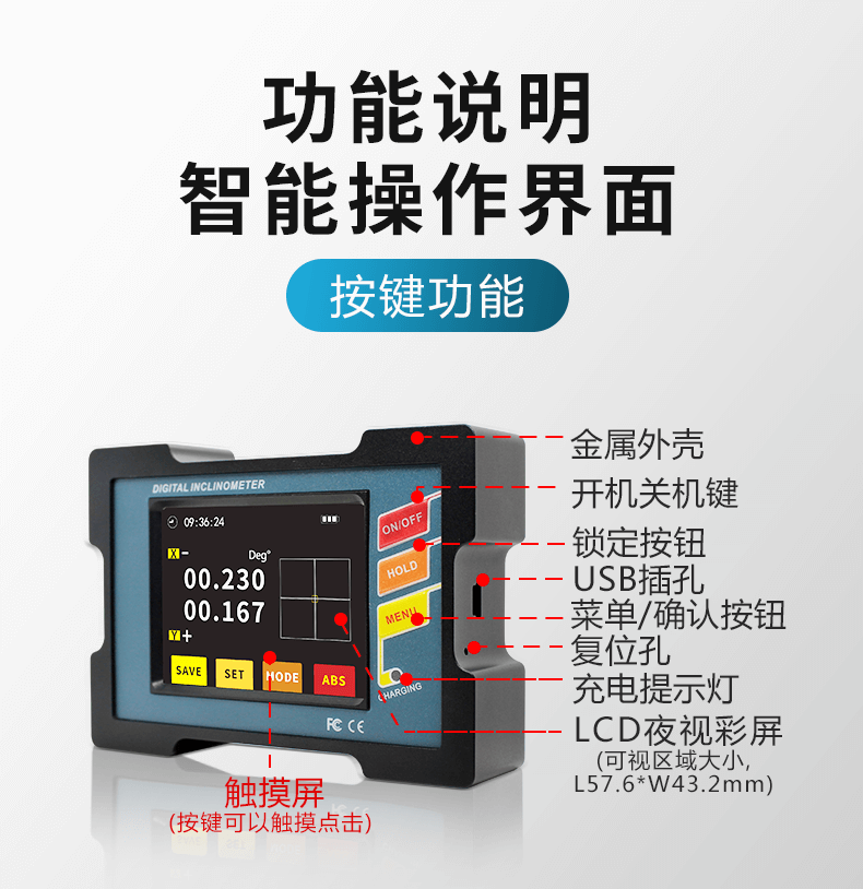 Ji Litian DMI820 digital display inclinometer high-precision measurement mode switchable strong magnetic installation single and dual-axis angle water DMI820 dual-axis