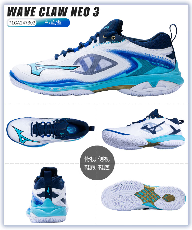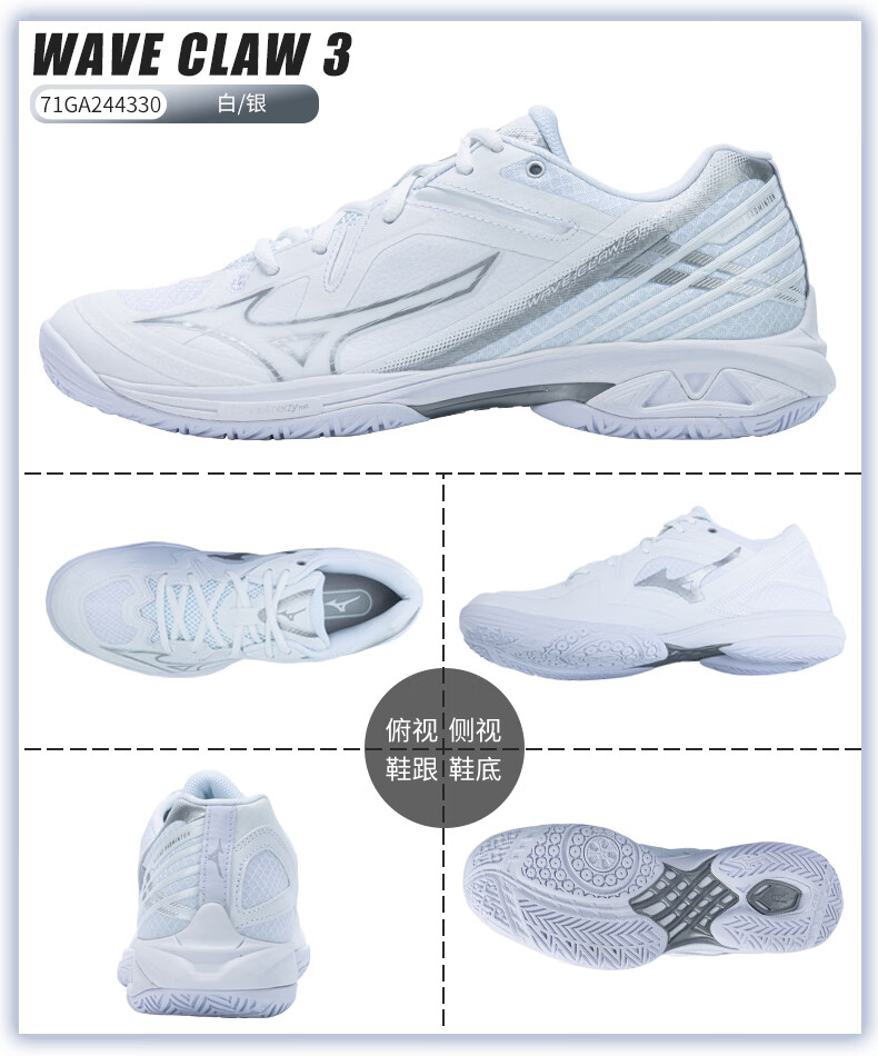 Mizuno (MIZUNO) WAVE CLAW NEO 3 Eagle Claw 3rd generation professional badminton shoes for men and women, lightweight, flexible and fast, silver WAVE CLAW NEO 3 2025 new product 41 =265mm