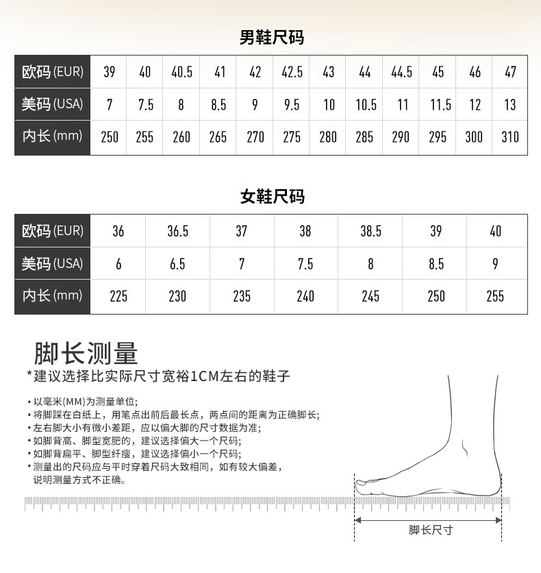 China (cm) 36 - 37 38 - 39 40 - 42 43 - 44 45 - 47
