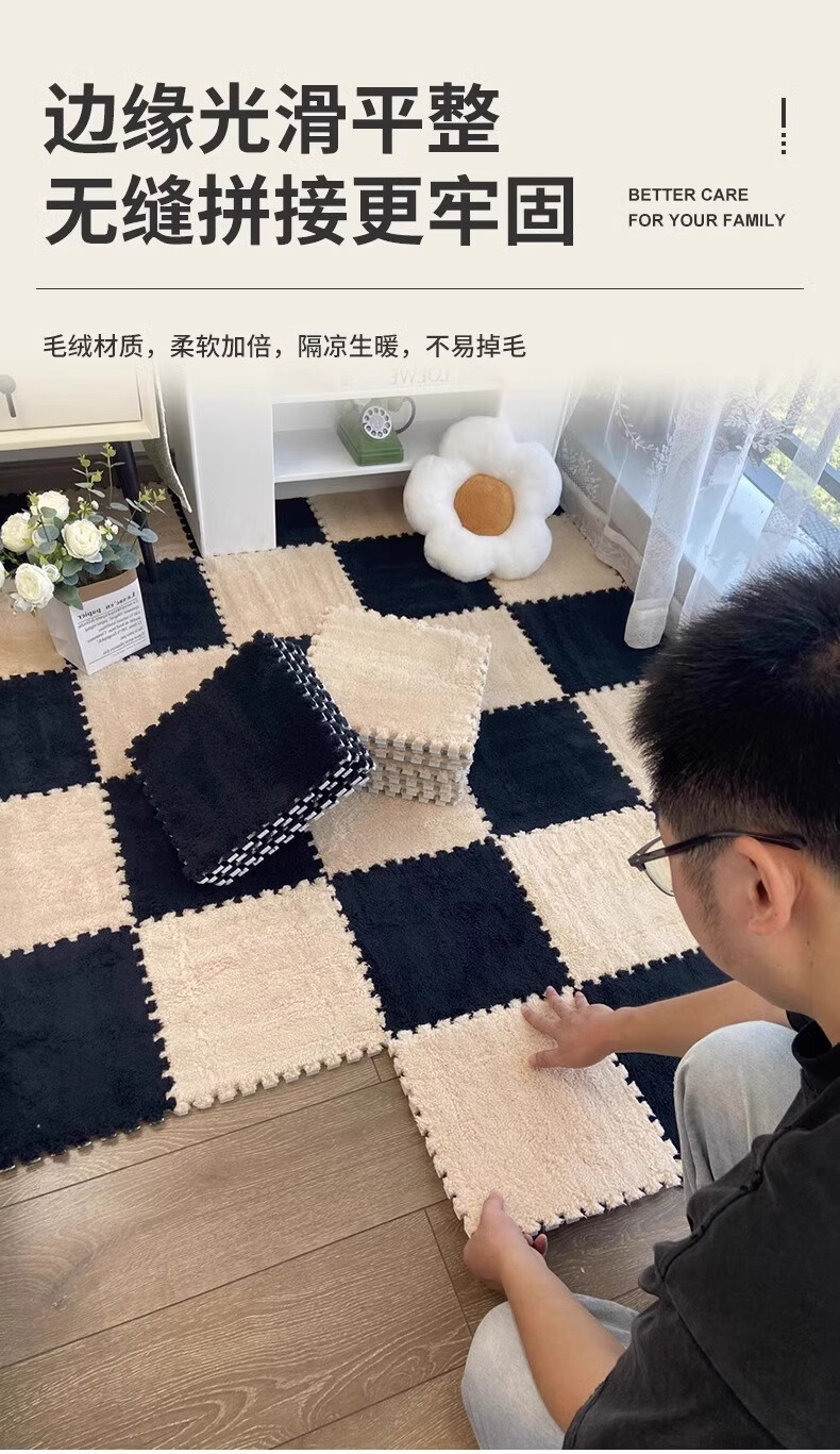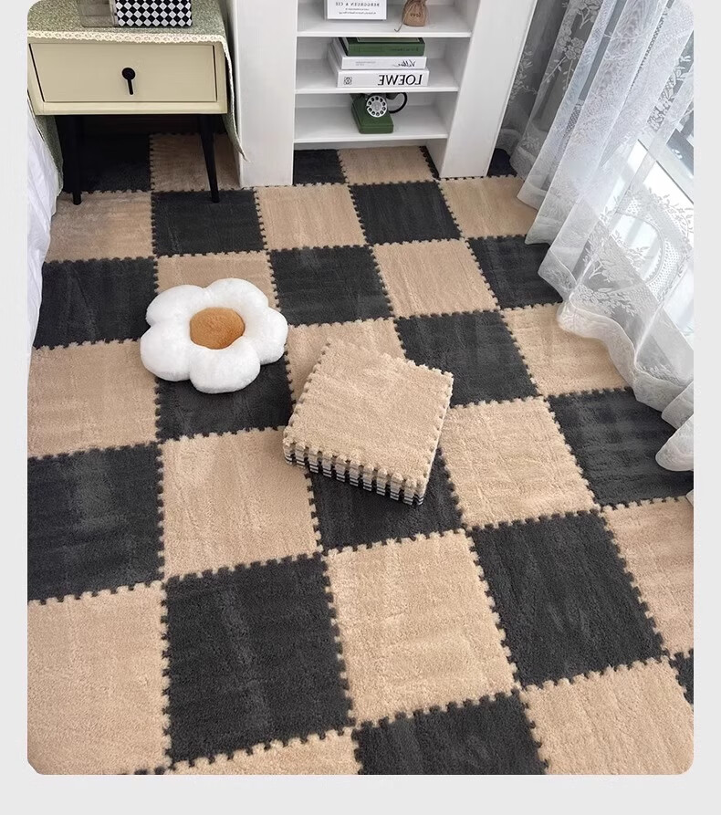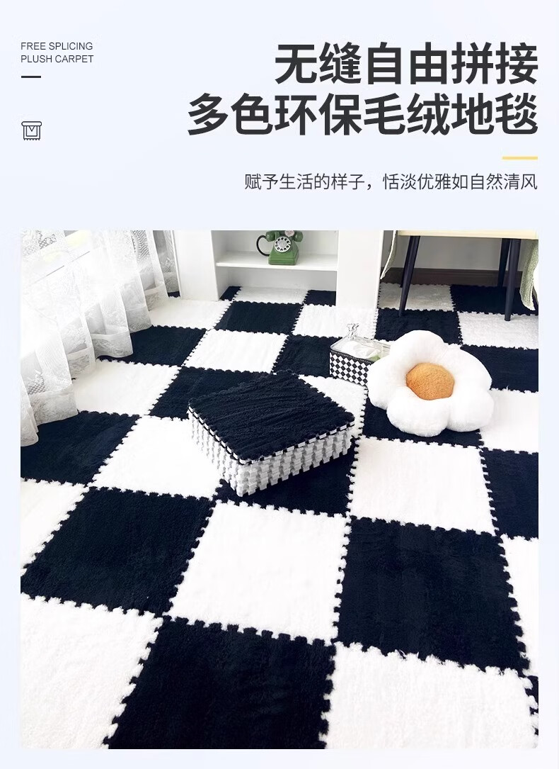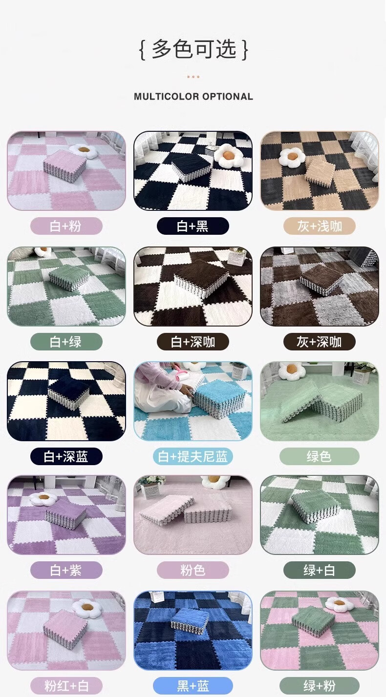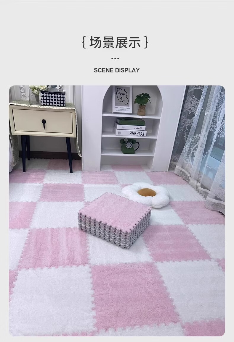 Plush bedside carpet, bedroom, ins style, children's room, full tile, home whole tile, cuttable foam splicing floor mat, pink, non-slip, cushioning, no lint, 30*30*1CM thick bottom, 50 pieces, no care