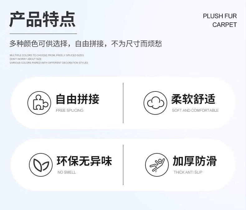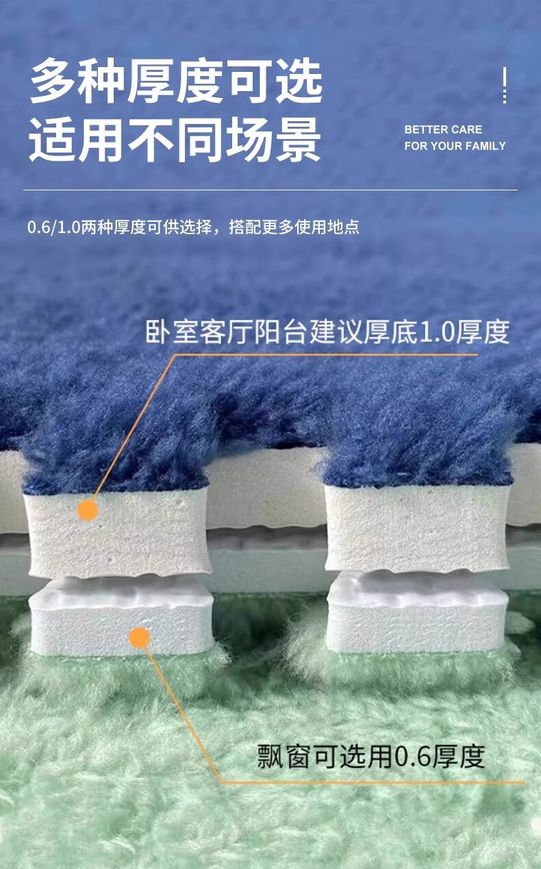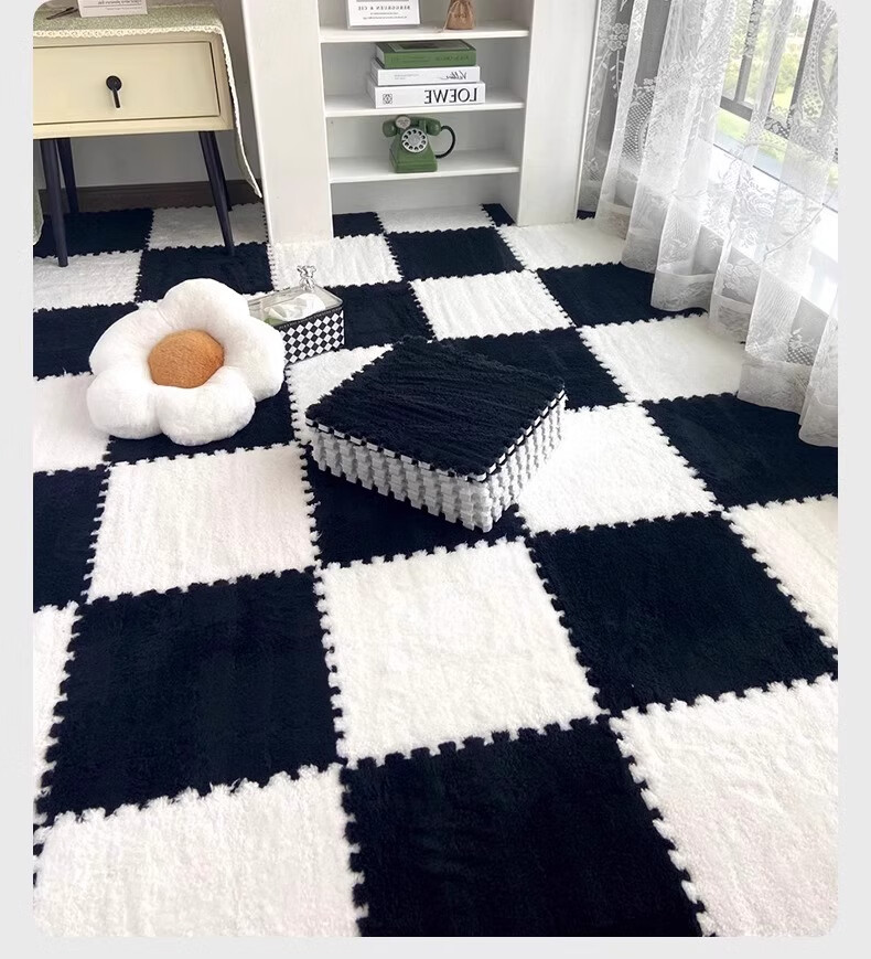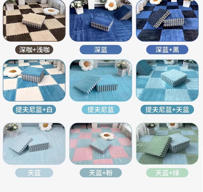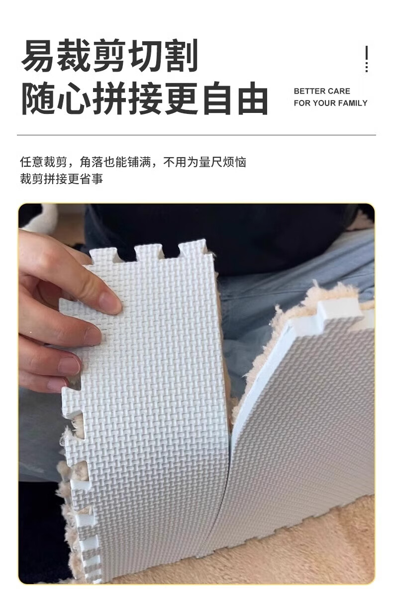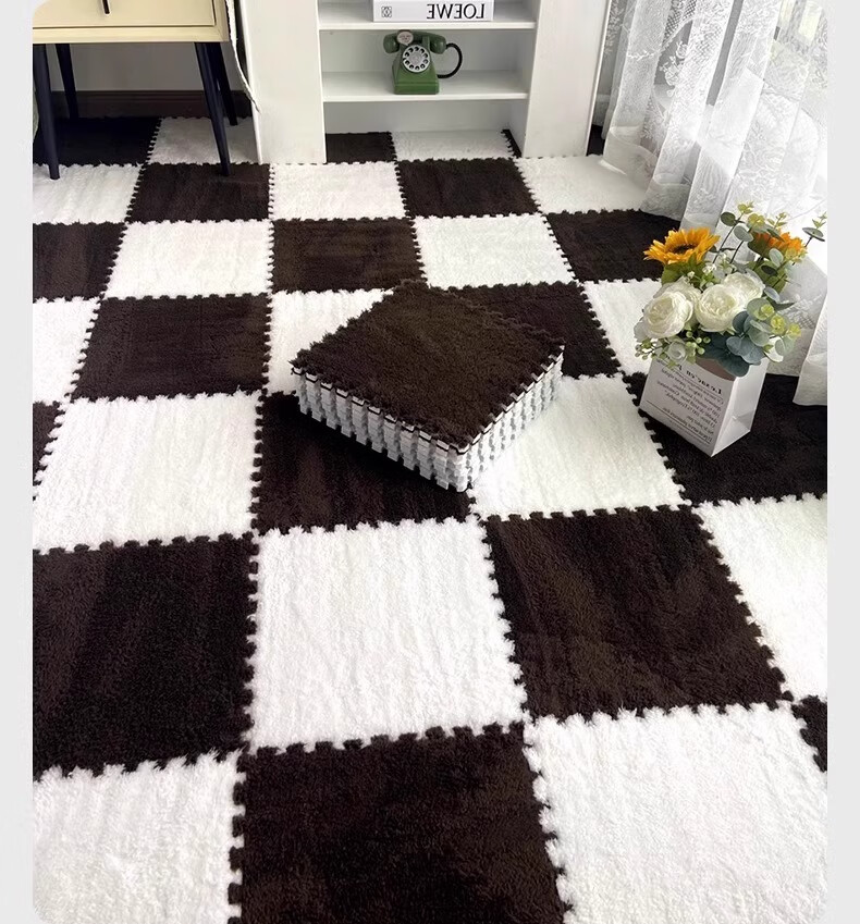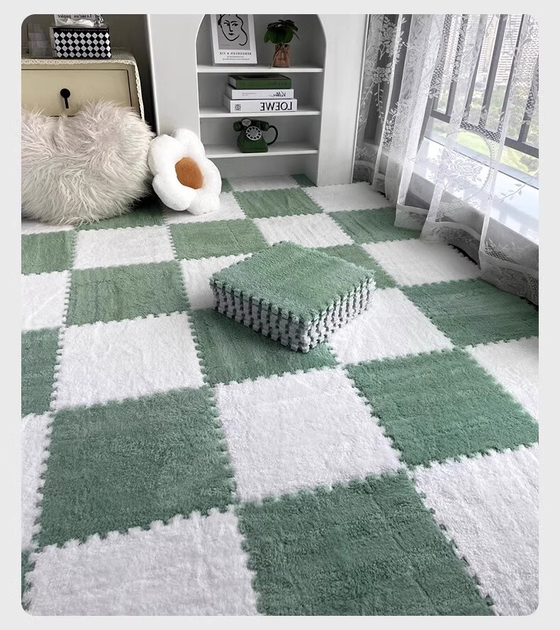 Plush bedside carpet, bedroom, ins style, children's room, full tile, home whole tile, cuttable foam splicing floor mat, pink, non-slip, cushioning, no lint, 30*30*1CM thick bottom, 50 pieces, no care
