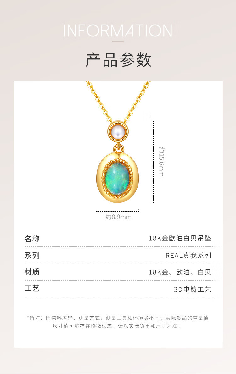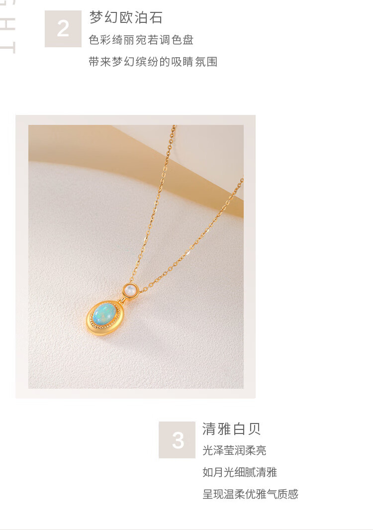 Junbu Jewelry 18K Gold Opal White Shell Pendant Personalized and Unique Temperament 3D Electroforming Craft Gift for Women 18K Gold Opal White Shell Pendant