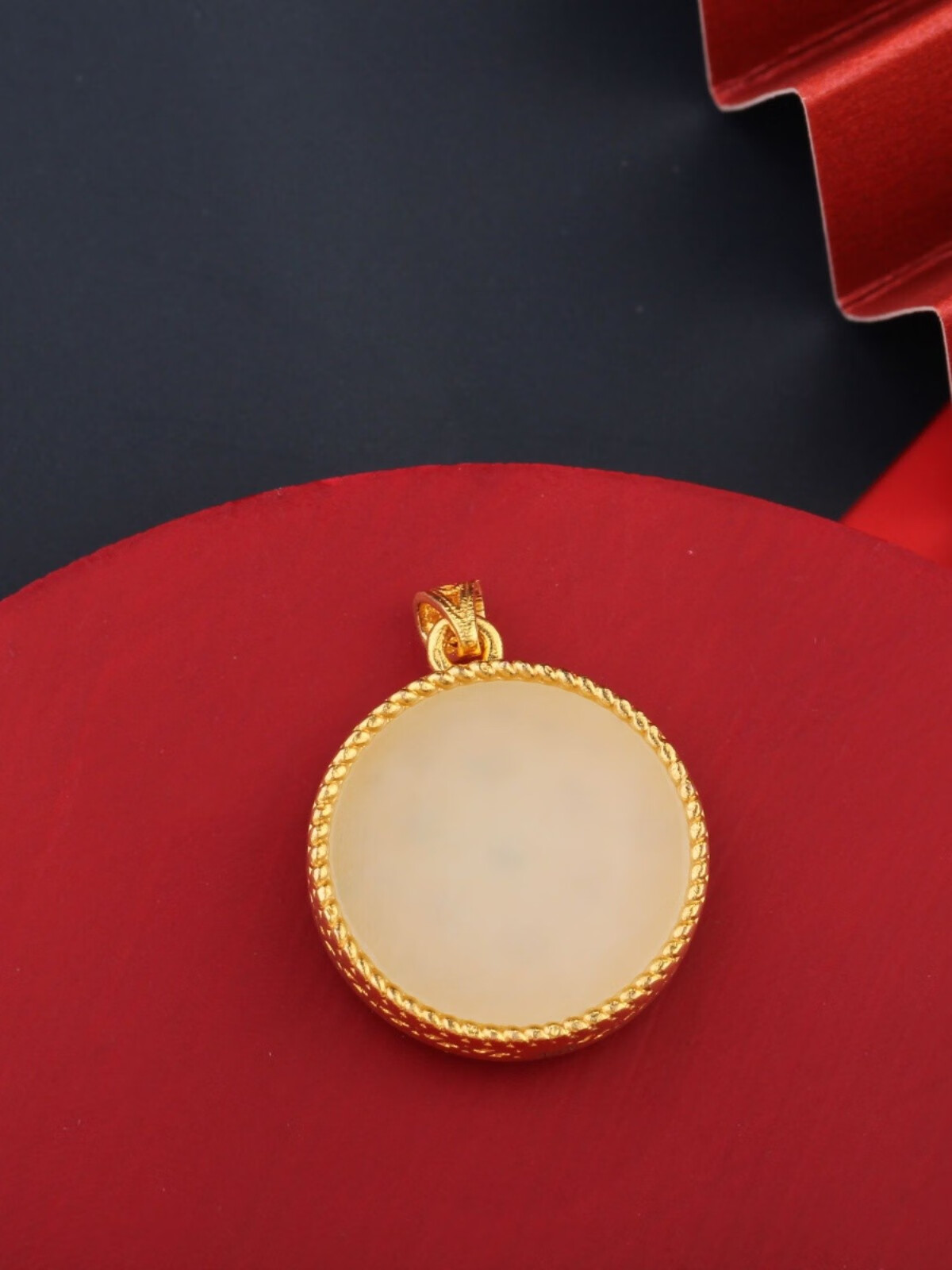 Junbu 18K gold and Hetian jade six-character mantra compass pendant for women single pendant without chain AU750 gold pendant 18K gold (about 21*6mm) FSDZ0019